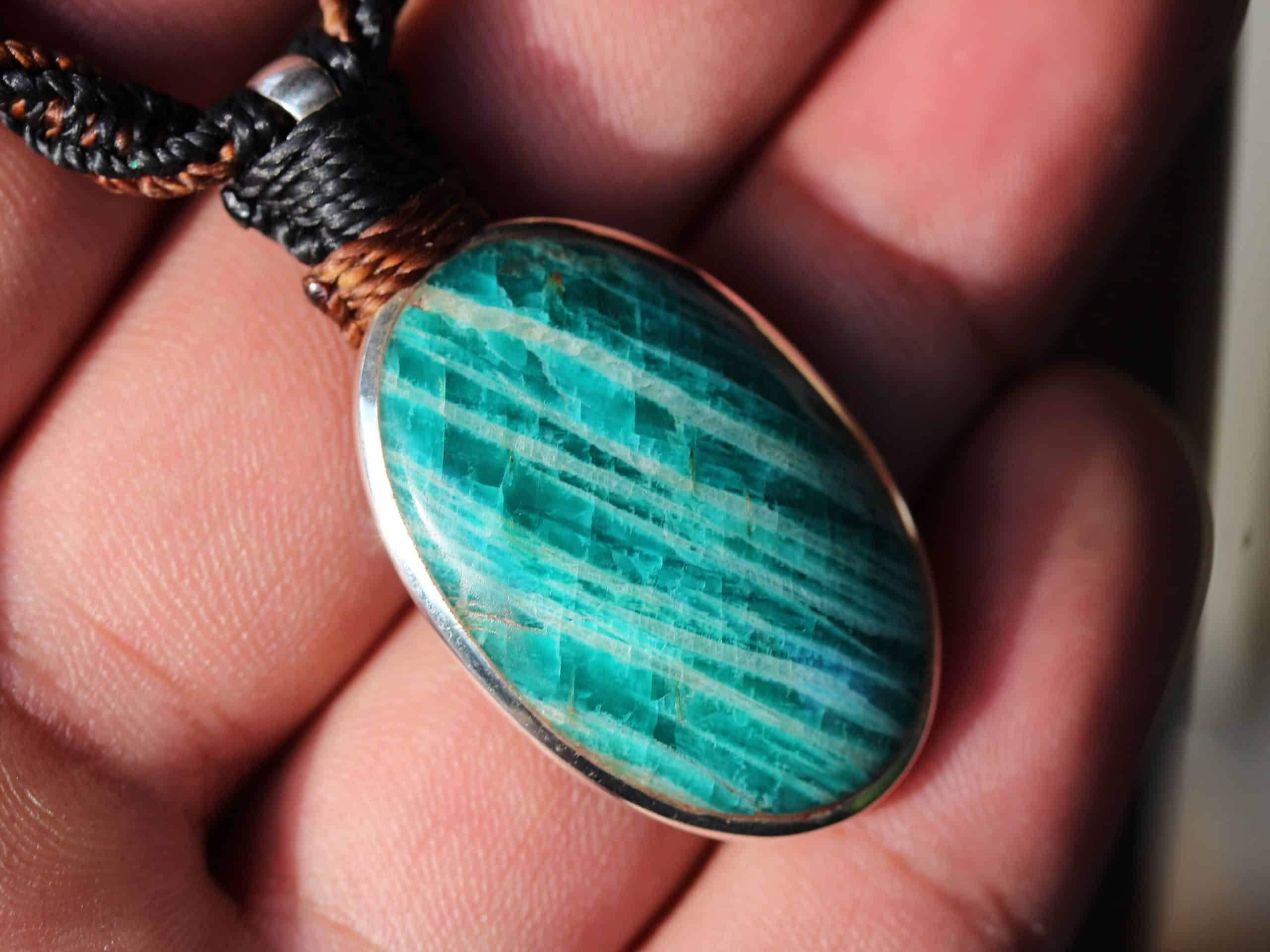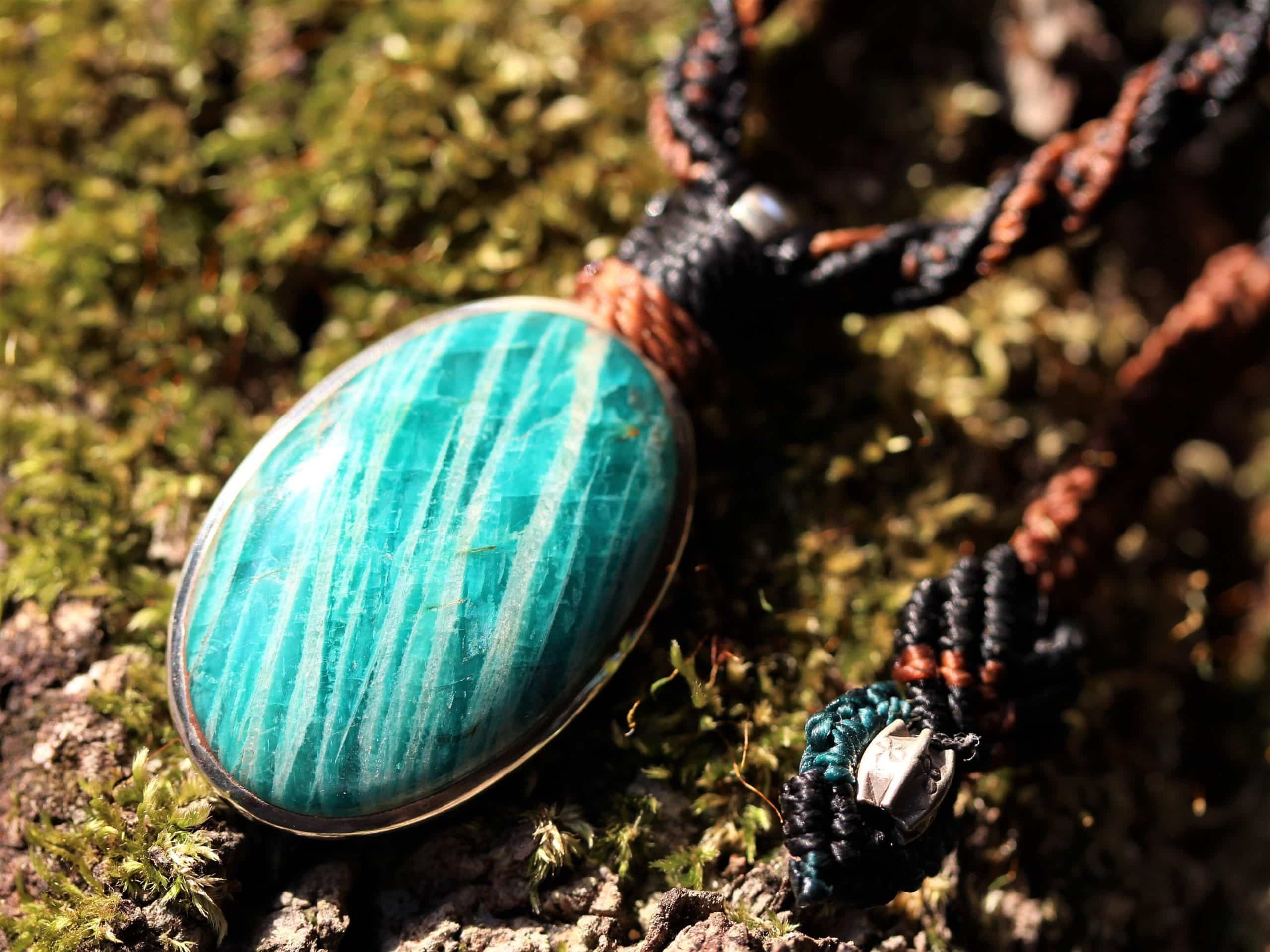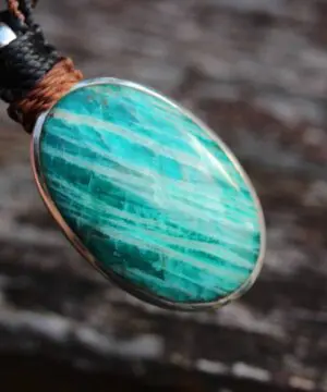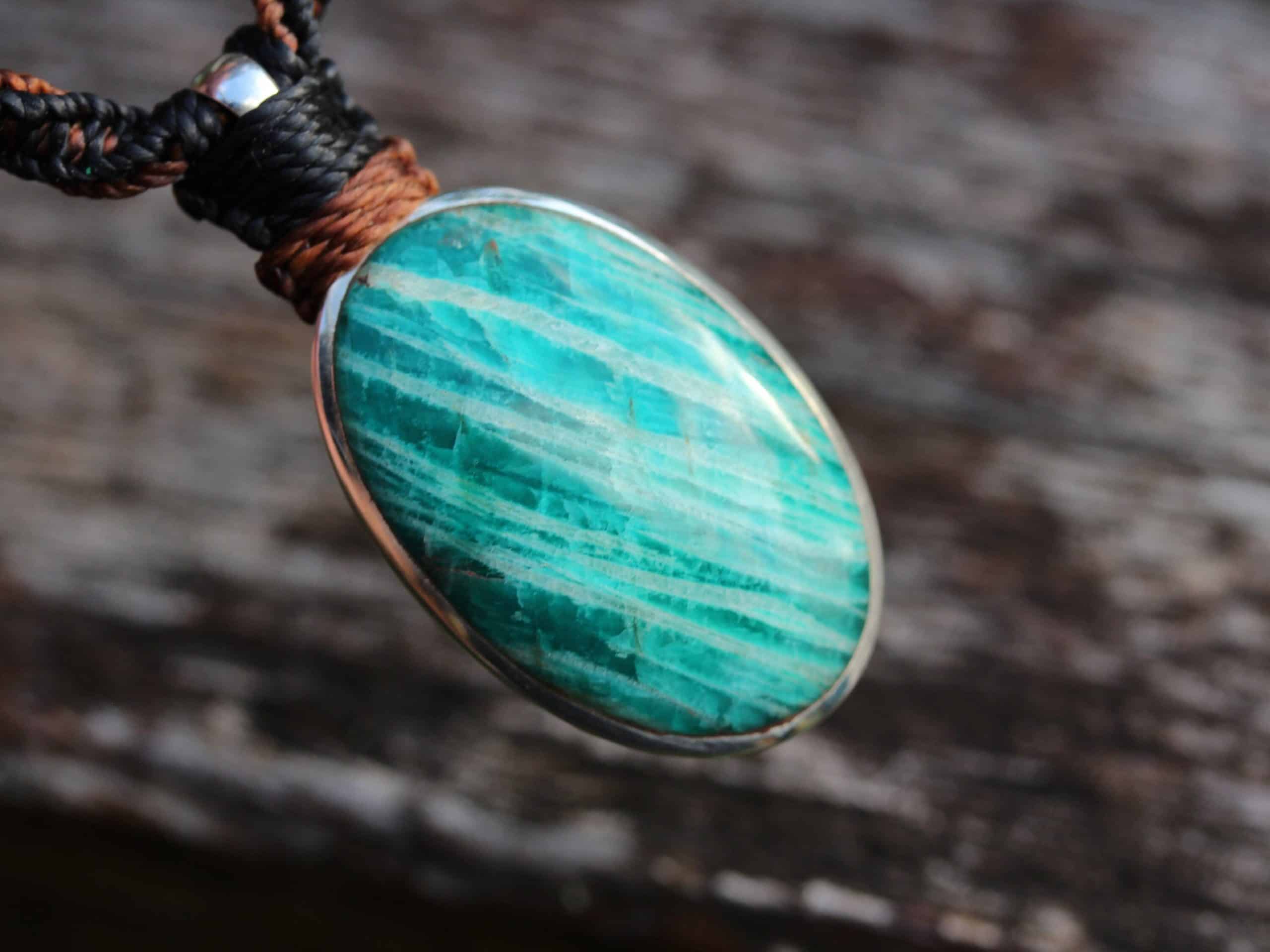 This majestic 925 silver set Amazonite crystal talisman has been handcrafted by us here at Platypus Dreaming in the luscious rainforests of Far North Queensland, Australia. You could see a whirlpool of blue in this calming stone. Amazonite is one of the most ancient gemstones, that’s known for its beauty and healing properties. It has been around for thousands of years, and it has been widely used to make statues, amulets, and jewelry. The Amazonite has been sourced from Russia, one of the smaller Amazonite deposits on Earth. This talisman features a 1000 pure silver tribal bead that has been hand-cut and chiseled using traditional techniques.