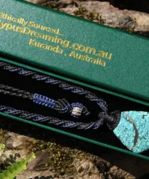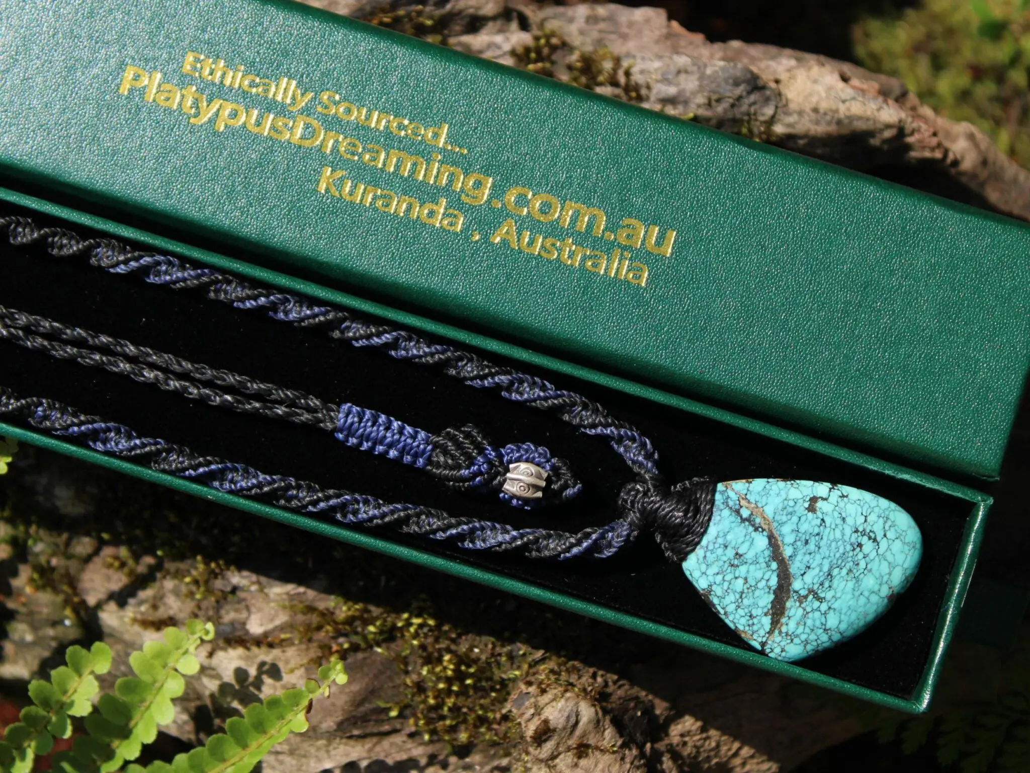 This natural Turquoise crystal talisman has been lovingly handcrafted by us here at Platypus Dreaming, in the healing rainforests of Far North Queensland, Australia.