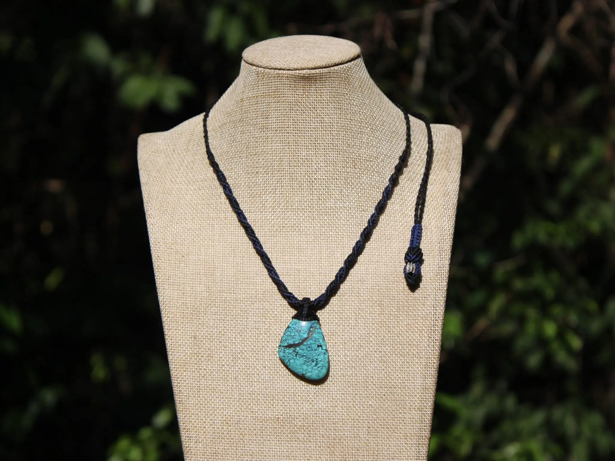 Each necklace is handwoven using ancient macramé knot techniques, made with high-quality vegan waxed cord for strength, comfort, and durability.