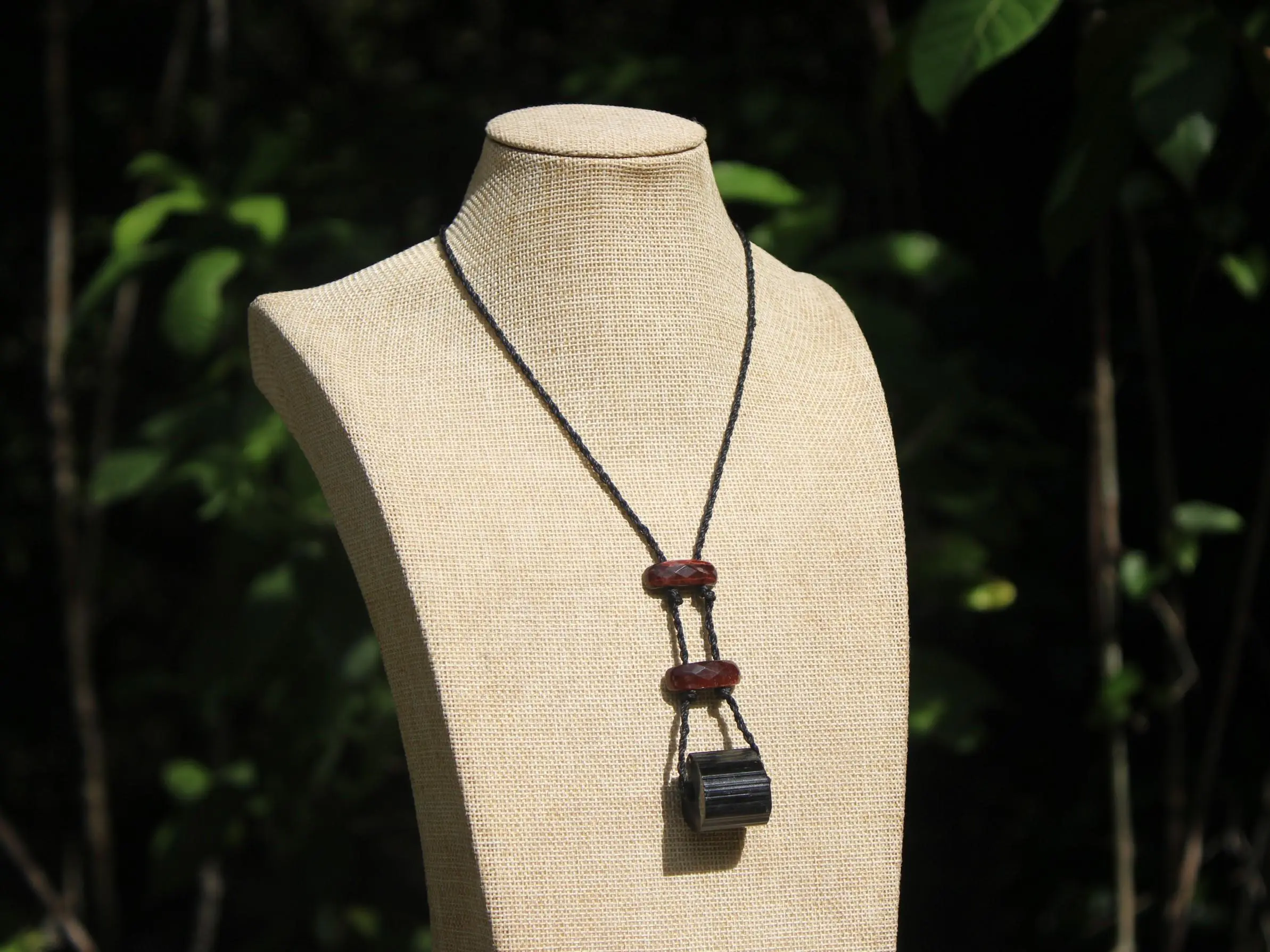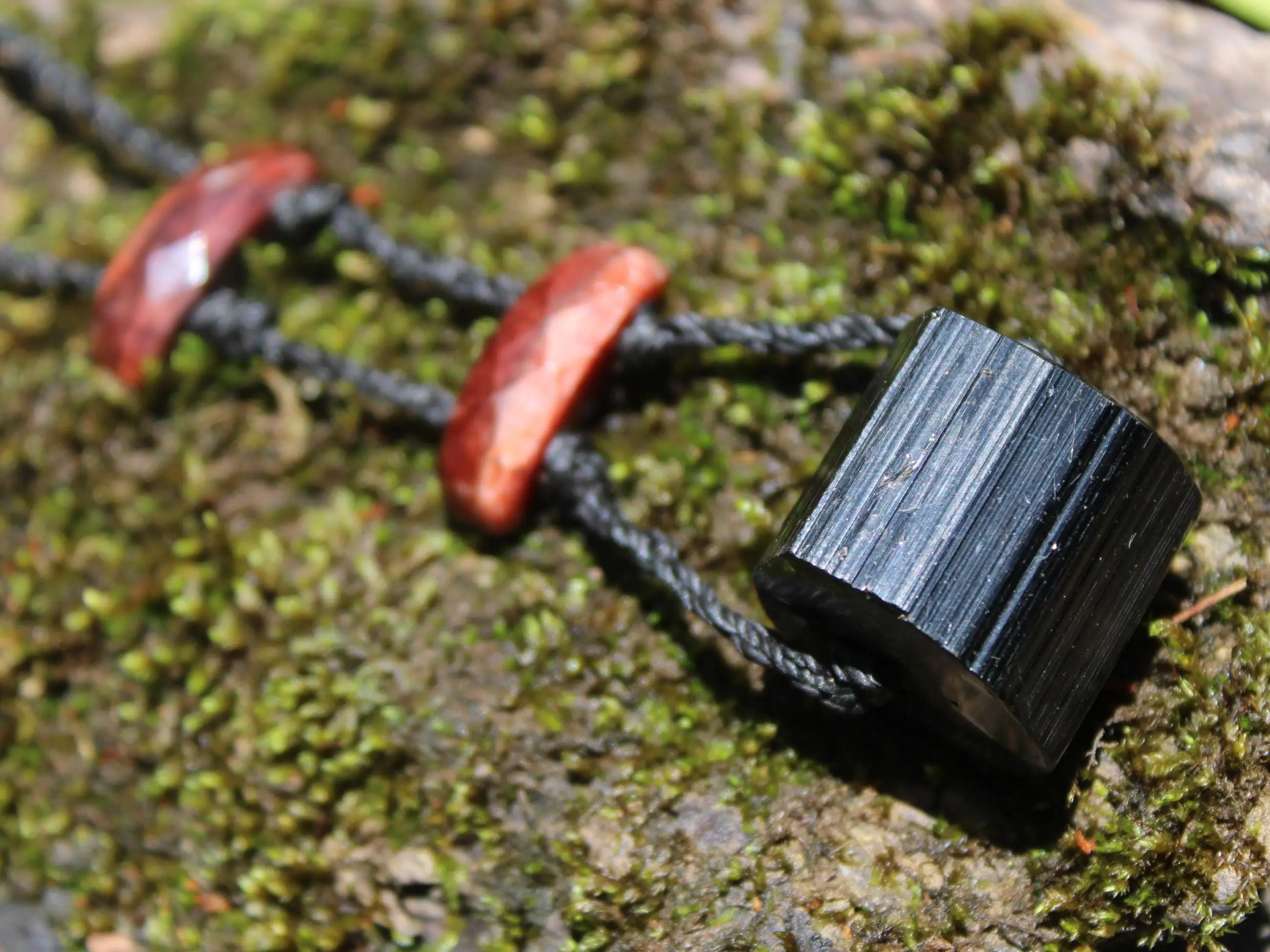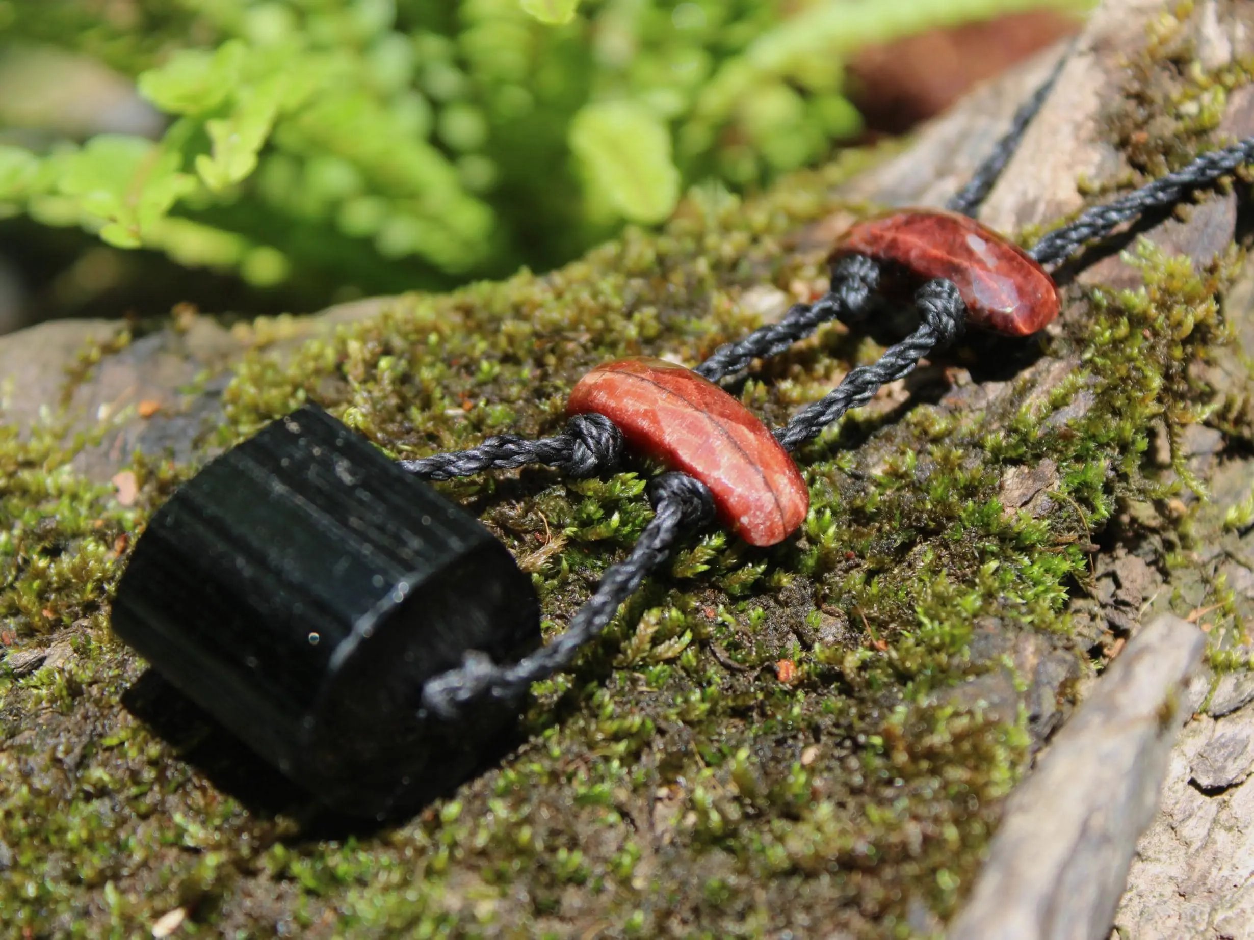 Australian Black Tourmaline Necklace • Red Tiger Eye Talisman • Tribal Protection Pendant • Australian Handmade • Handwoven Tropical Cord