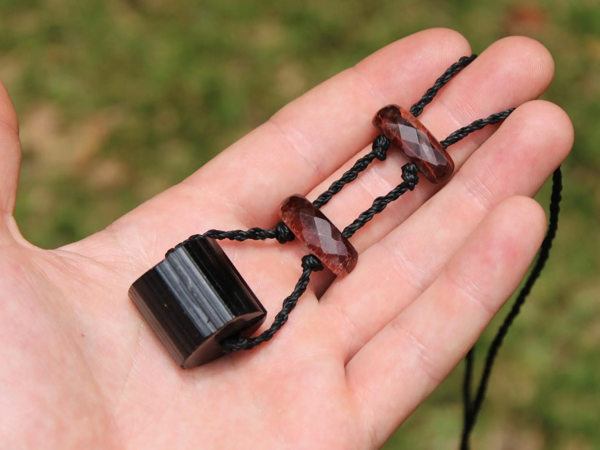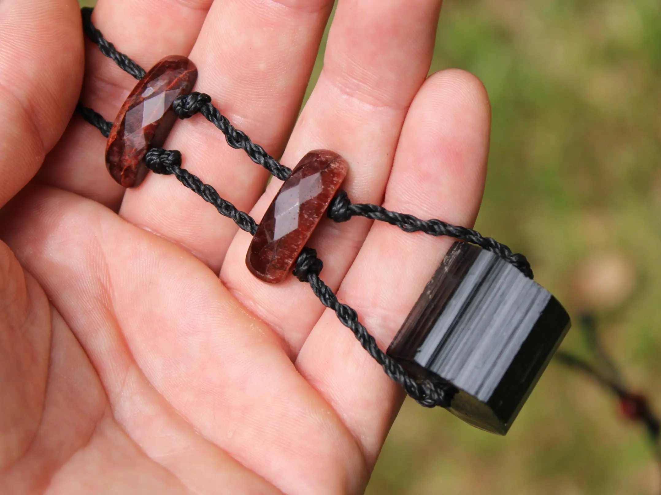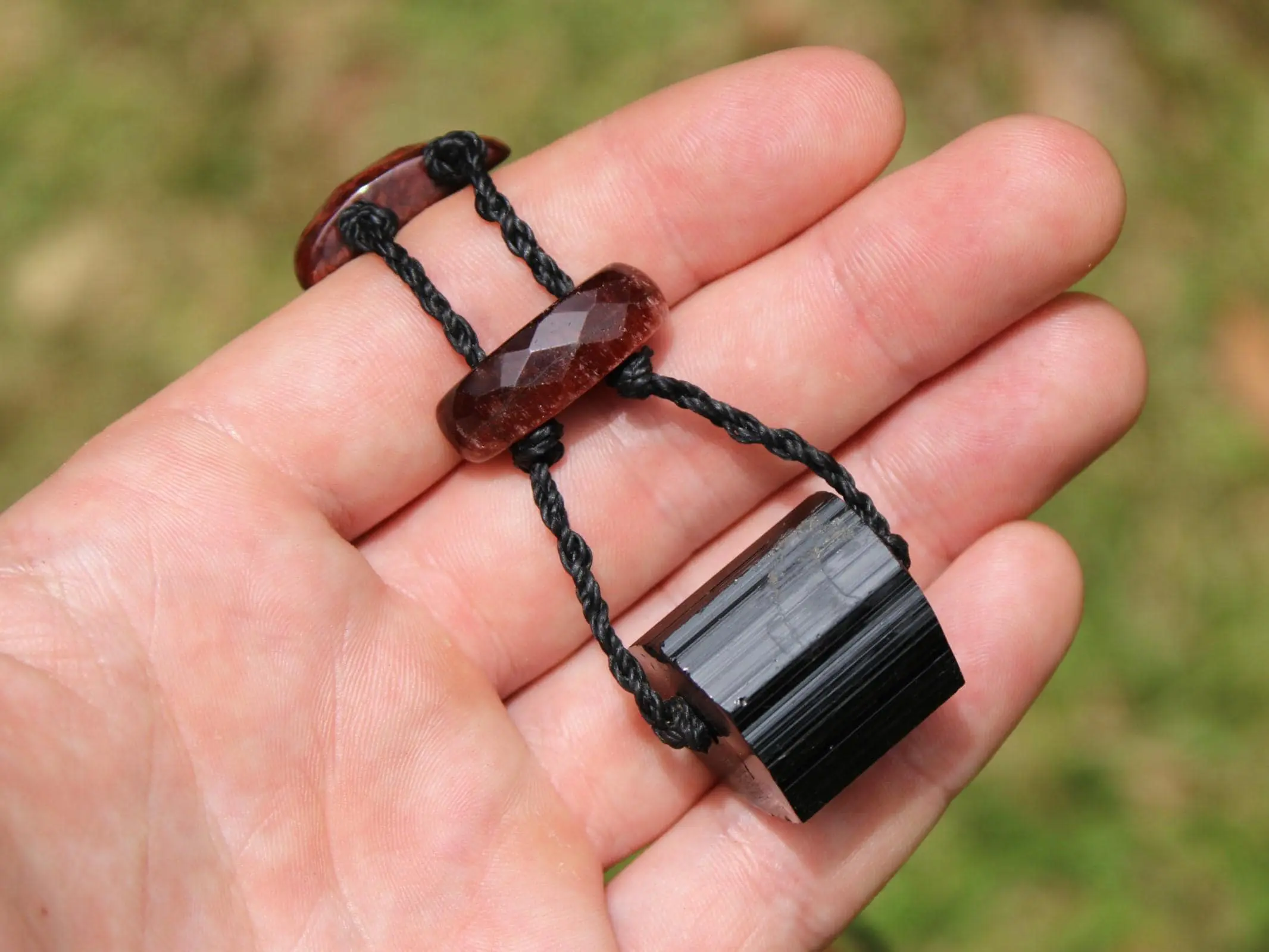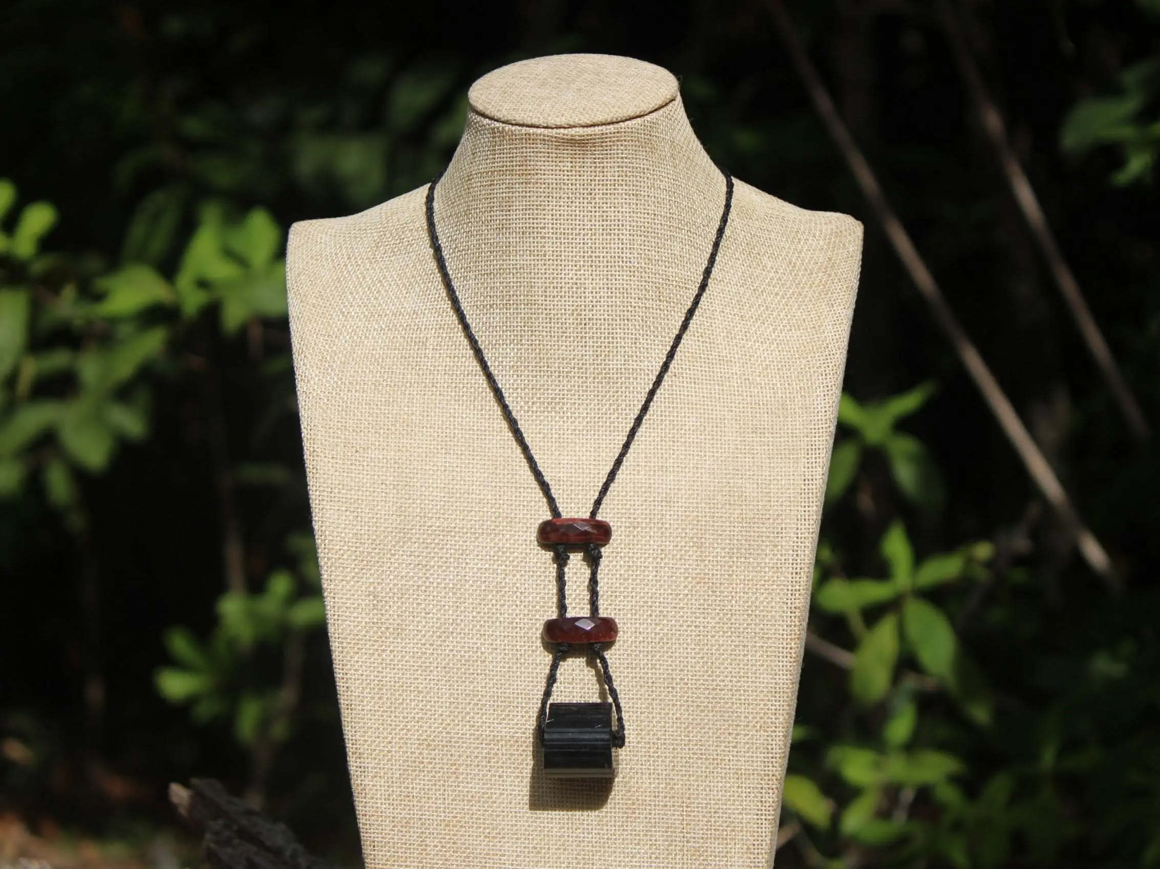 Australian Black Tourmaline Necklace • Red Tiger Eye Talisman • Tribal Protection Pendant • Australian Handmade • Handwoven Tropical Cord