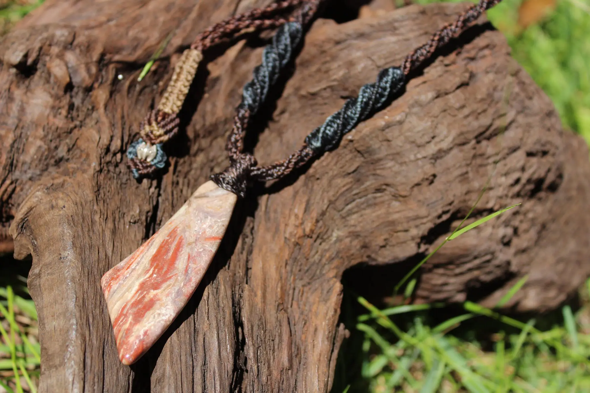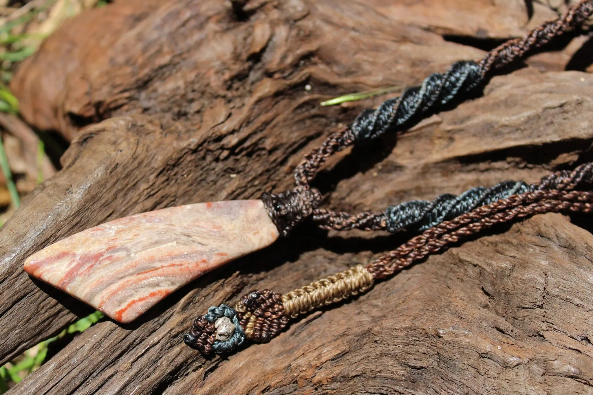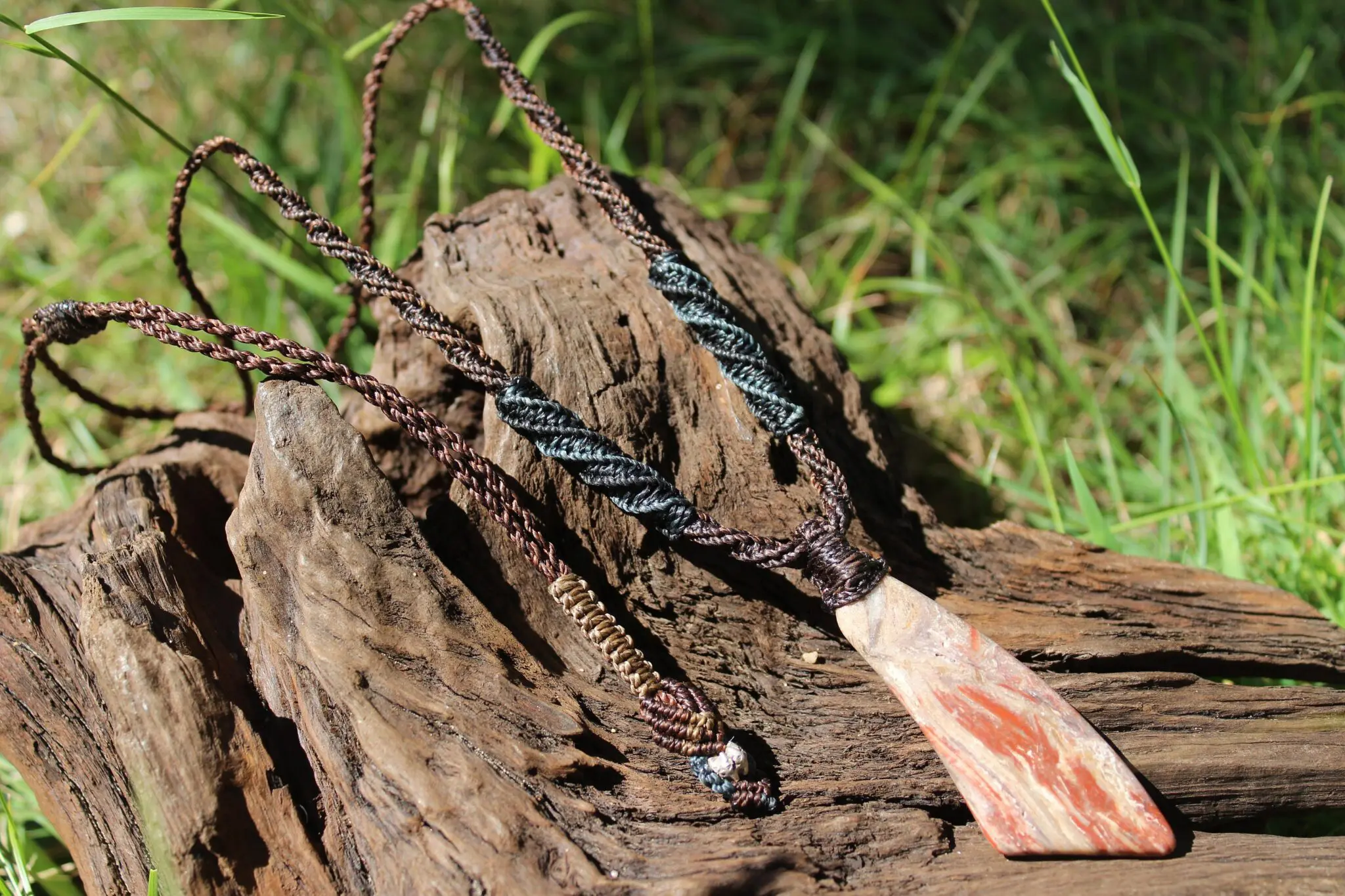 Sonora Sunrise Necklace , Tribal Pendant, Power Jewellery, Handcrafted Shibari Macrame Necklace, Grounding Healing Crystal Frequency