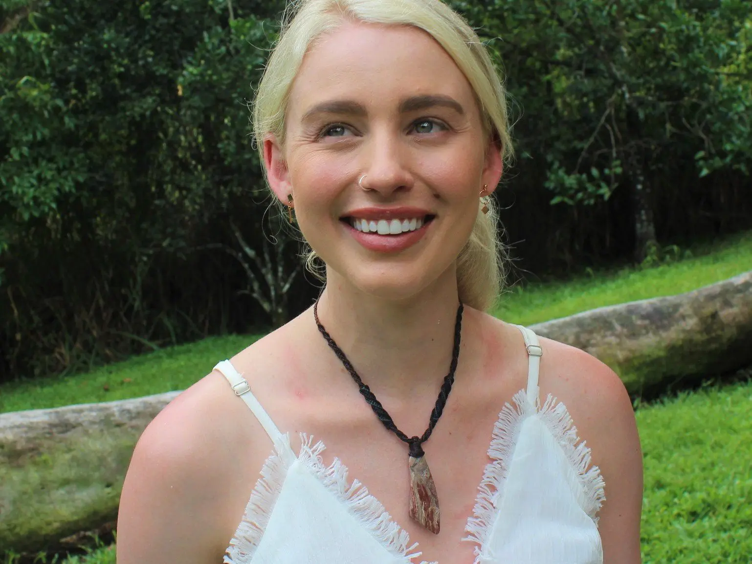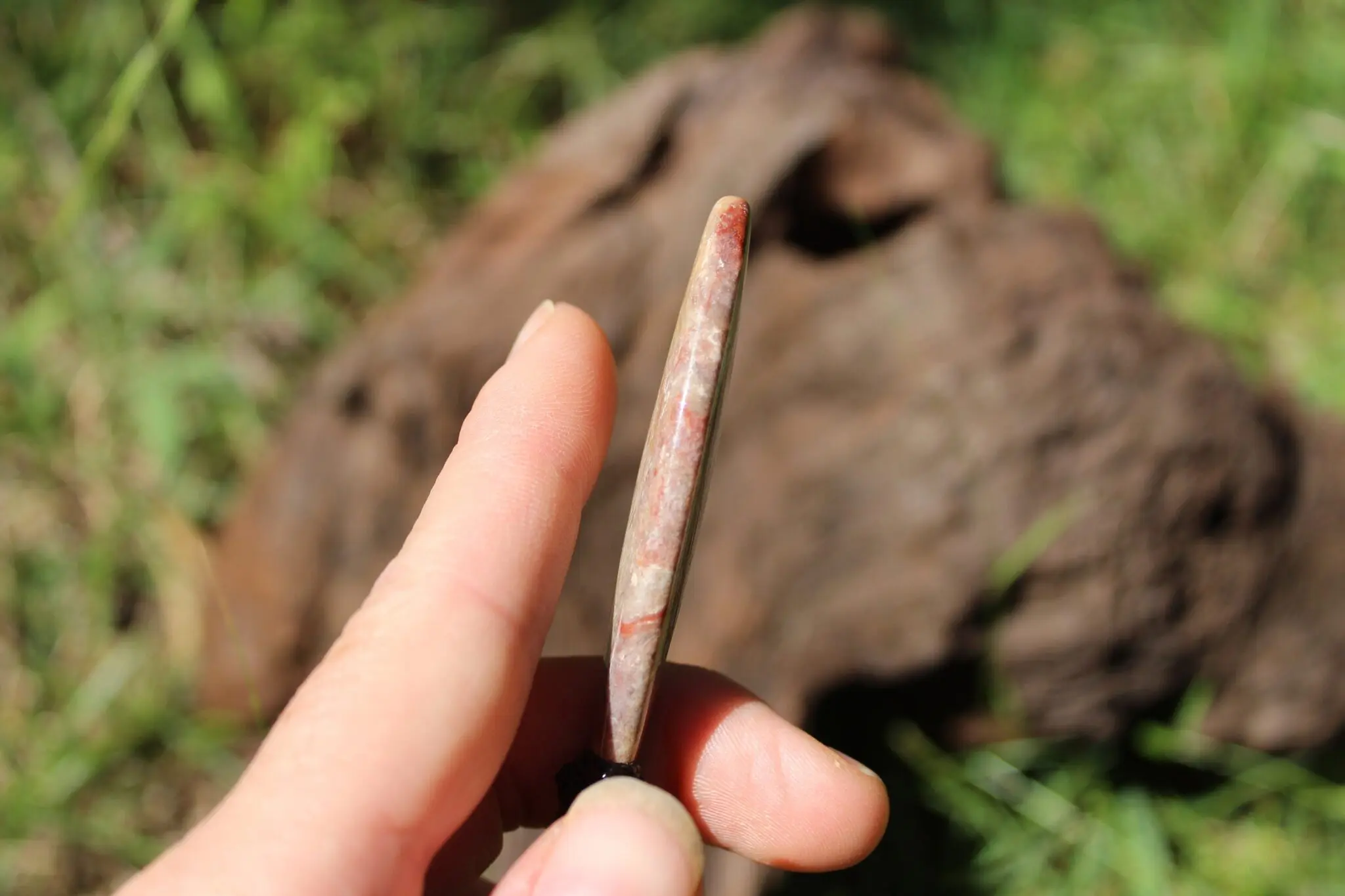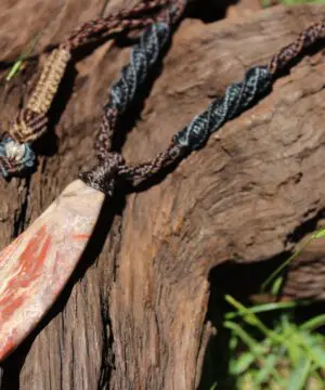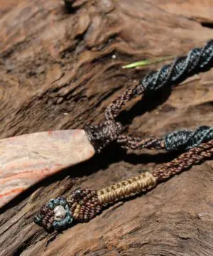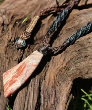 This earthy ribbon stone jasper crystal talisman has been handcrafted by us here at Platypus Dreaming in the luscious rainforests of Far North Queensland, Australia. This incredible stone is completely natural and has not been altered in any way – those incredible patterns emerge at the lapidary wheel from the raw earth. Ribbon Stone Jasper is found in the Kimberly region of Western Australia – one of the most isolated and wild regions on Earth. This stone was sourced directly from the person who hand dug the stone out of the earth themselves. This talisman features a 1000 pure silver tribal bead that has been hand-cut and chiseled using traditional techniques.