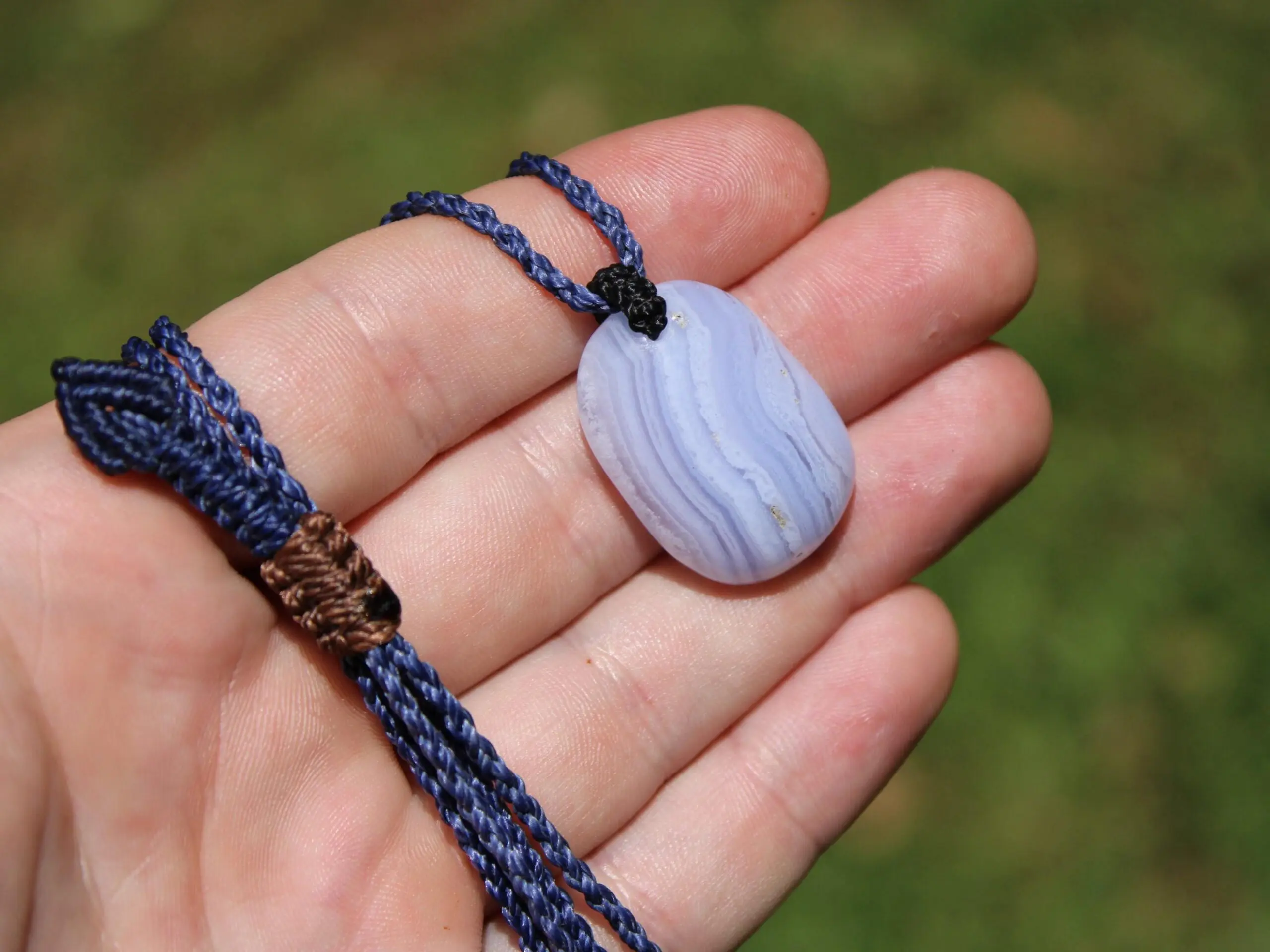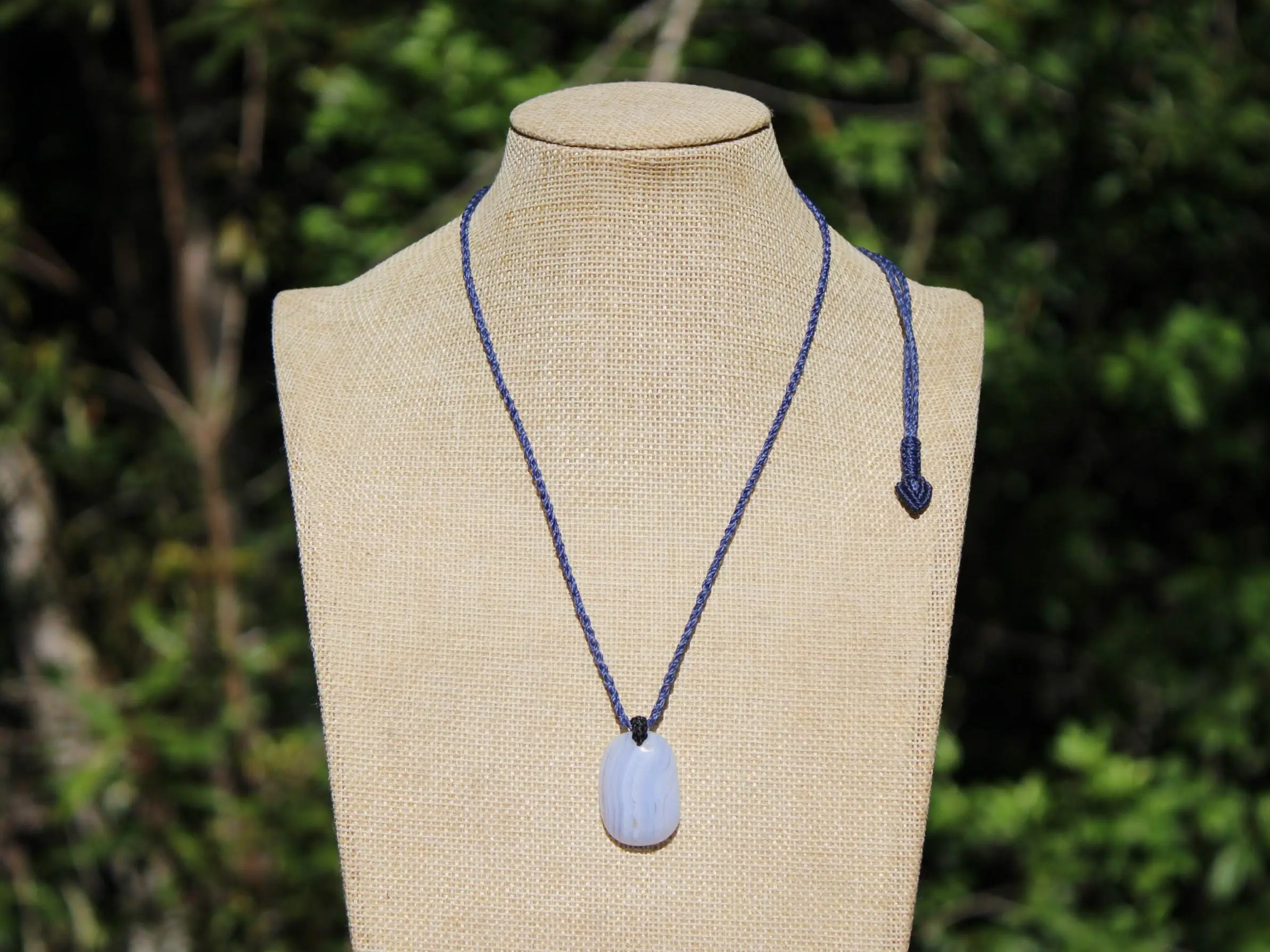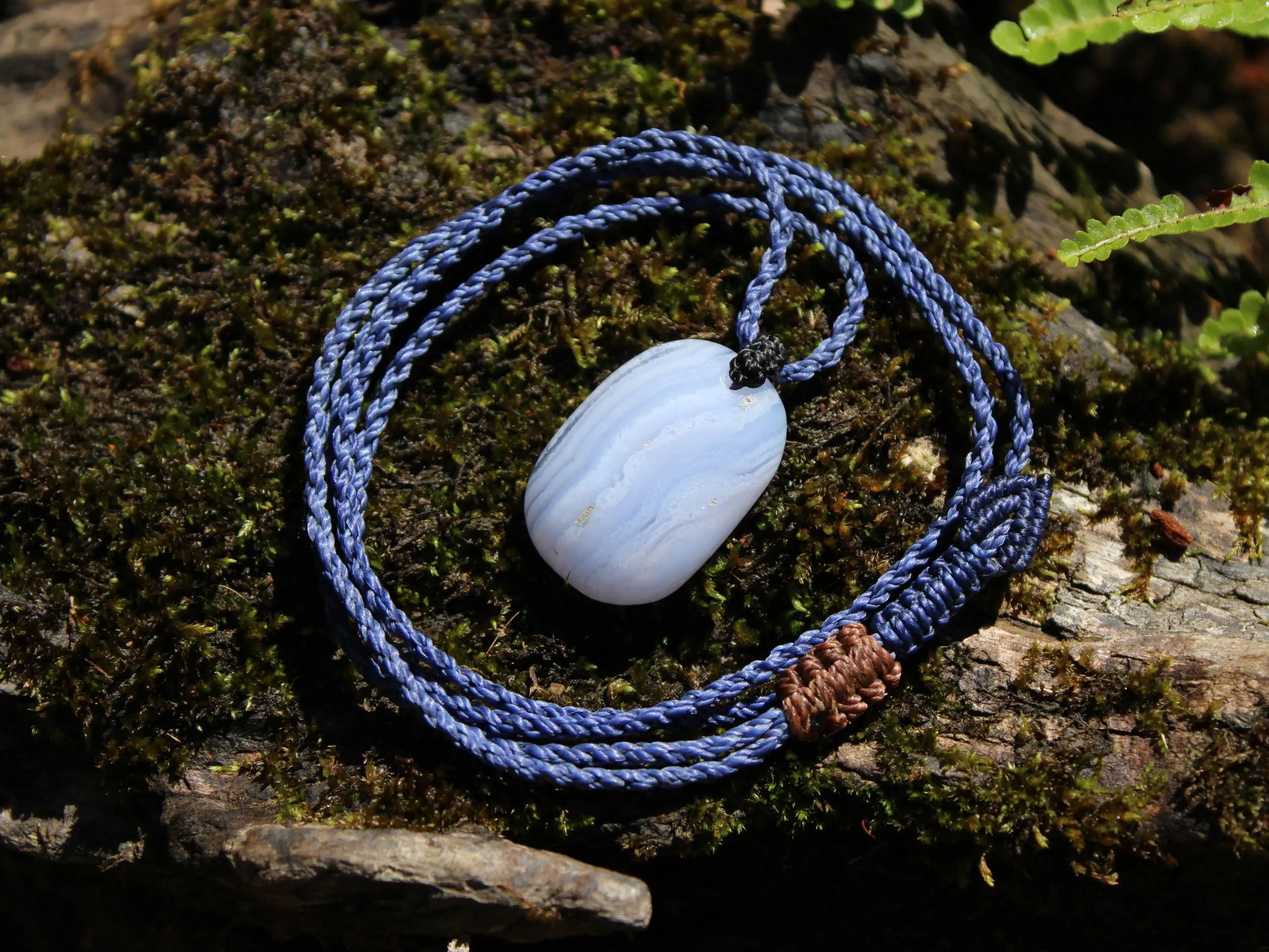 Australian Lace Agate Necklace • Agate Creek Pendant • Tribal Healing Crystal Talisman • Handwoven Tropical Cord