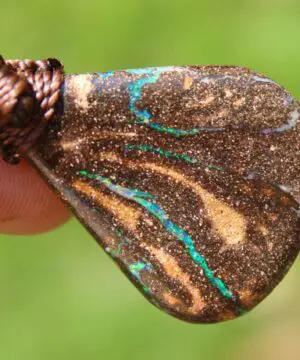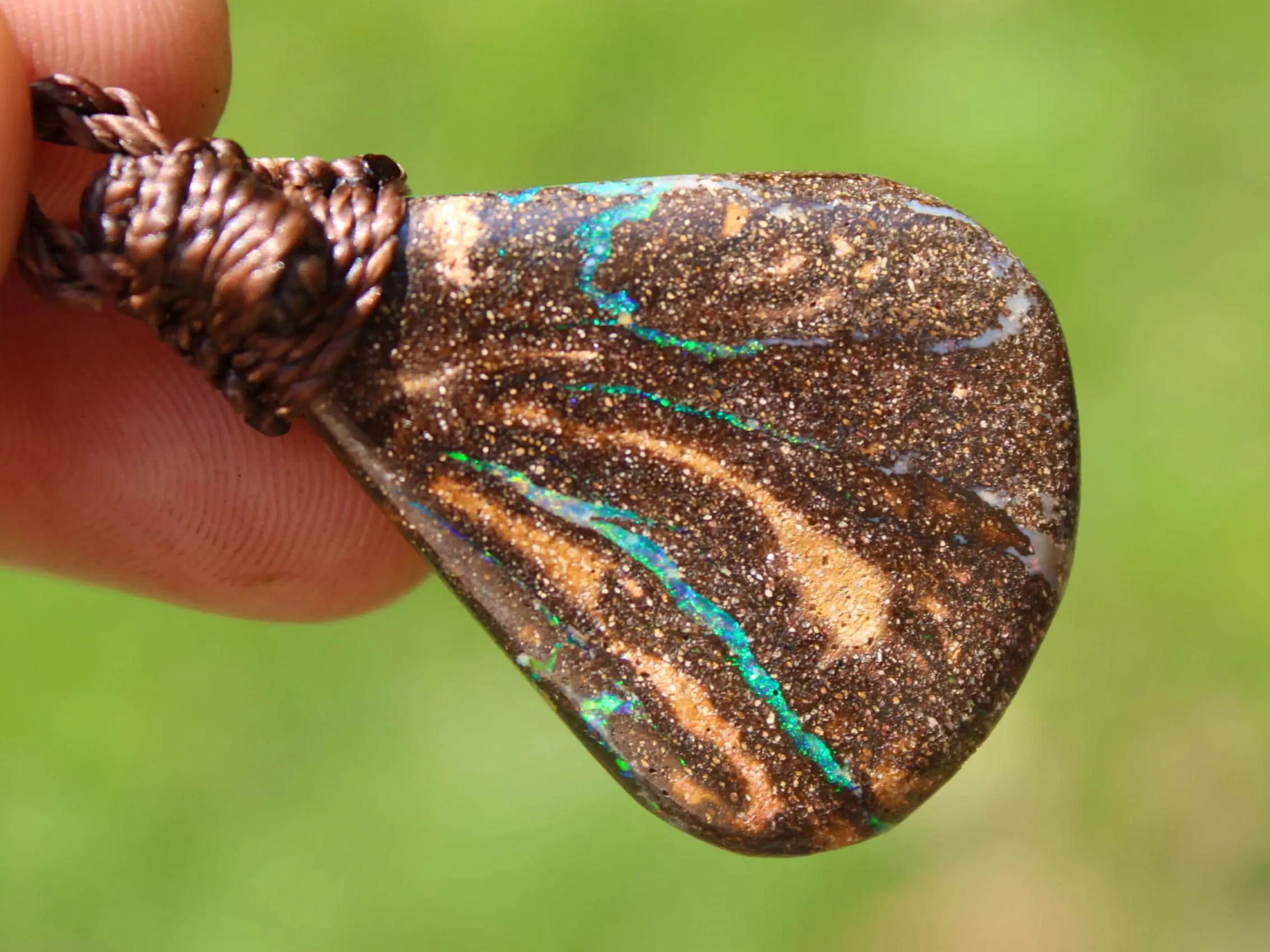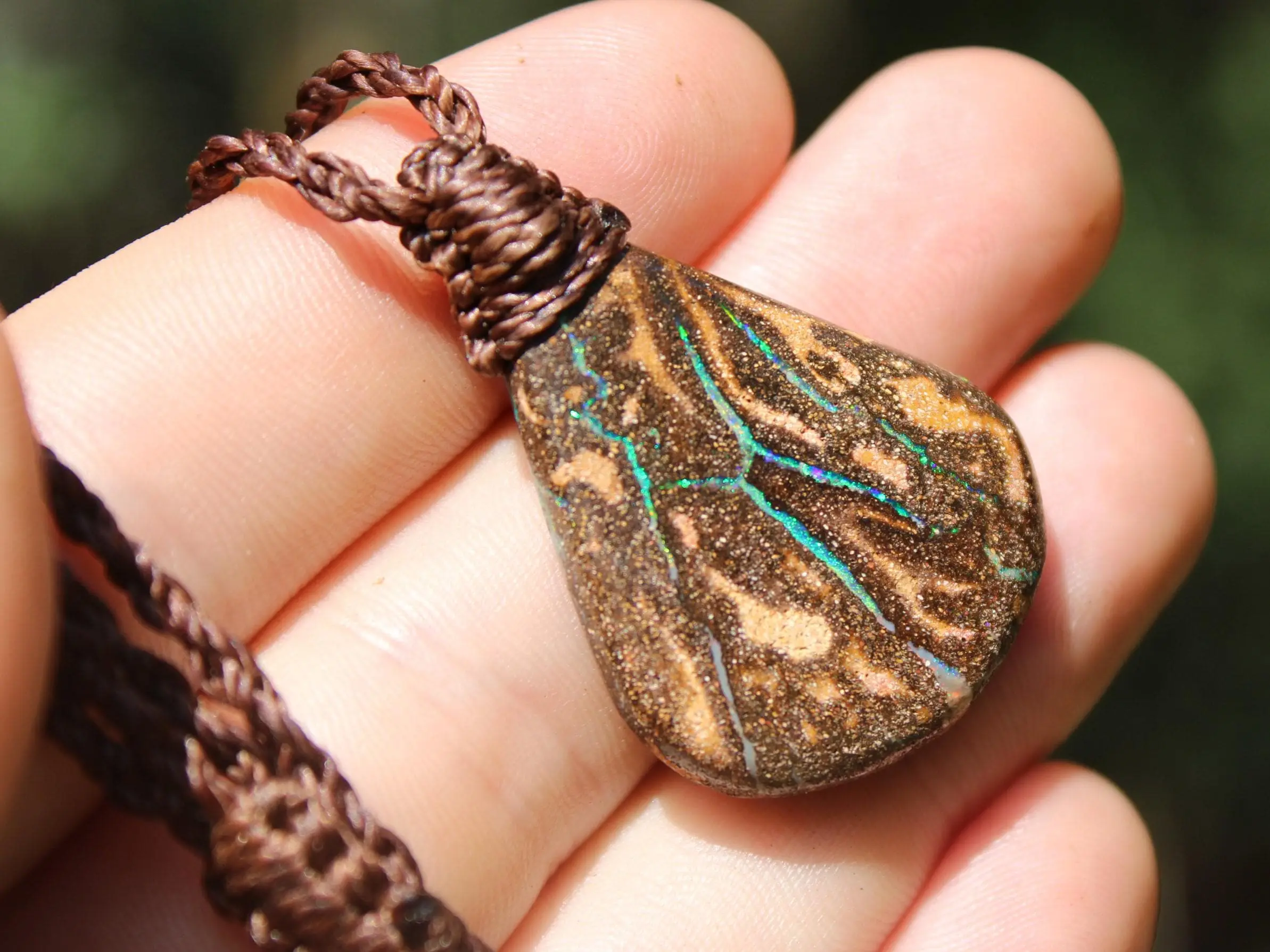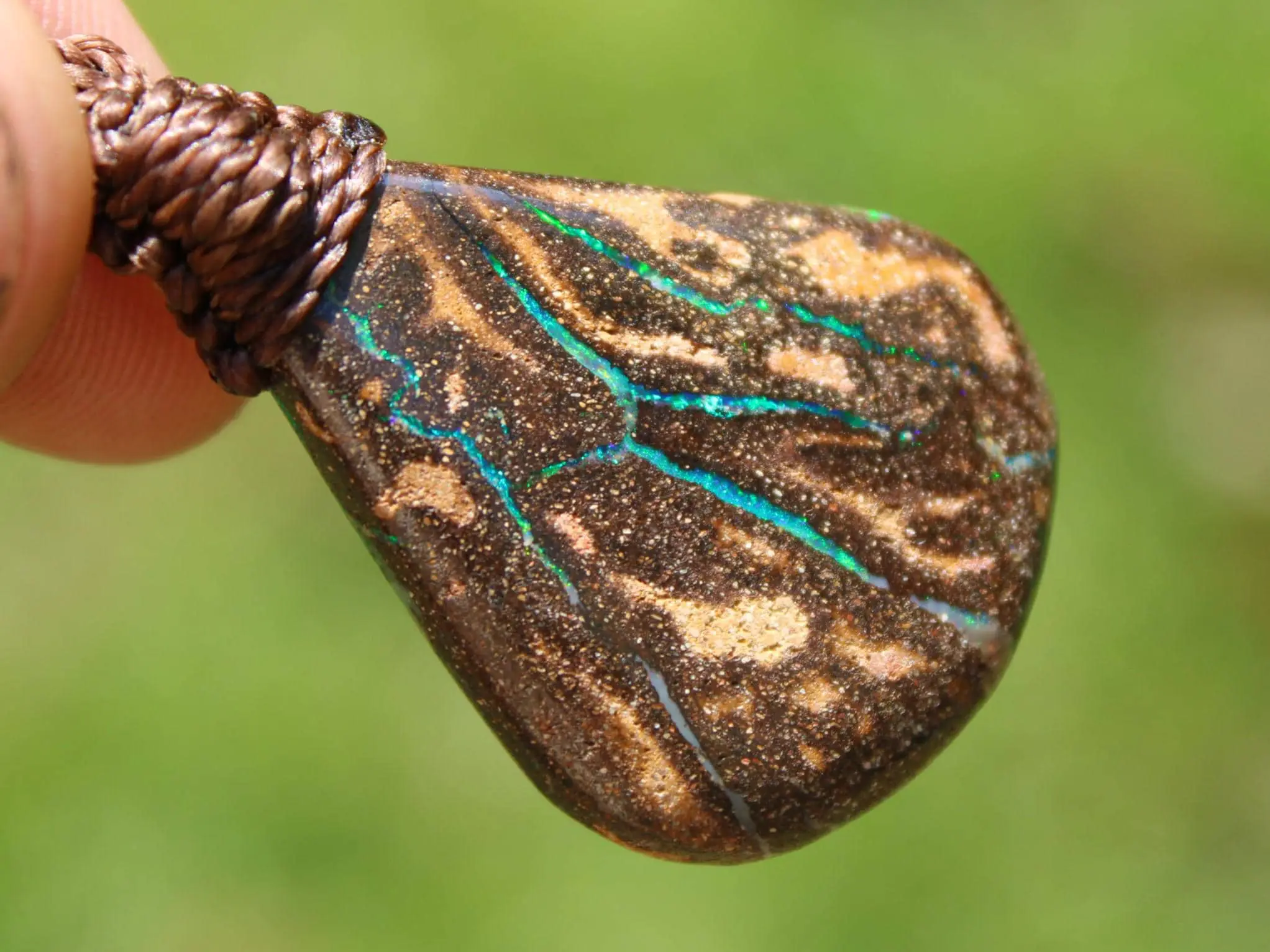 Boulder Opal flashes different colours at different angles — greens, blues, reds, violets, golds — shifting with every movement.