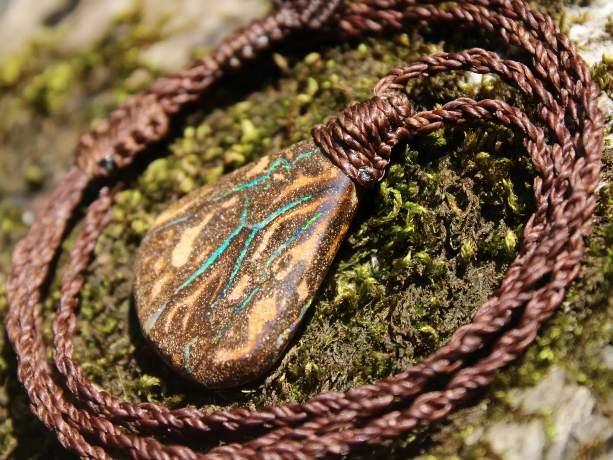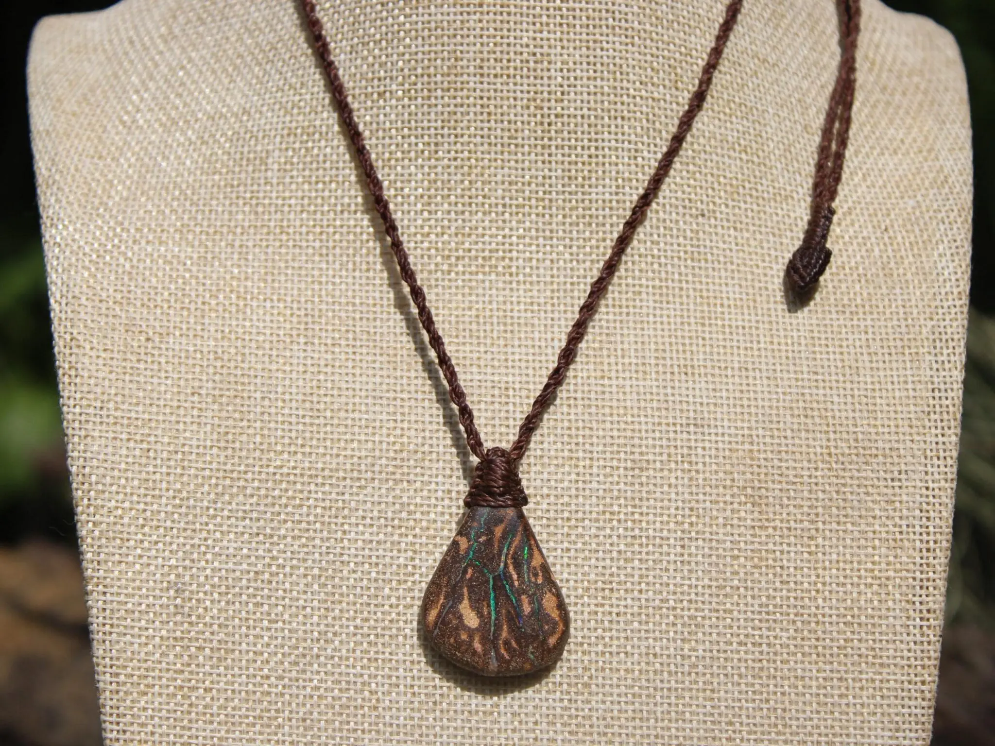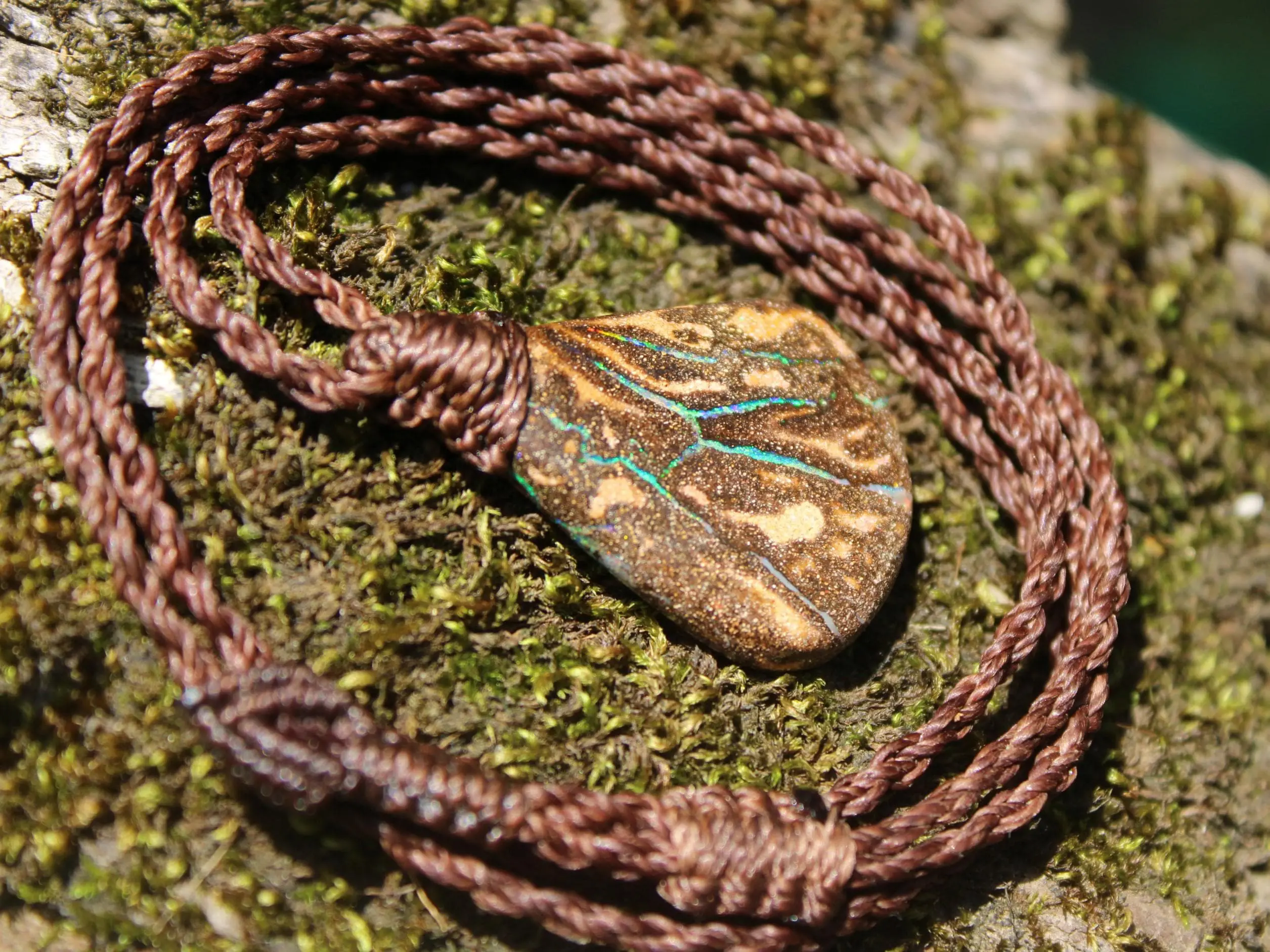 Australian Boulder opal, Australian creek Jasper, unique tribal necklace talisman, Australian made handwoven tropical Cord, Summer jewelry