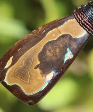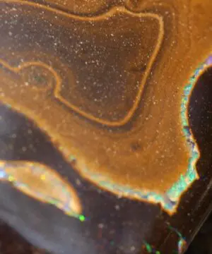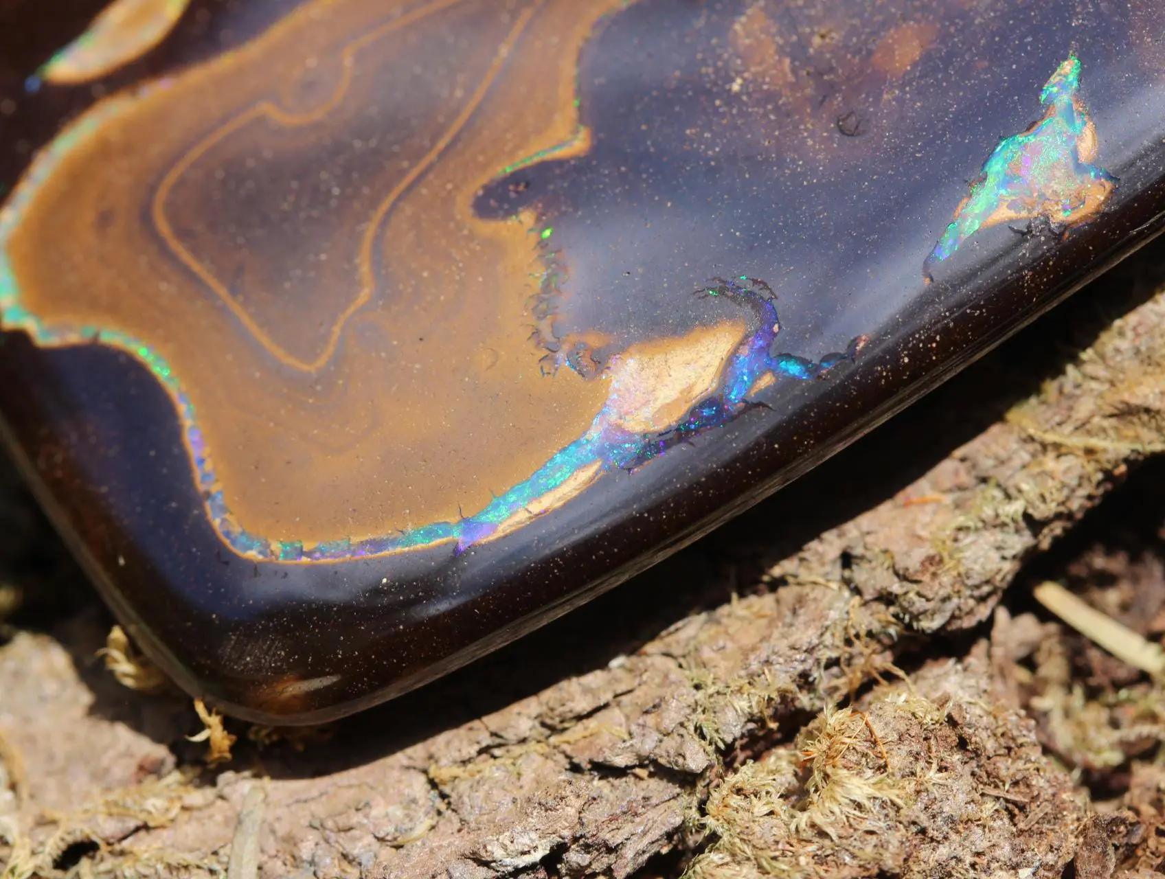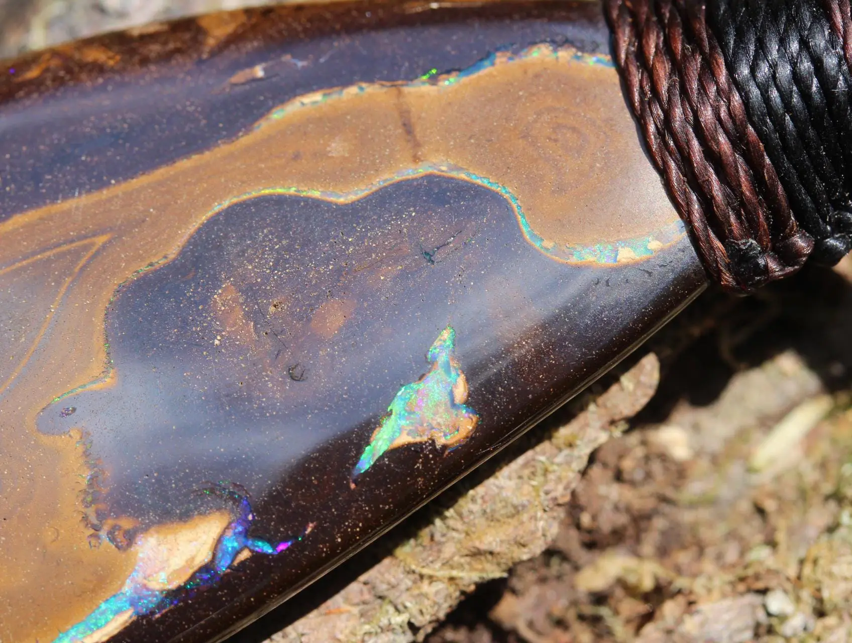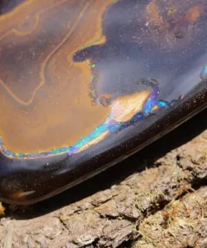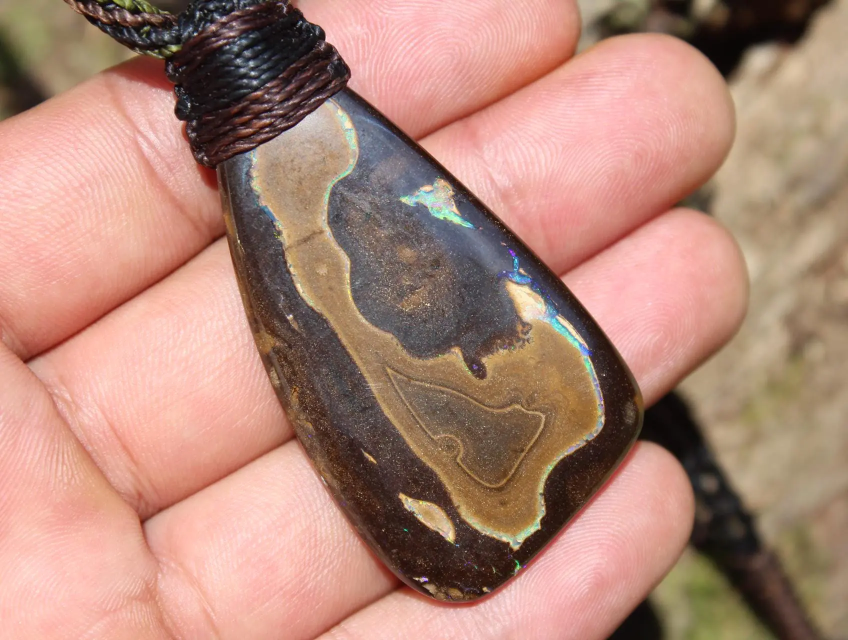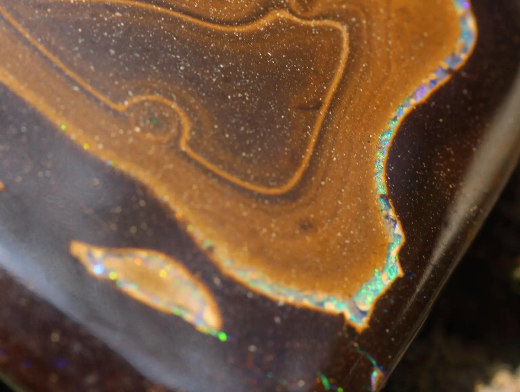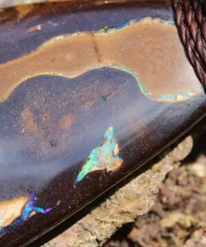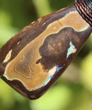 Boulder Opal flashes different colours at different angles — greens, blues, reds, violets, golds — shifting with every movement.