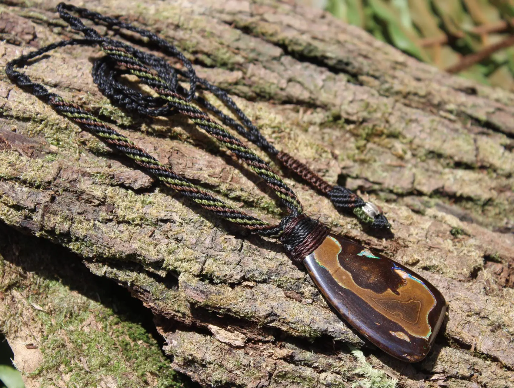 Australian Mookaite , Australian creek and rainforest Jasper, unique tribal necklace talisman, Australian made Macrame Cord, Summer jewelry