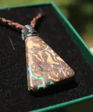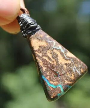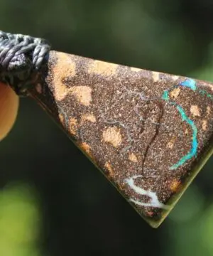 This is a beautiful handcrafted AAA-quality Queensland Boulder Opal talisman, created by our Platypus Dreaming collective in the ancient rainforests of Kuranda, Far North Queensland — Ngunbay / Djabugay Country.