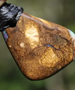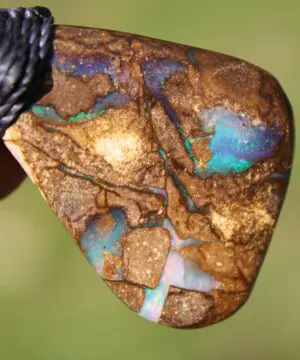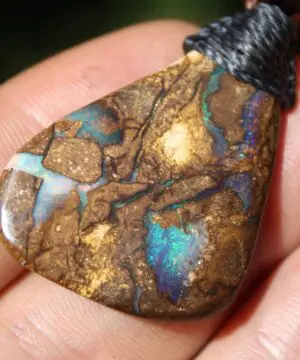 Boulder Opal flashes different colours at different angles — greens, blues, reds, violets, golds — shifting with every movement.