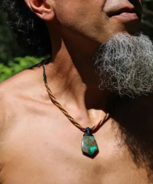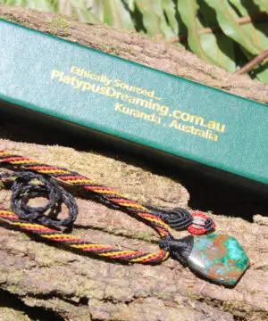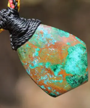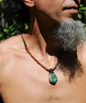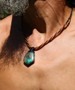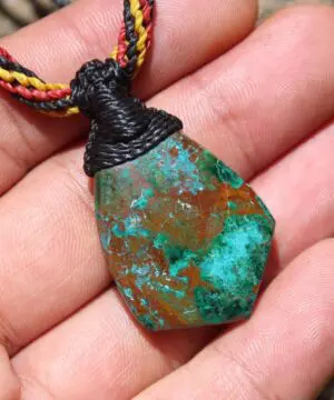 Rare Australian Chrysocolla Crystal Talisman – Hand-Polished with Tropical Cord