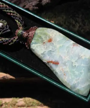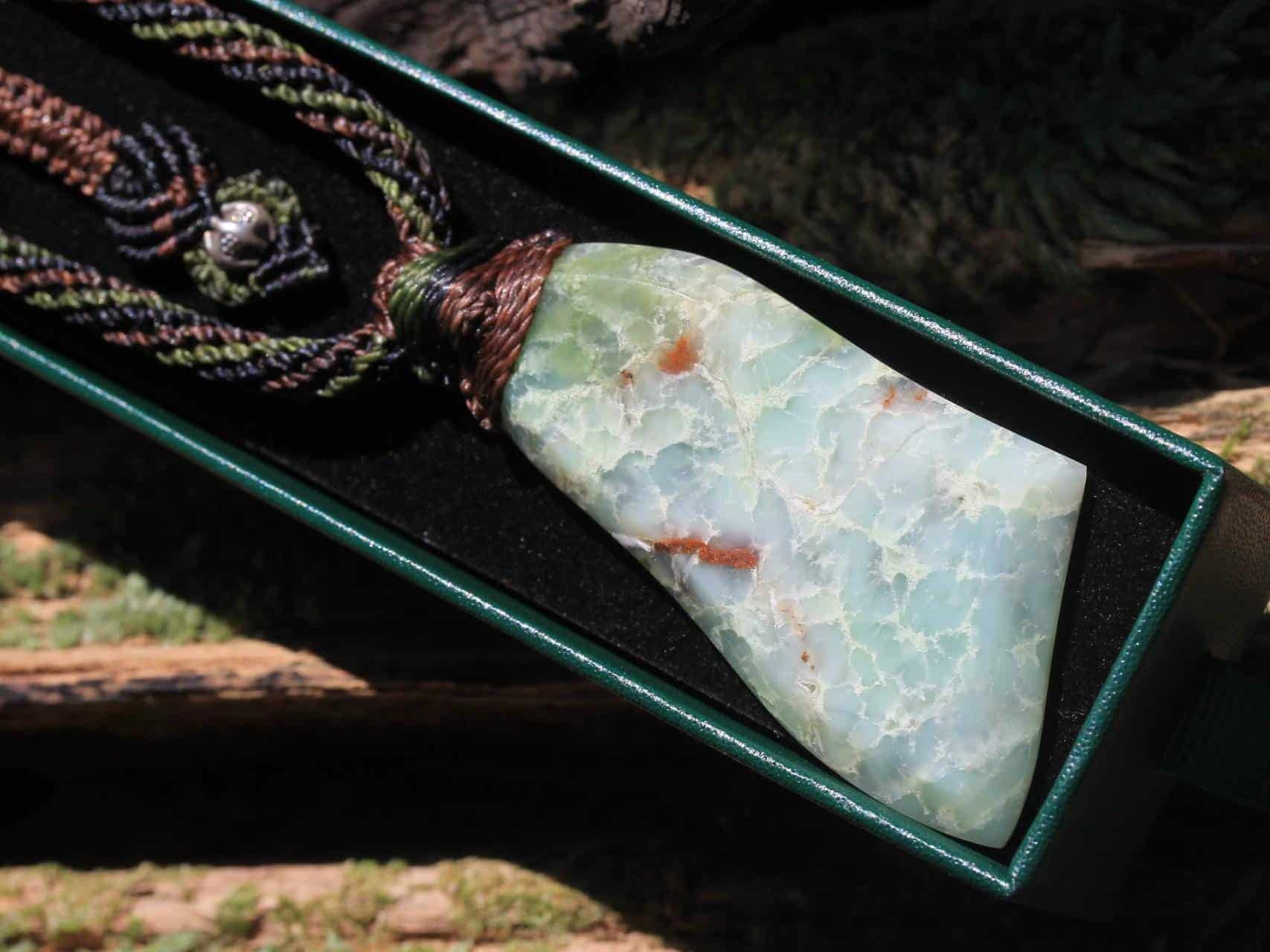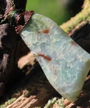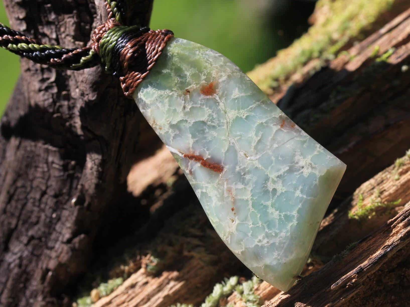 This divine dendritic Chrysoprase crystal talisman has been handcrafted by us here at Platypus Dreaming in the luscious rainforests of Far North Queensland, Australia. This is a rare stone – and not easy to find in such a stunning bottle green colour. The stone originates from Marlborough, Queensland. It is a soothing and calming one-of-a-kind creation. This talisman features a 1000 pure silver tribal bead that has been hand-cut and chiseled using traditional techniques.