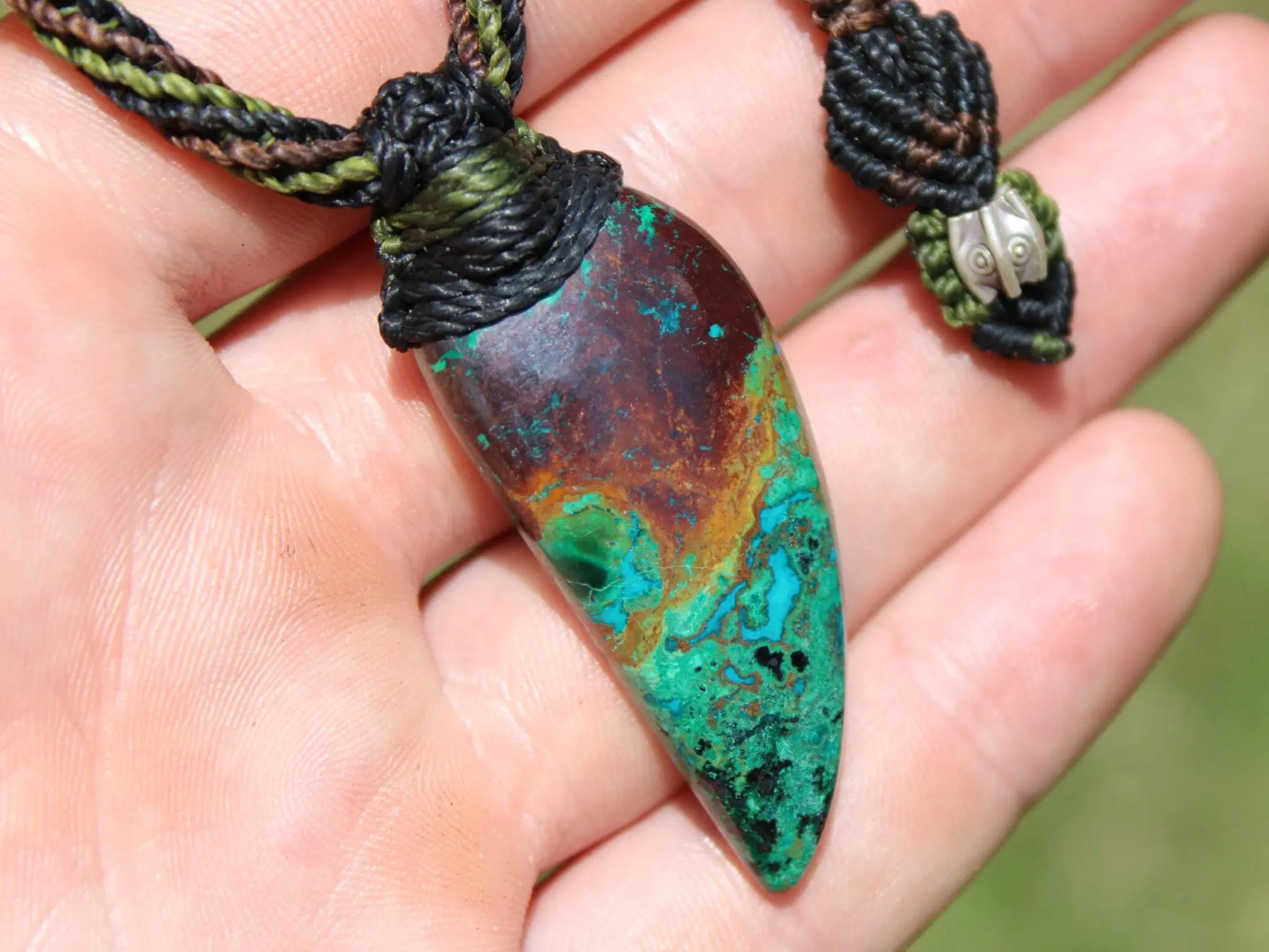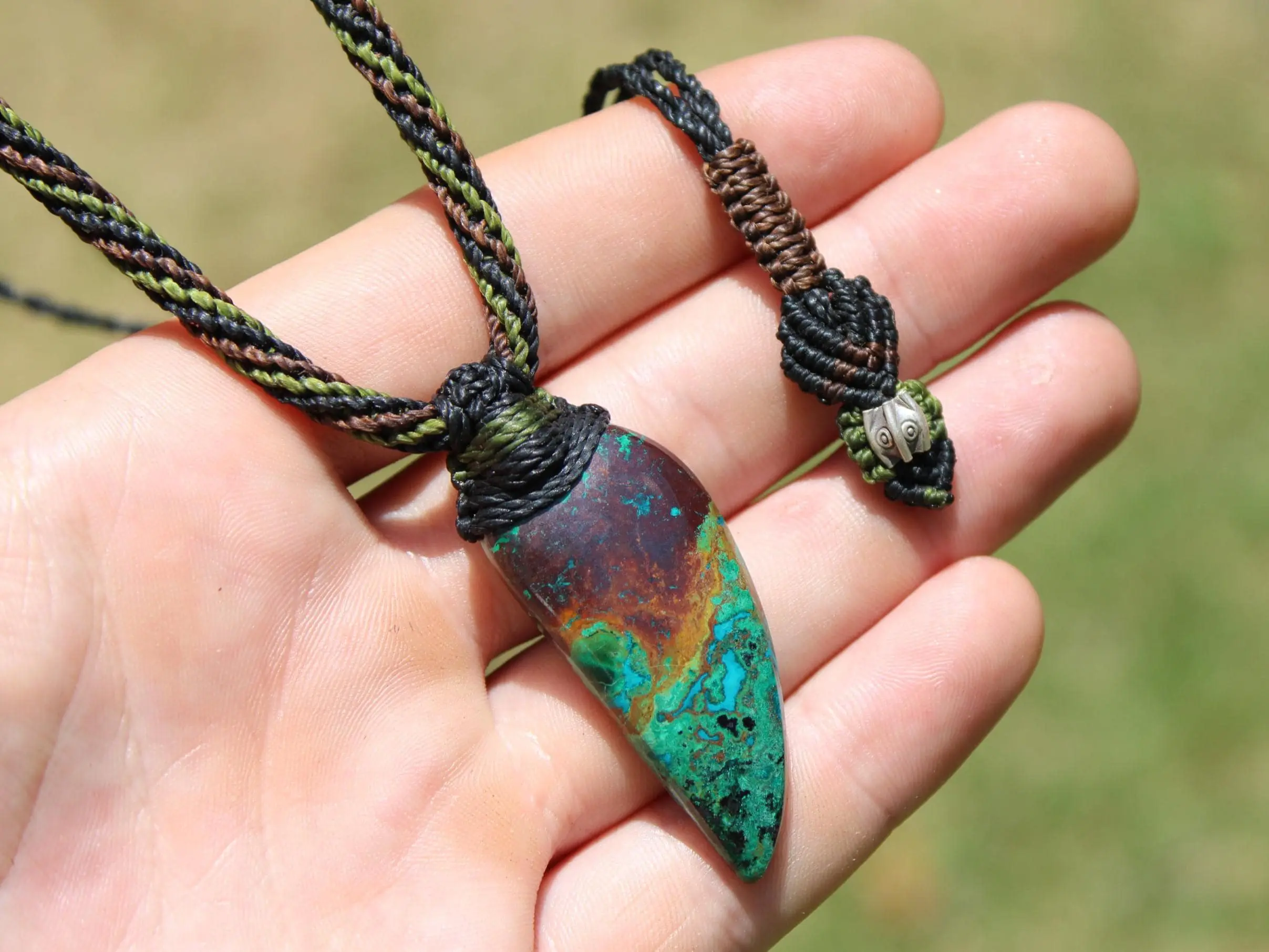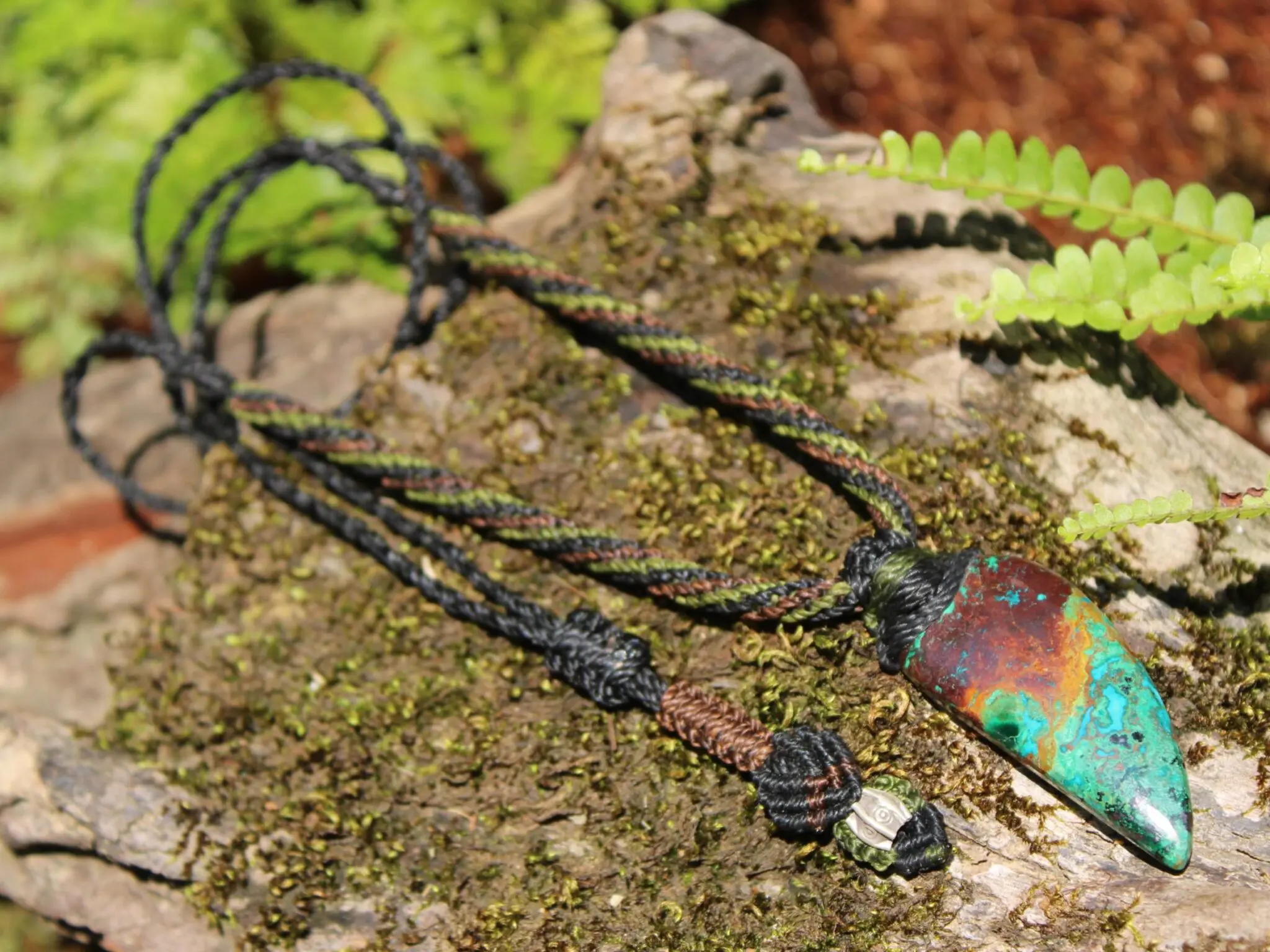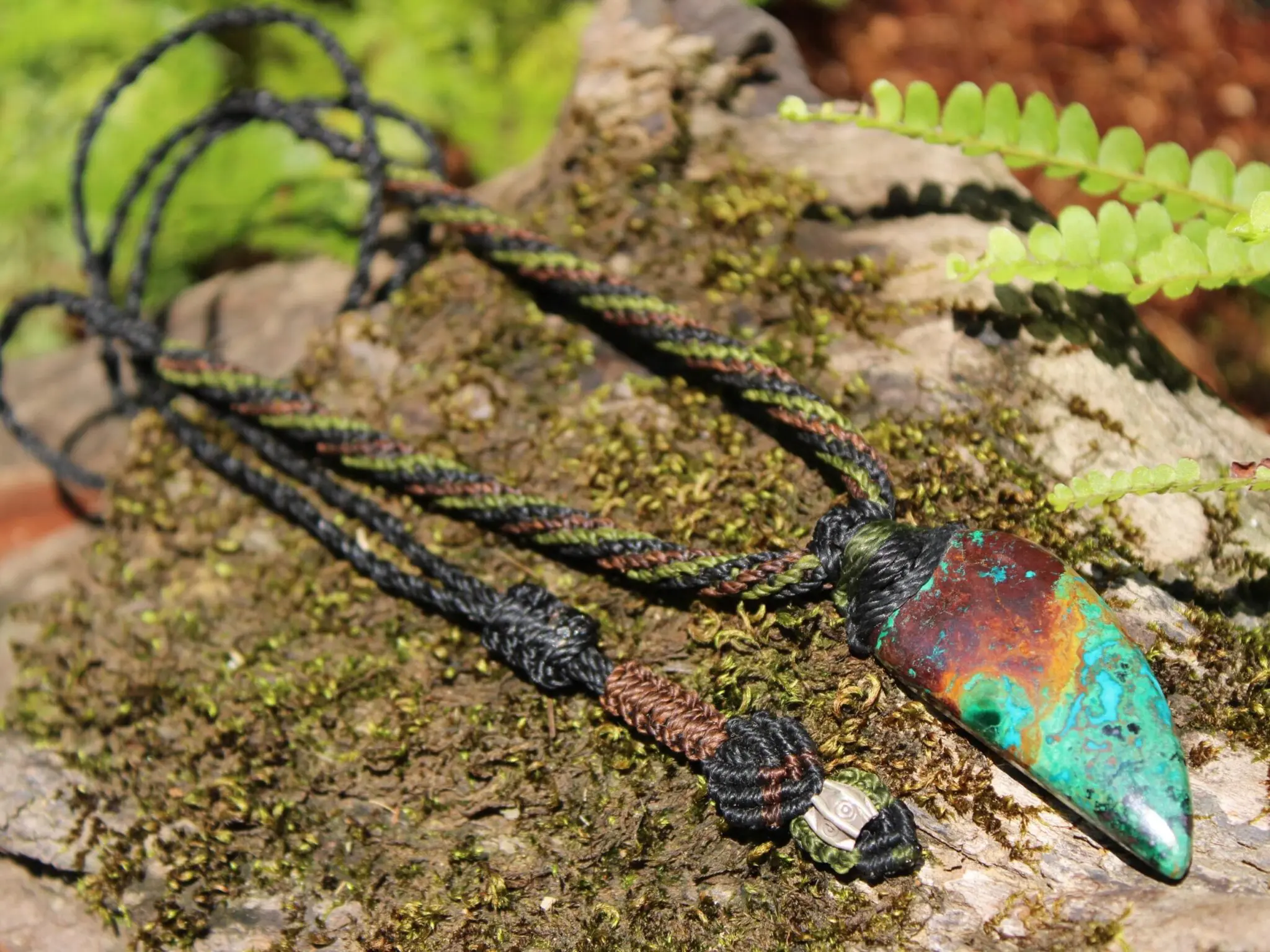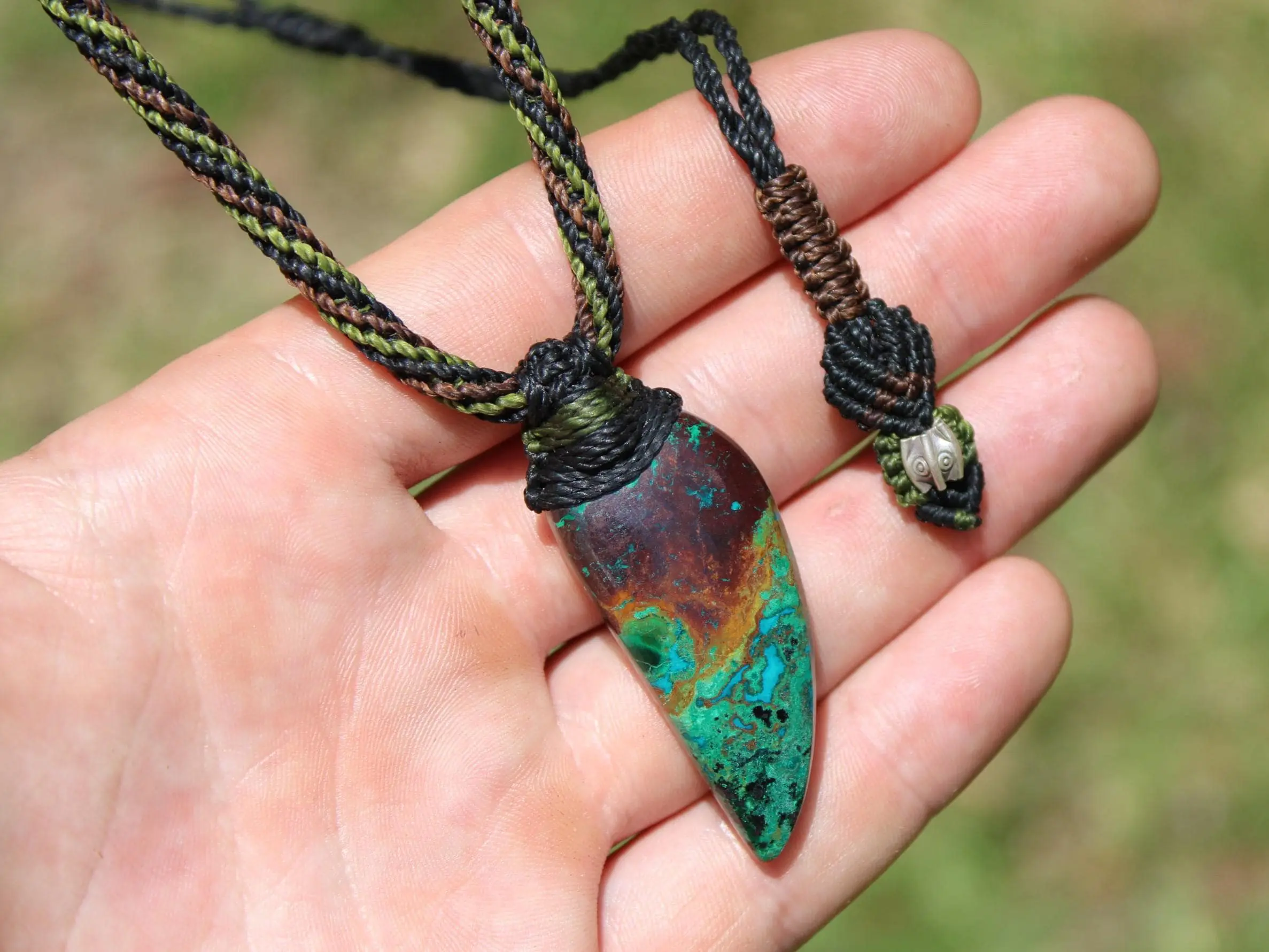 AUSTRALIAN Copper CHRYSOCOLLA Pendant, Natural Malachite Gem Silica Necklace, Australian made Macrame cord, green stone Gemstone Pendant