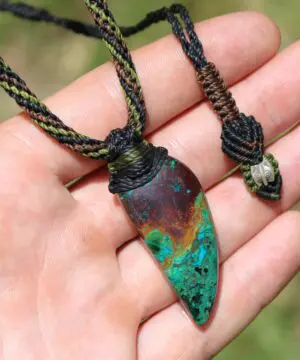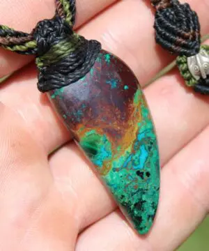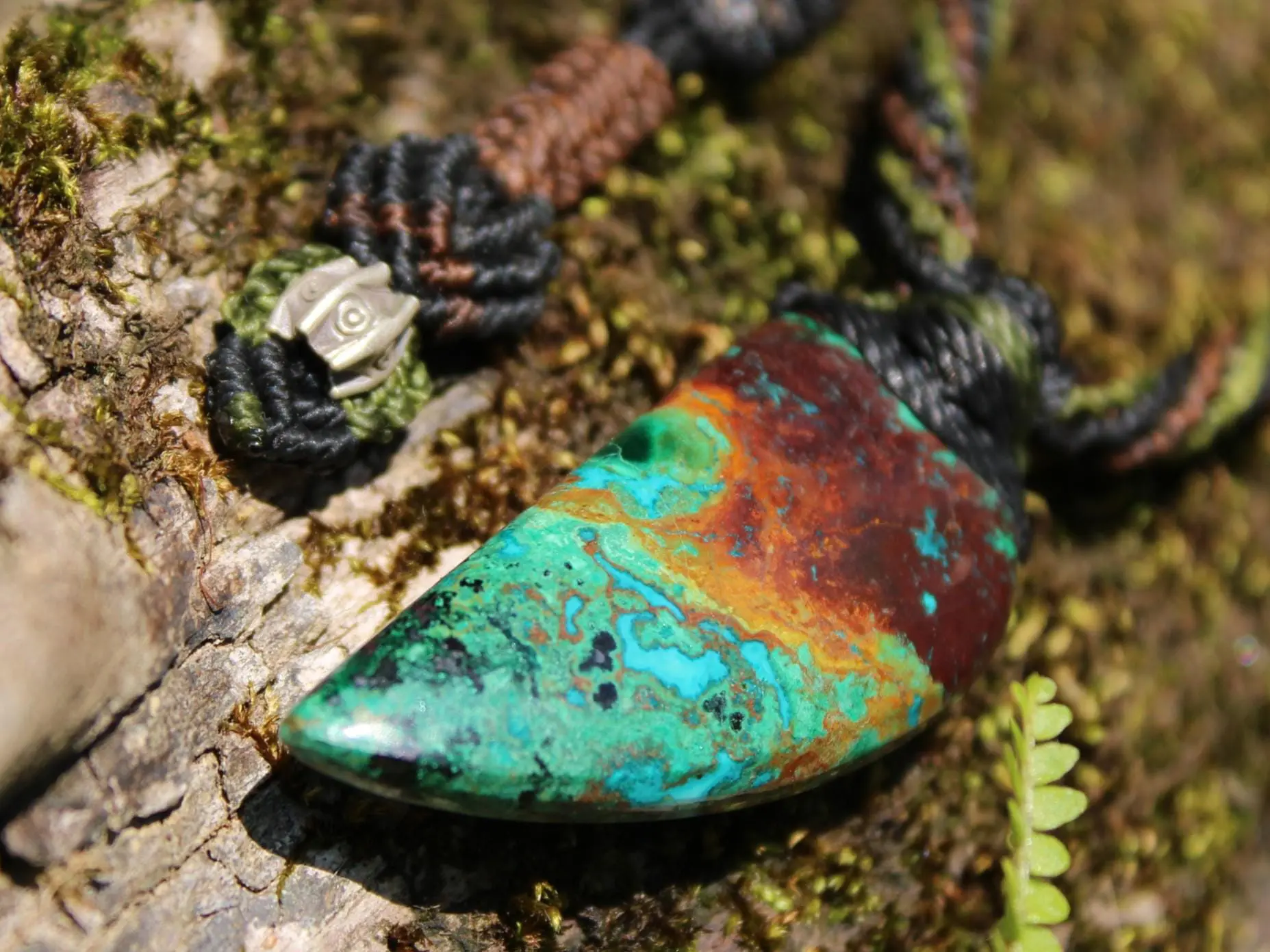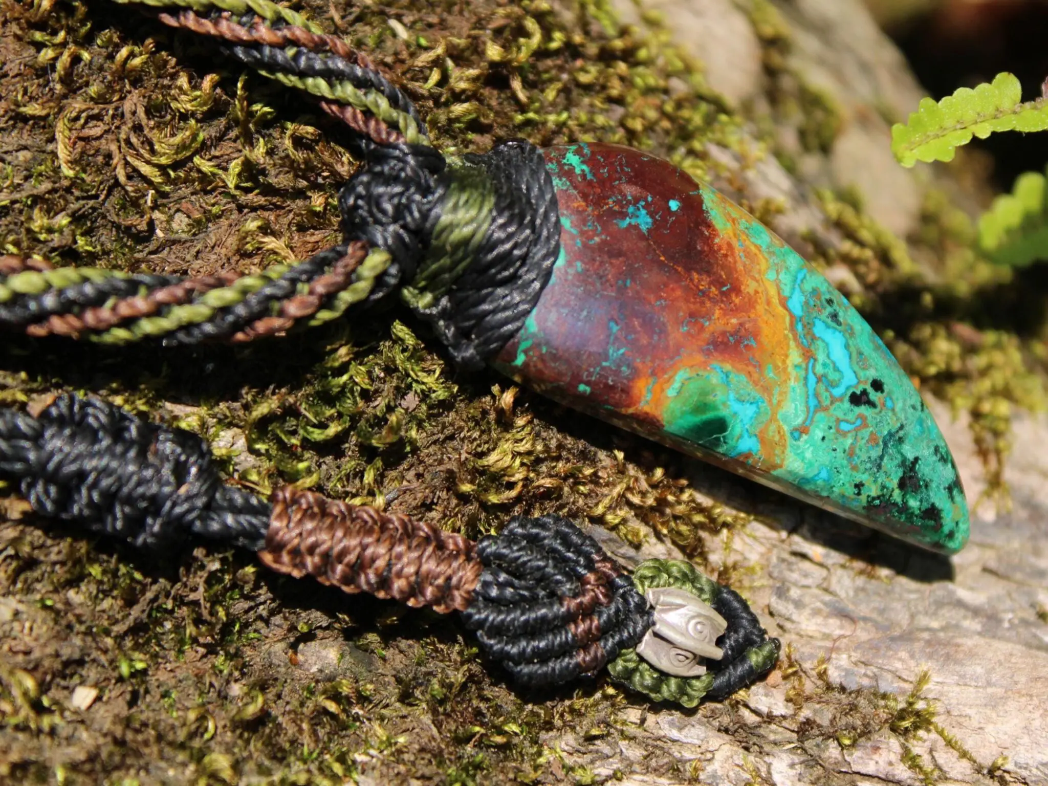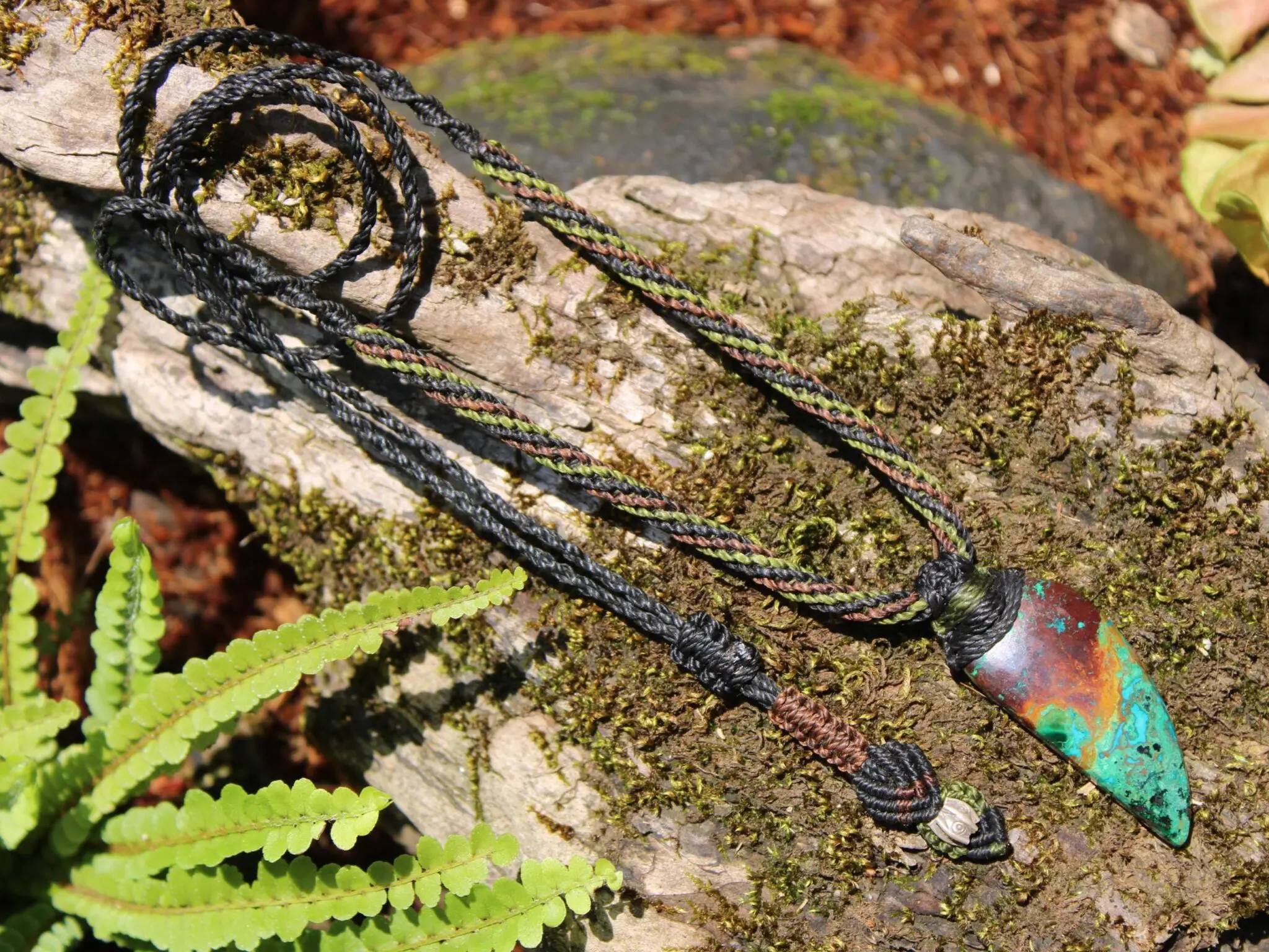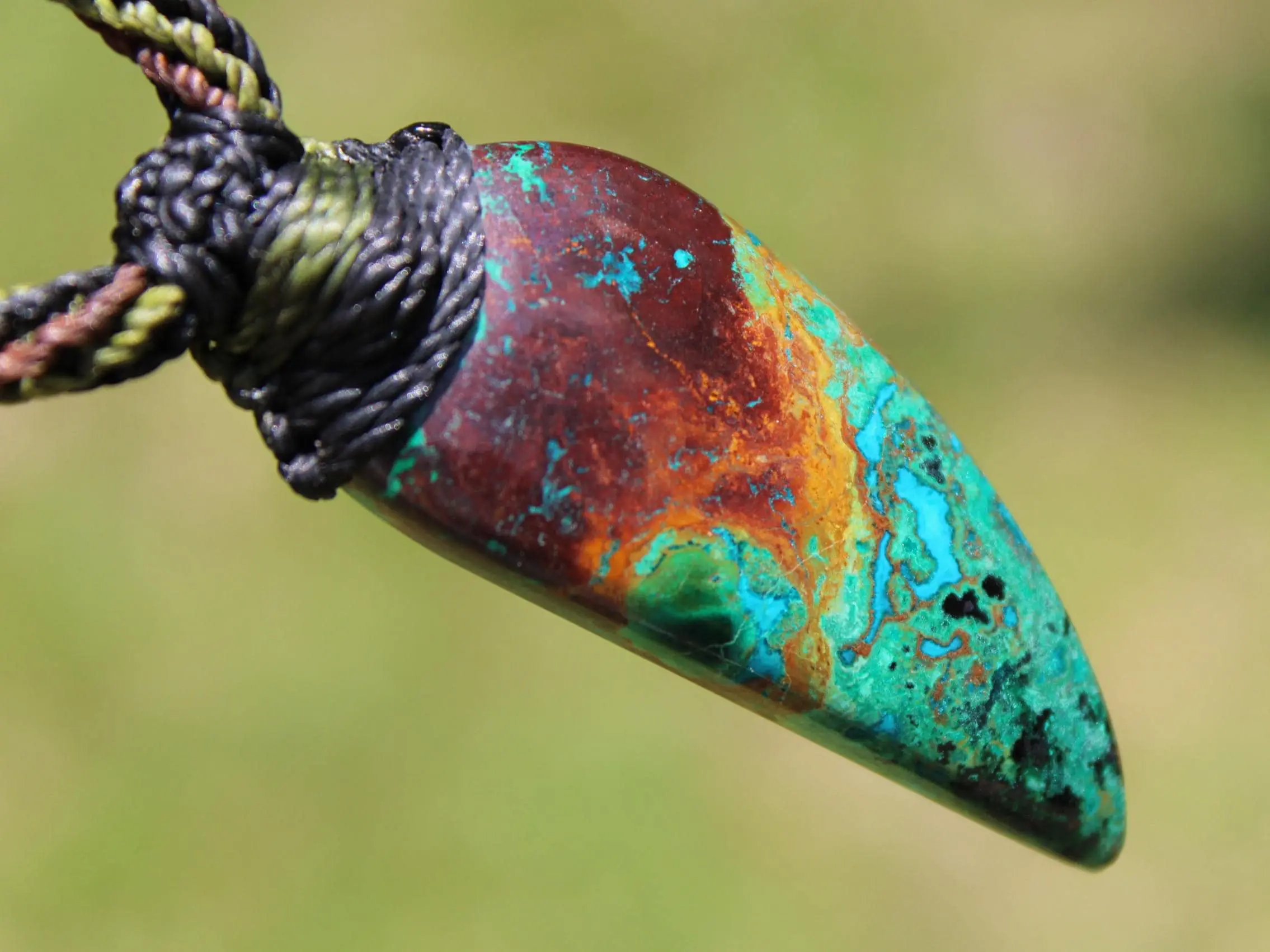 AUSTRALIAN Copper CHRYSOCOLLA Pendant, Natural Malachite Gem Silica Necklace, Australian made Macrame cord, green stone Gemstone Pendant