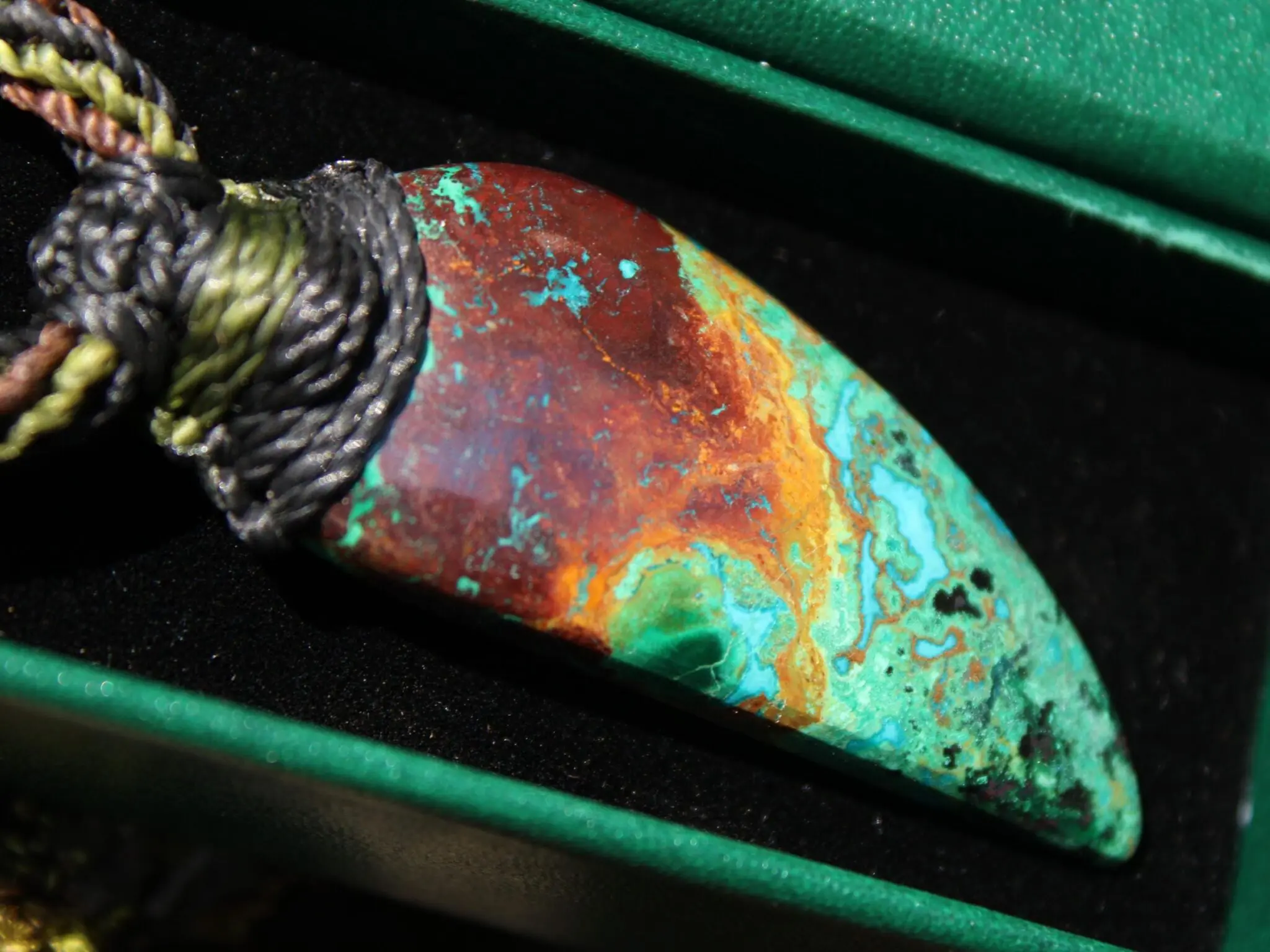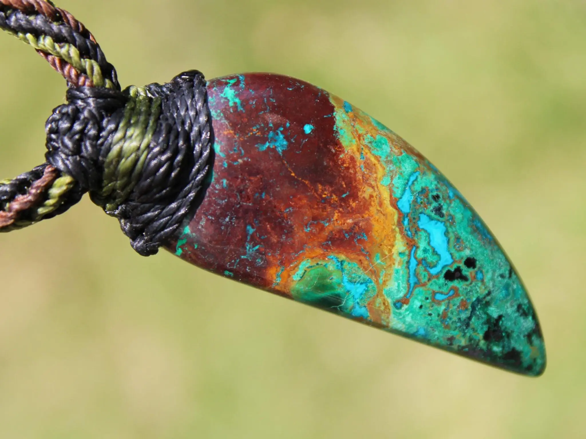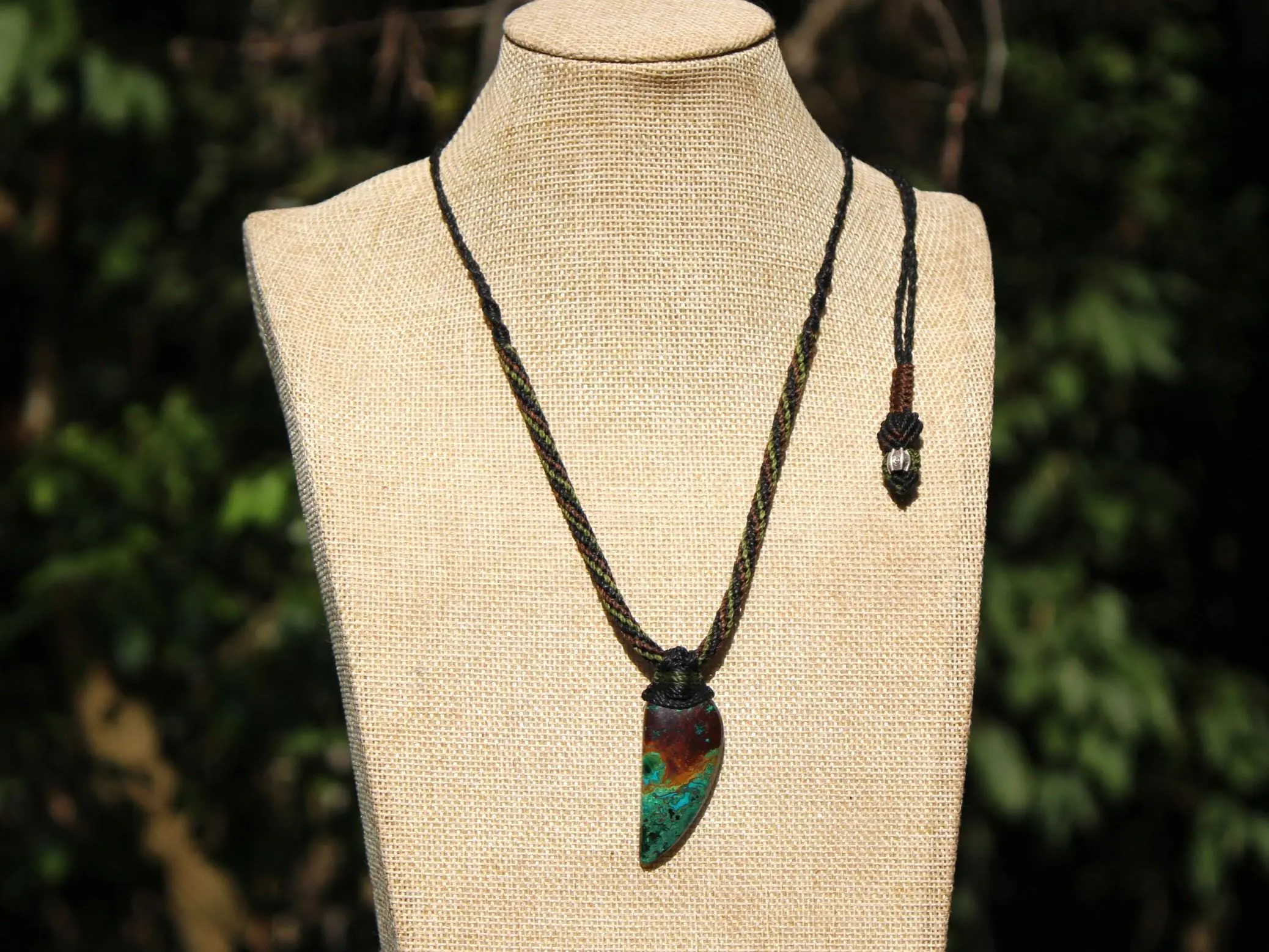AUSTRALIAN Gem Silica CHRYSOCOLLA Pendant,Natural Malachite Necklace, Australian handade Tropical cord necklace, Malachite Gemstone Pendant