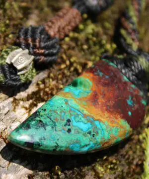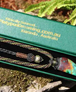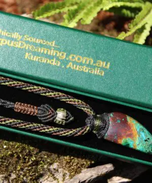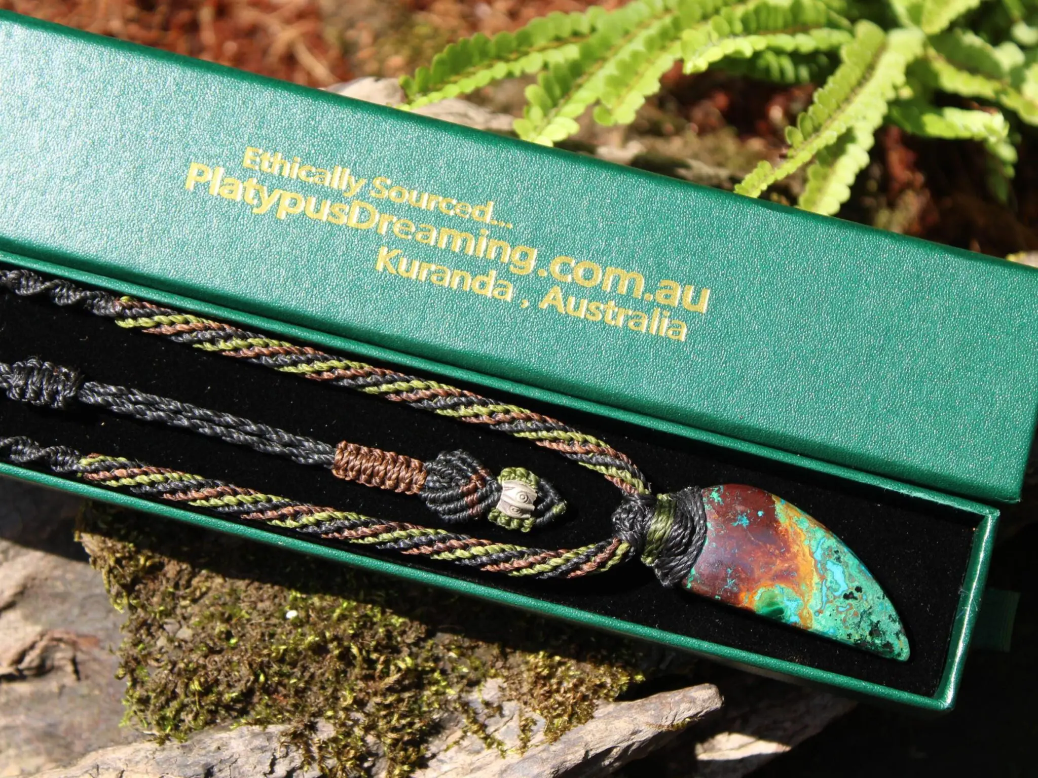 This is a powerful and rare Australian Chrysocolla crystal talisman, handcrafted by us here at Platypus Dreaming, in the lush rainforests of Far North Queensland, Australia.