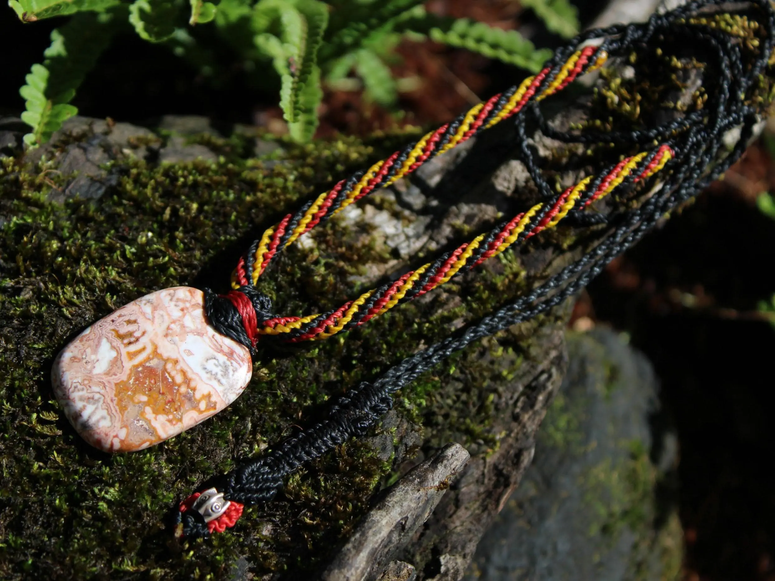 Unakite Talisman Necklace, Raw Unakite Pendant, Heart Chakra Healing, Boho Gemstone Necklace, Macrame cord,Handmade Healing Crystal Jewelry