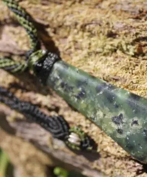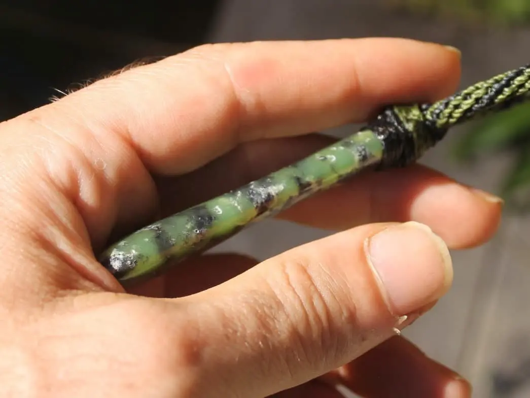 This rare Dendritic Chrysoprase crystal talisman has been handcrafted by us here at Platypus Dreaming. This piece has slice of quartz crystal in the middle if you look close enough you can see them.