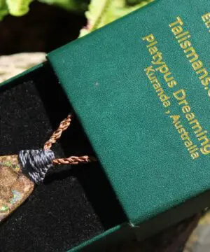 This is a beautiful handcrafted AAA-quality Queensland Boulder Opal talisman, created by our Platypus Dreaming collective in the ancient rainforests of Kuranda, Far North Queensland — Ngunbay / Djabugay Country.