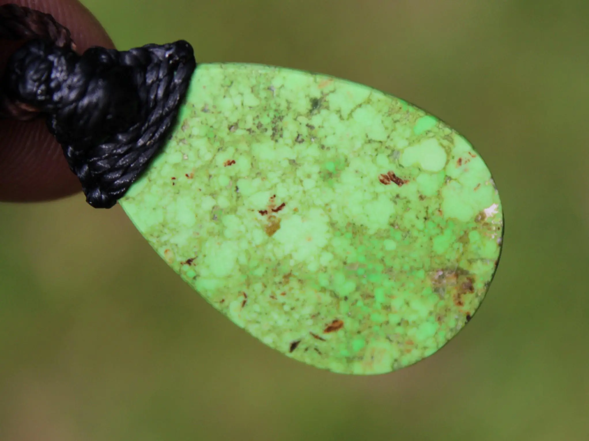 This is a super rare stone — the original Gaspeite mine in Western Australia is now closed, and pieces of this quality are nearly impossible to find.