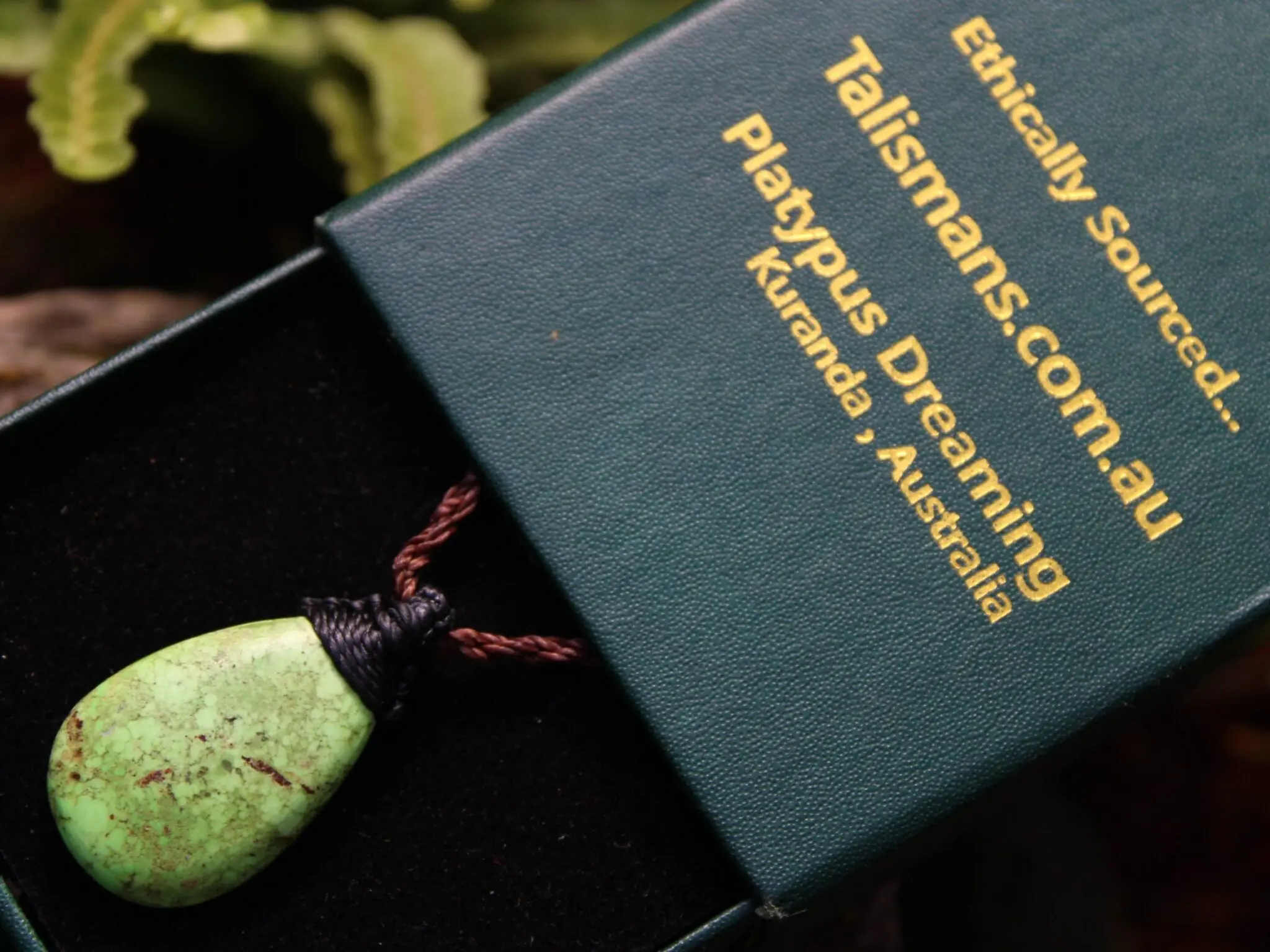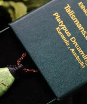 Each stone is hand-collected and polished by us at Platypus Dreaming in Ngunbay (Kuranda), Far North Queensland, the oldest rainforest on Earth. This talisman is non-gendered, vegan, and one-of-a-kind, created to honour the sacred story held within the stone.