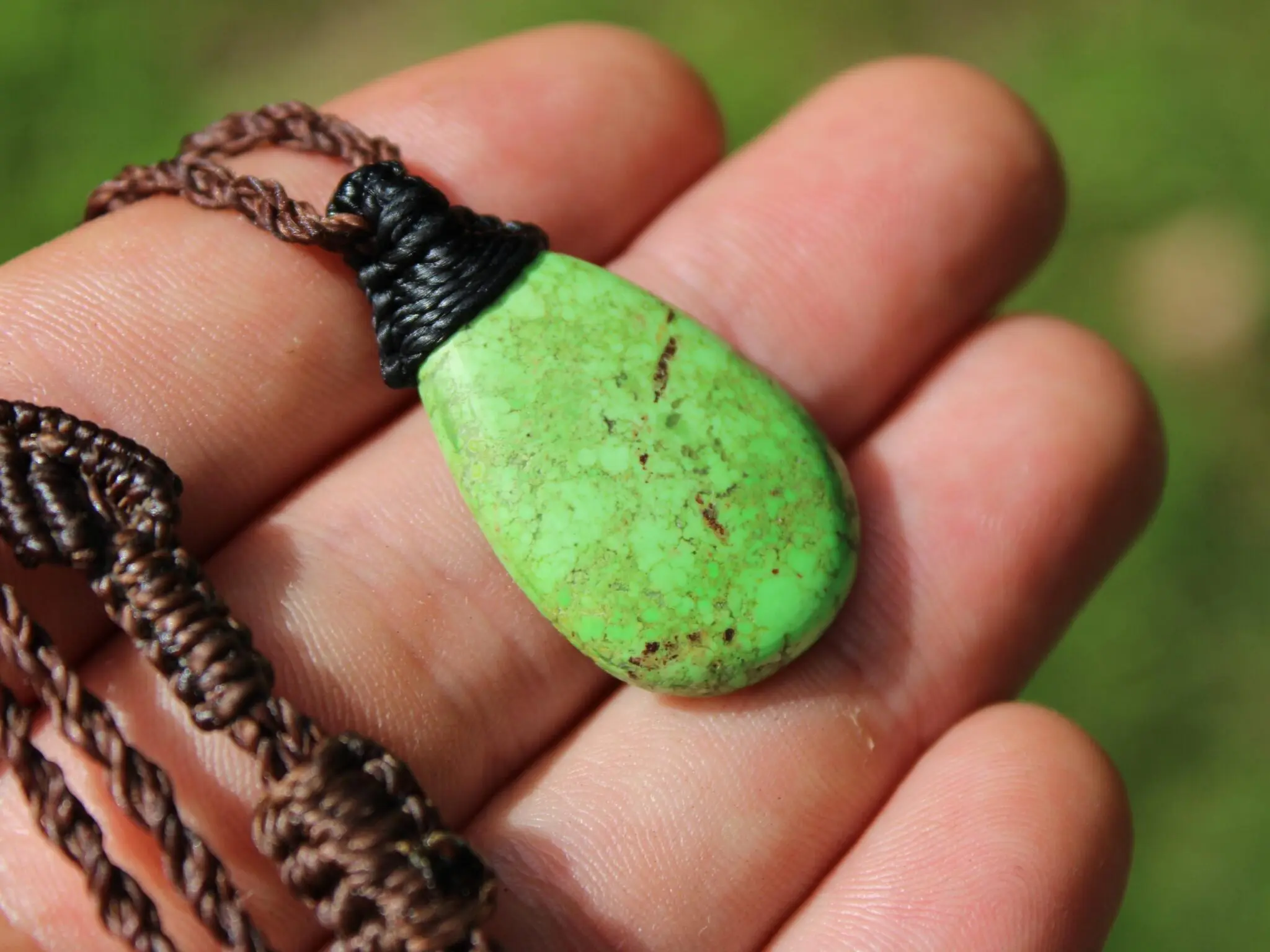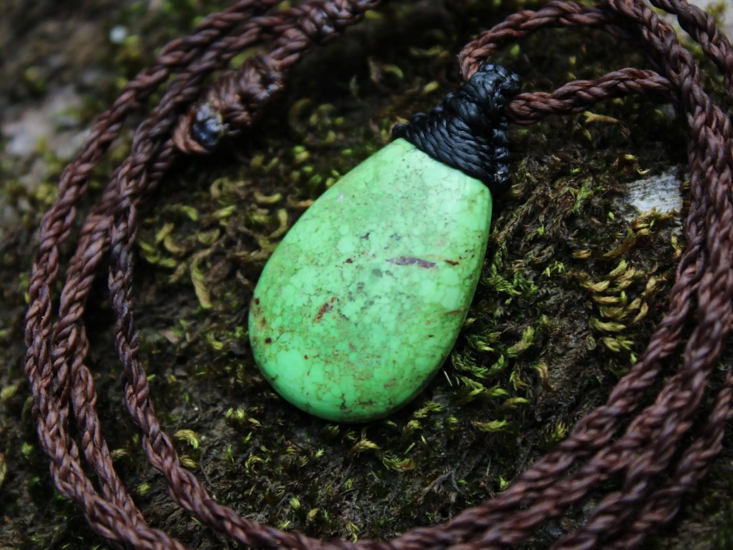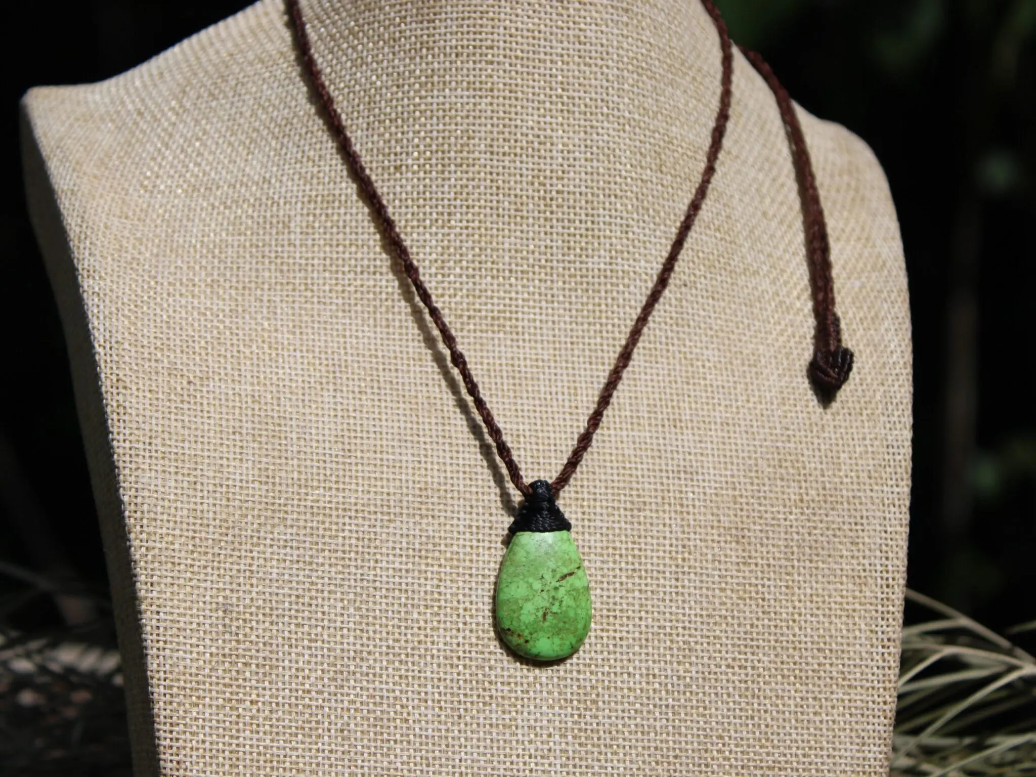 AUSTRALIAN Gem Silica CHRYSOCOLLA Pendant,Natural Malachite Necklace, Australian handade Tropical cord necklace, Malachite Gemstone Pendant