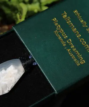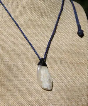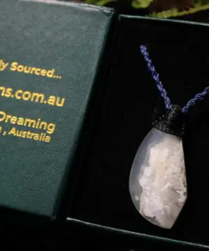 This divine Angelic plum Agate Necklace crystal talisman from agate creek, Australia has been handcrafted by us here at Platypus Dreaming in the luscious rainforests of Far North Queensland, Australia. Agate is one of the rarest forms of banded Chalcedony. Some specimens, in particular, have a coating of tiny druzy crystals within or on top of the banding formations. This stone has been ethically sourced and consciously polished – making it ideal for use in crystal healing.