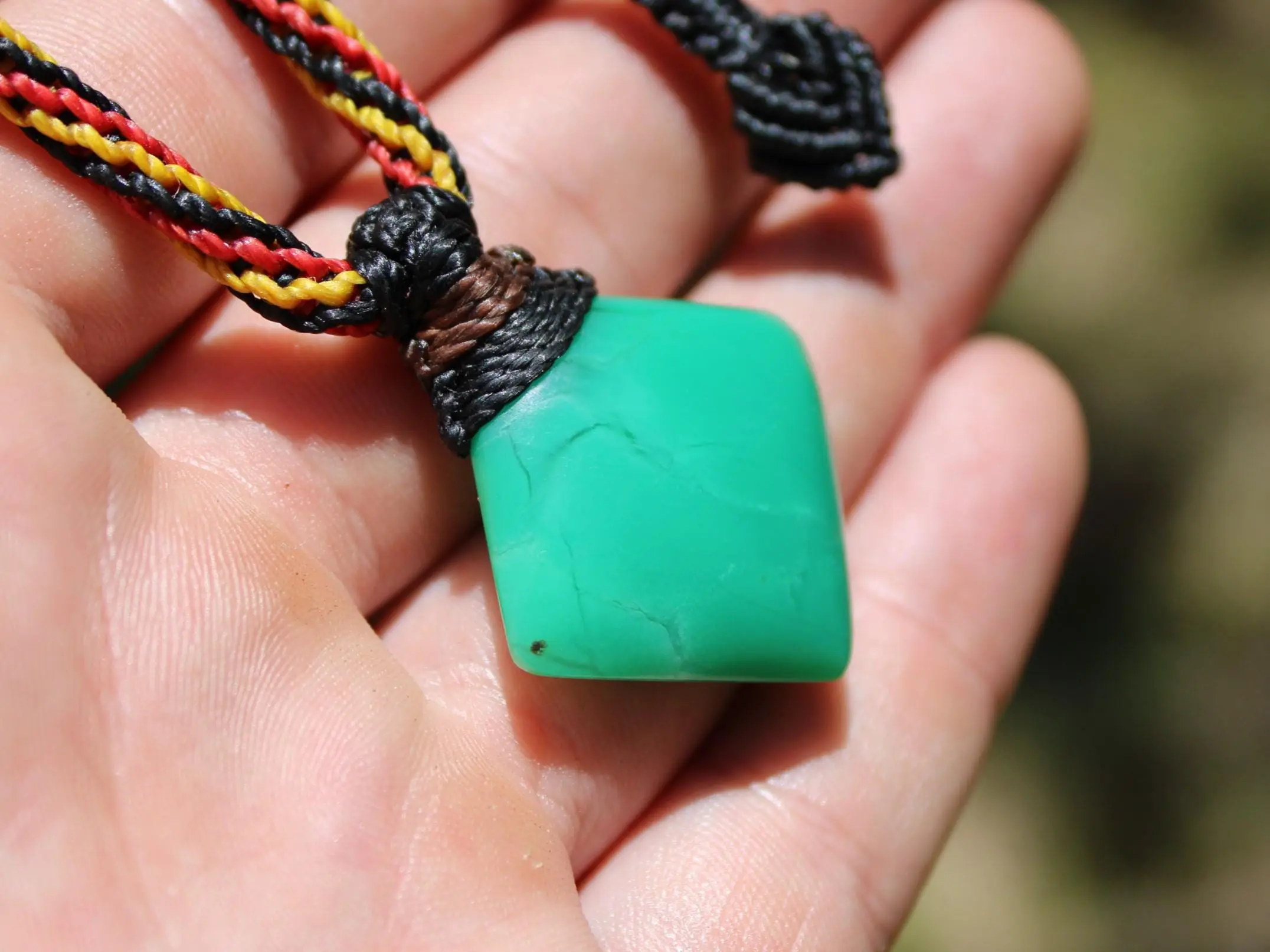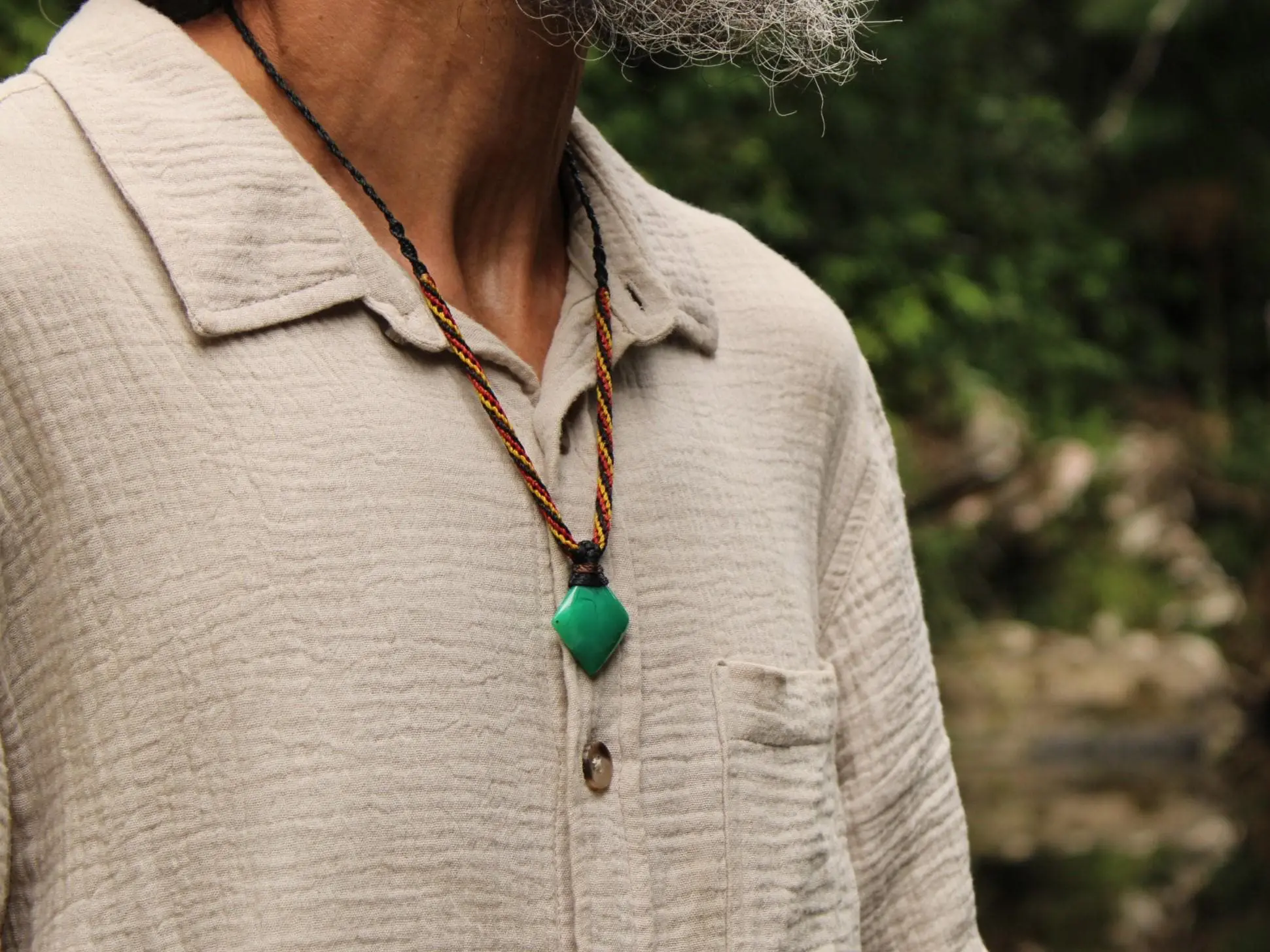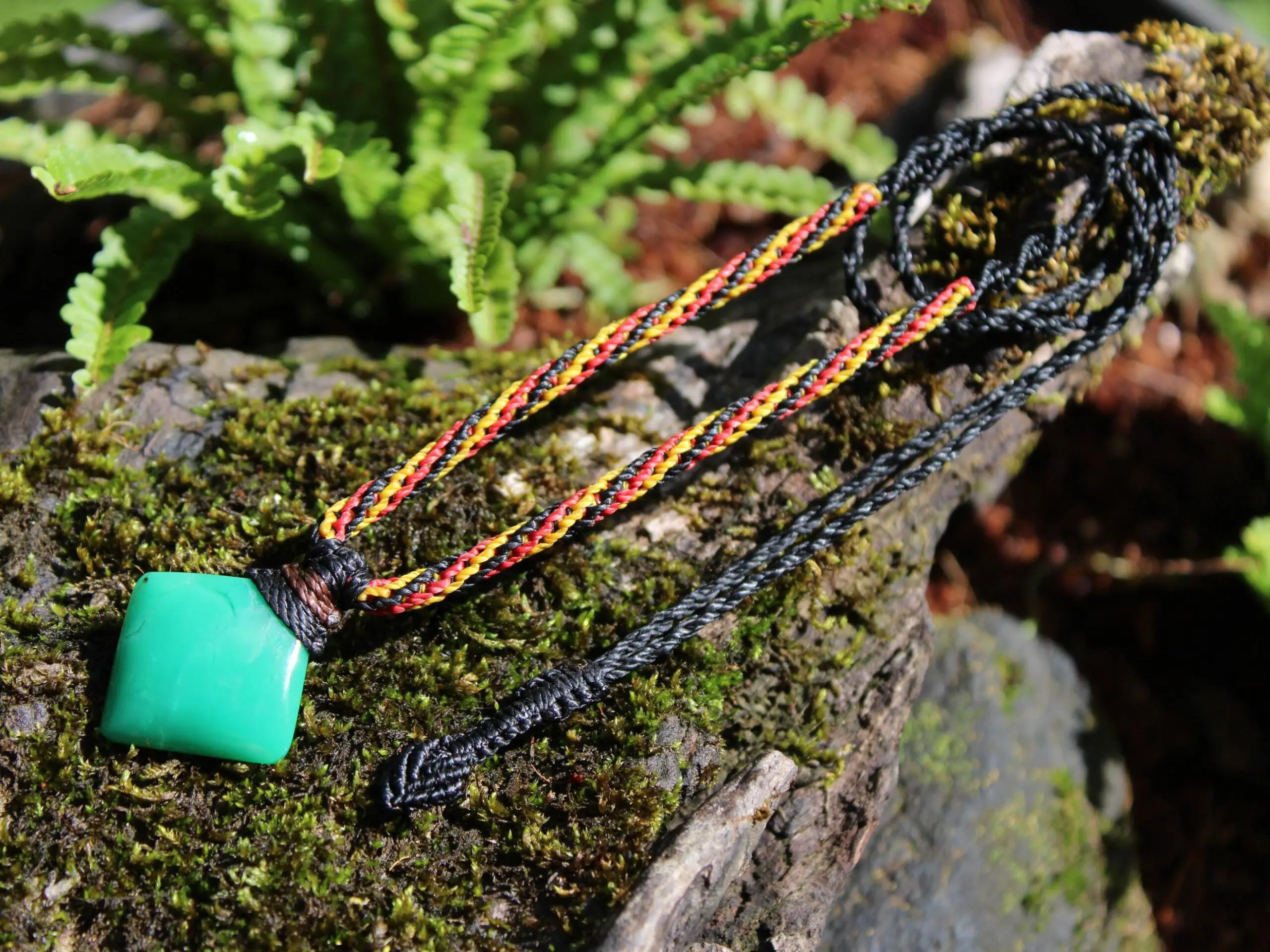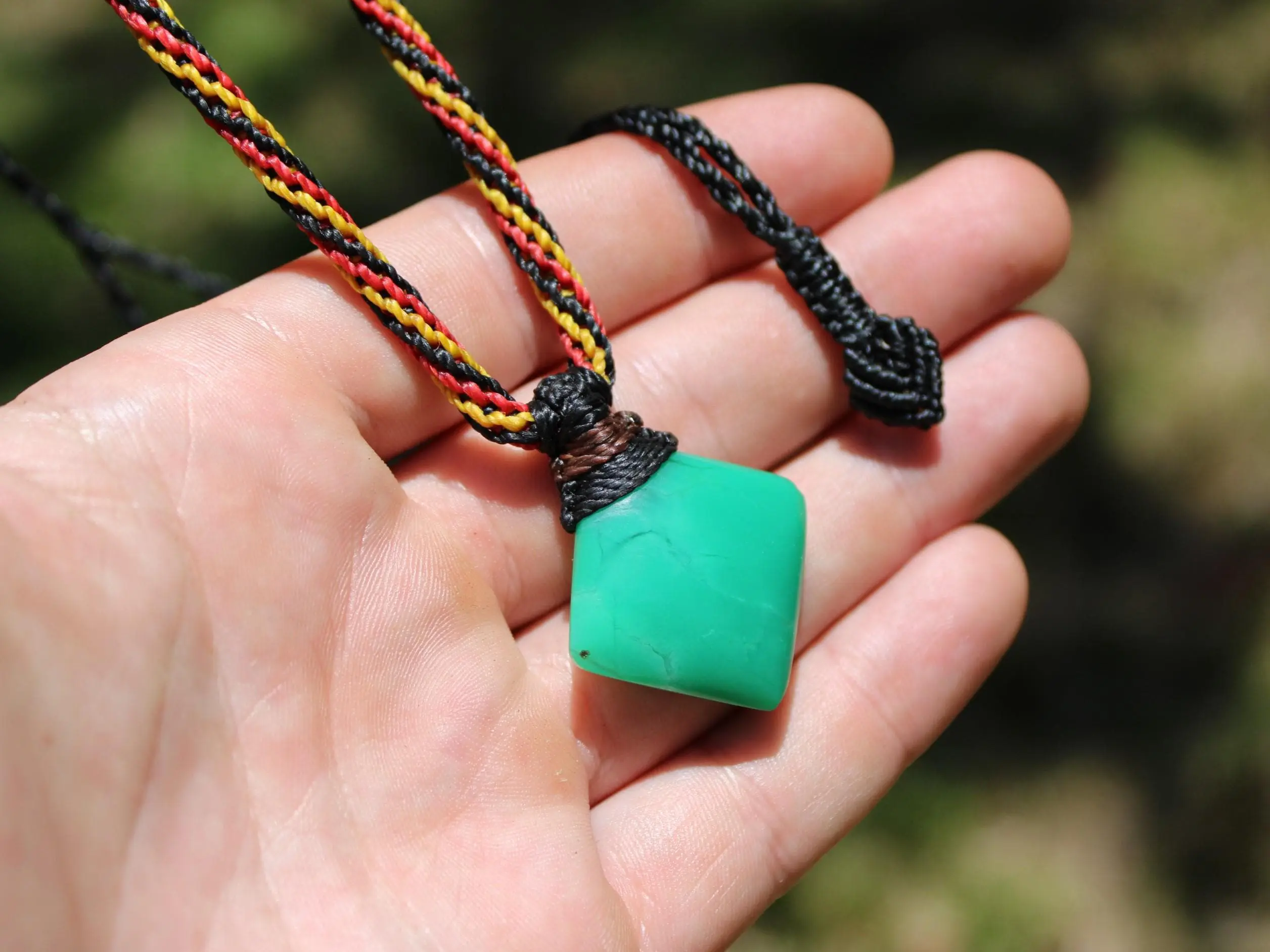 Tourmaline Necklace • Afghan Tourmaline Pendant • Raw Green Blue Crystal Talisman • Australian Handmade • Handwoven Tropical Cord