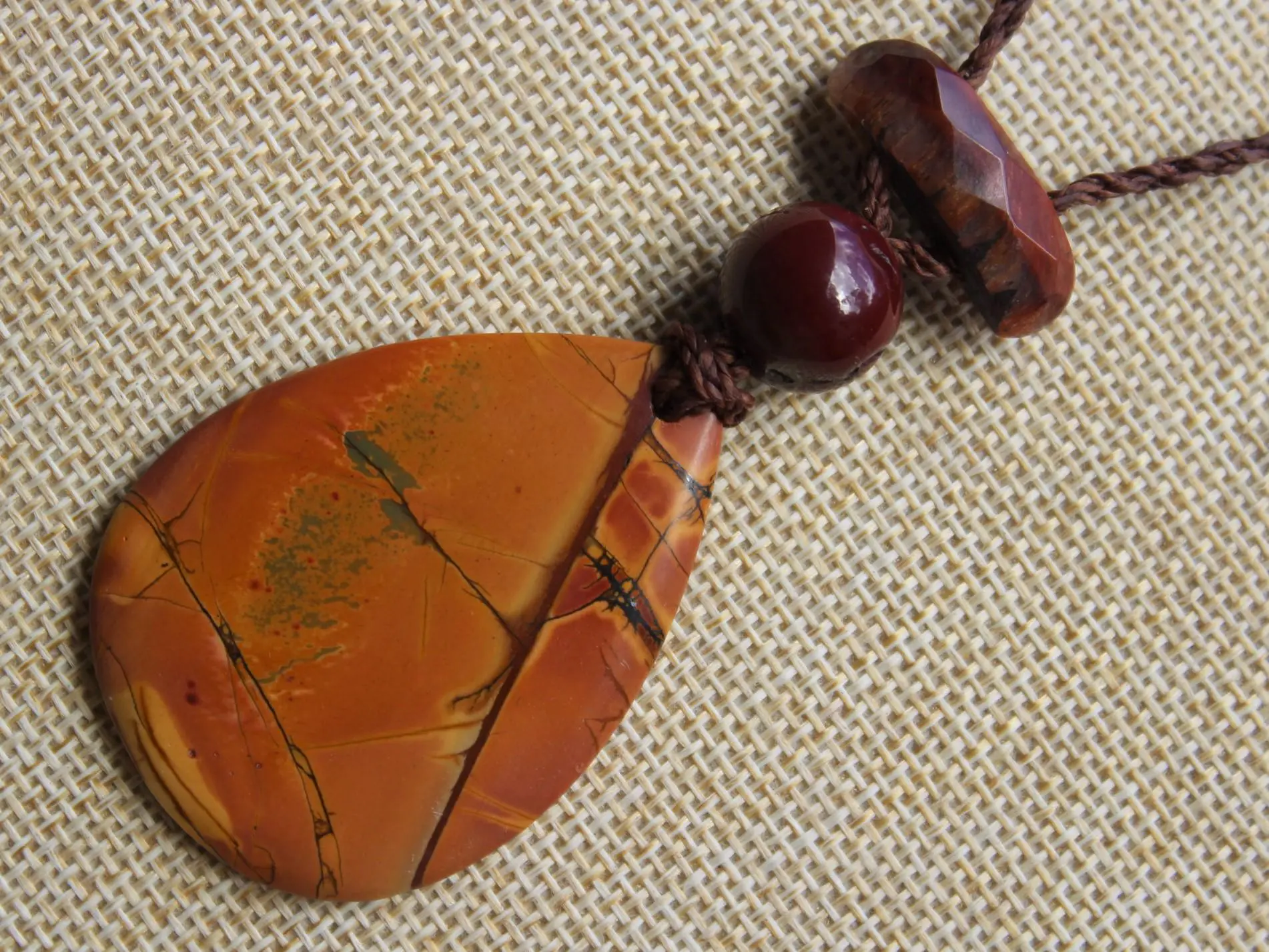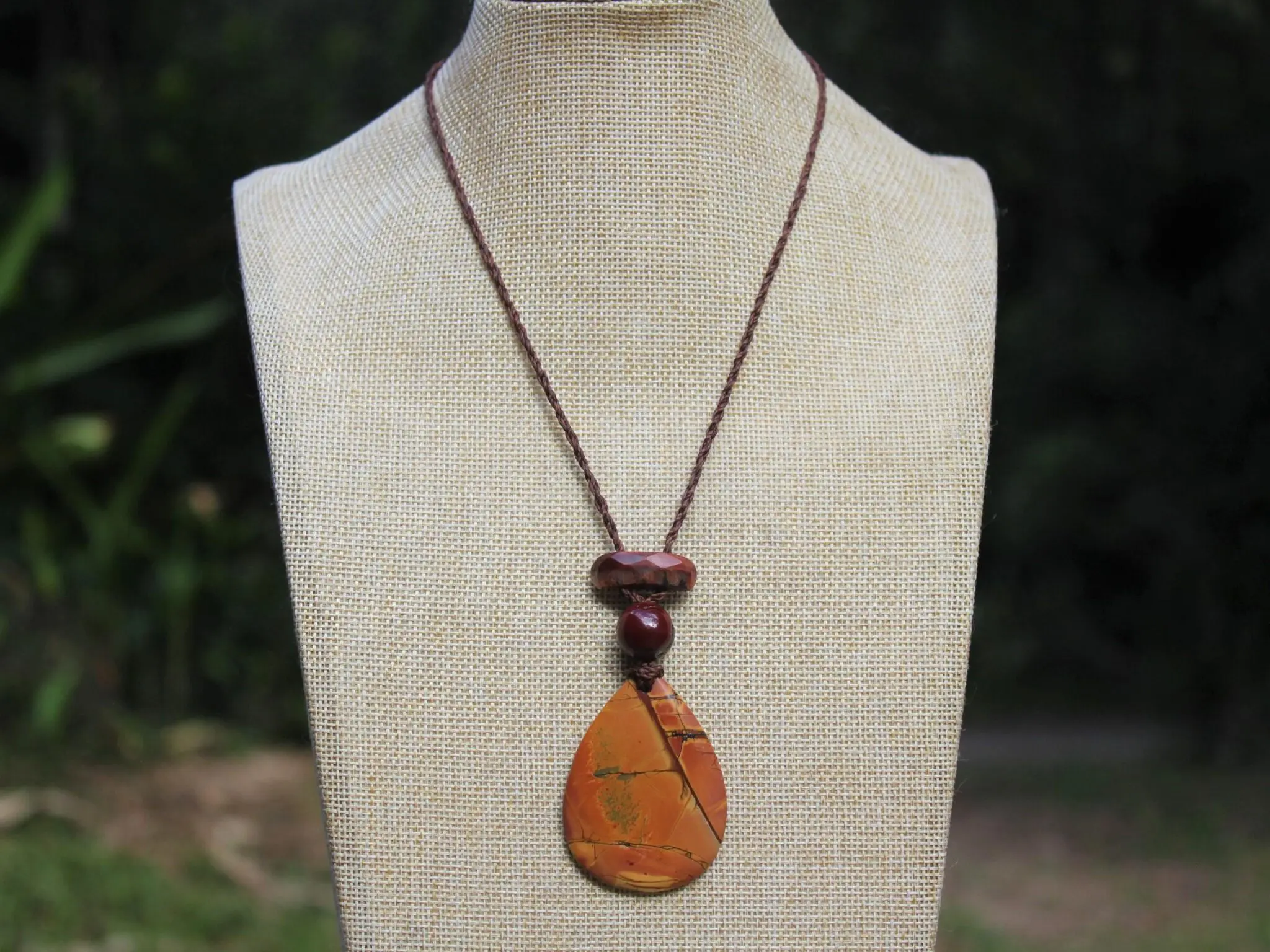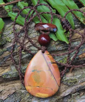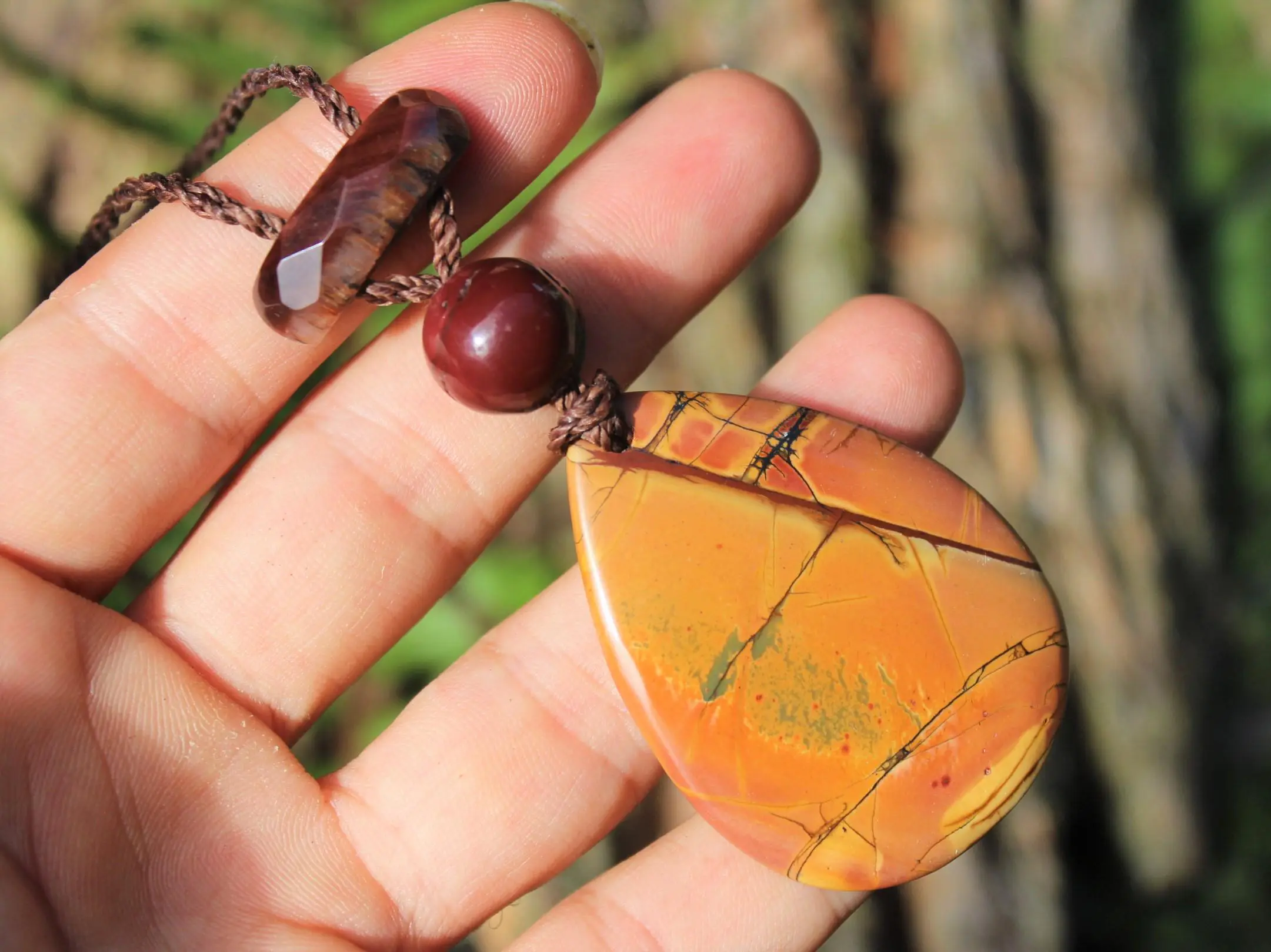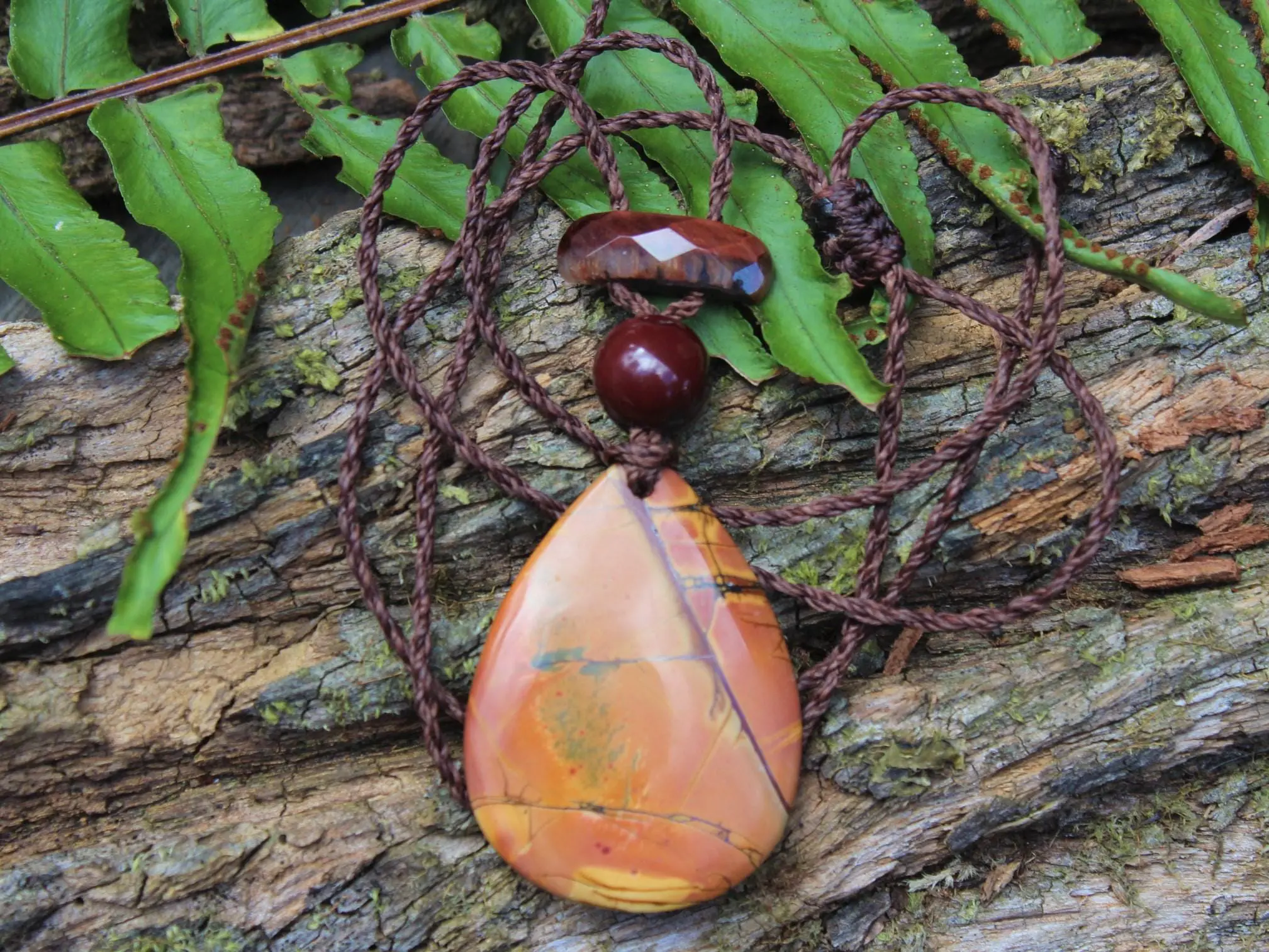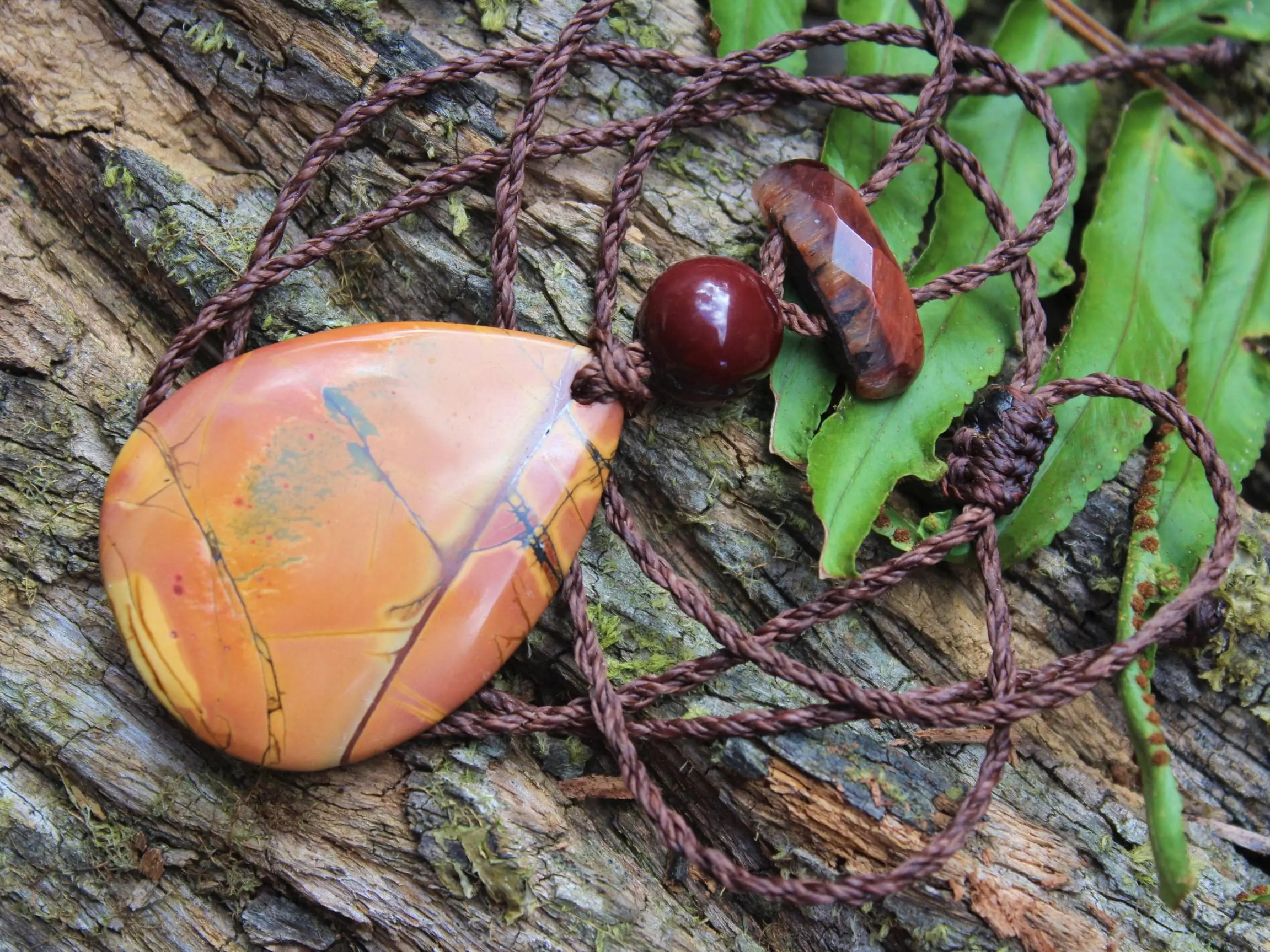 Australian Mookaite , Australian creek and rainforest Jasper, unique tribal necklace talisman, Australian made Macrame Cord, Summer jewelry