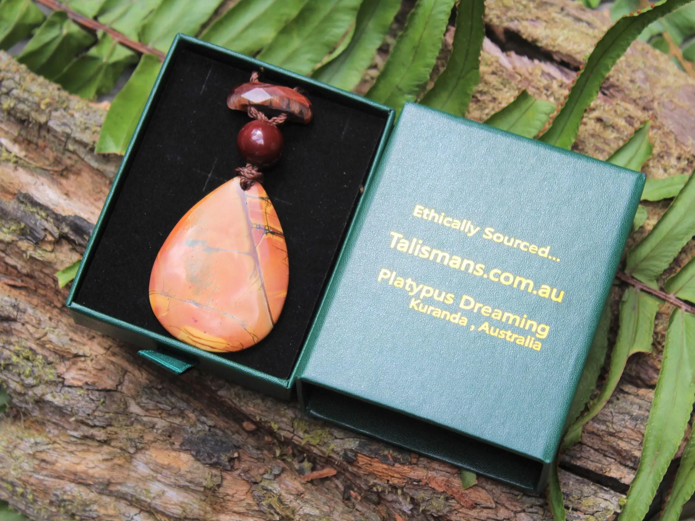 This powerful Jasper talisman ( Australian creek jasper, Australian Mookaite jasper and Australian rainforest jasper those 3 powerful stone crystal talisman has been handcrafted by us here at Emu Dreaming, in the luscious rainforests of Far North Queensland, Australia. This crystal is exceptionally rare as it is only found in the Hamersley Ranges in the Pilbara region of Western Australia – one of the most isolated and wild places on Earth. Marra Mamba Tiger Eye is highly chatoyant because it often contains hematite and Jasper.