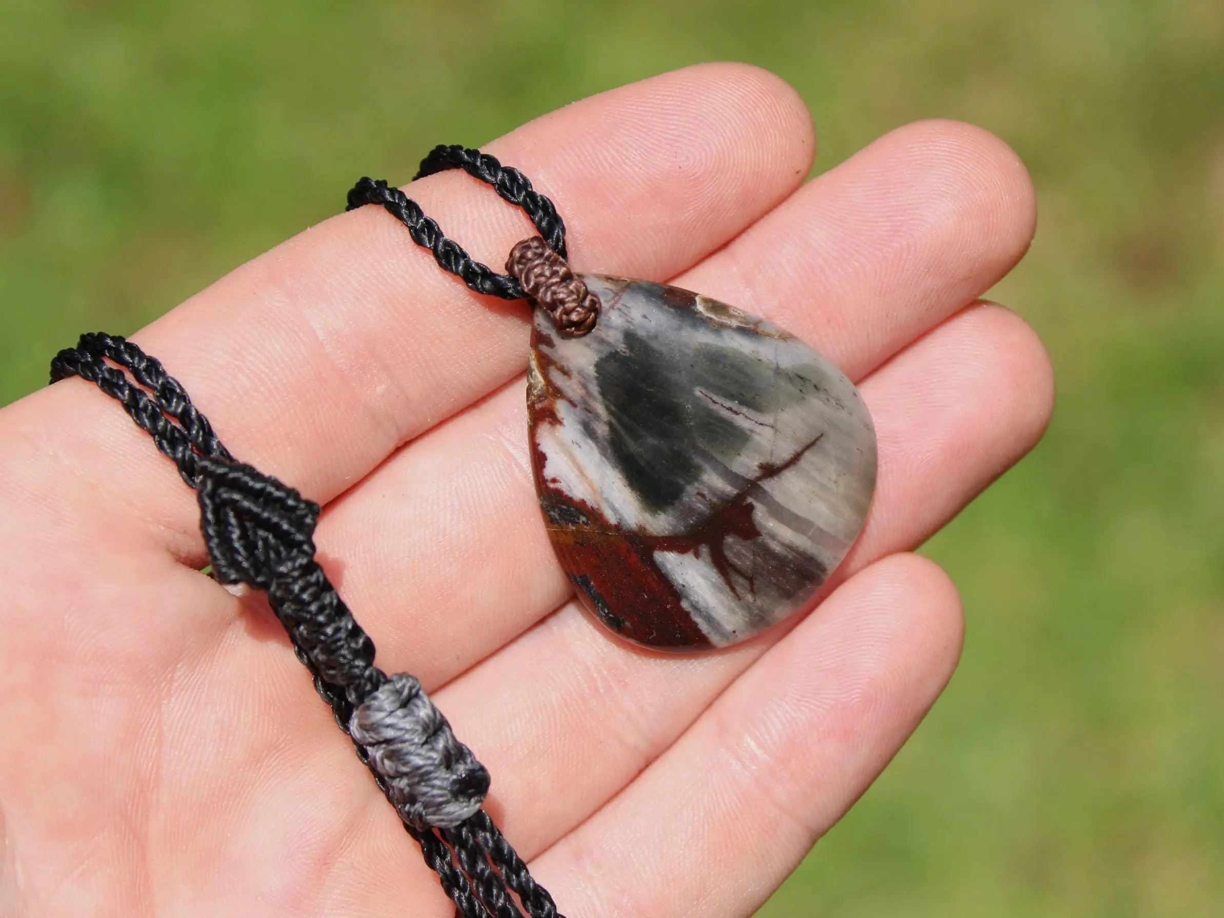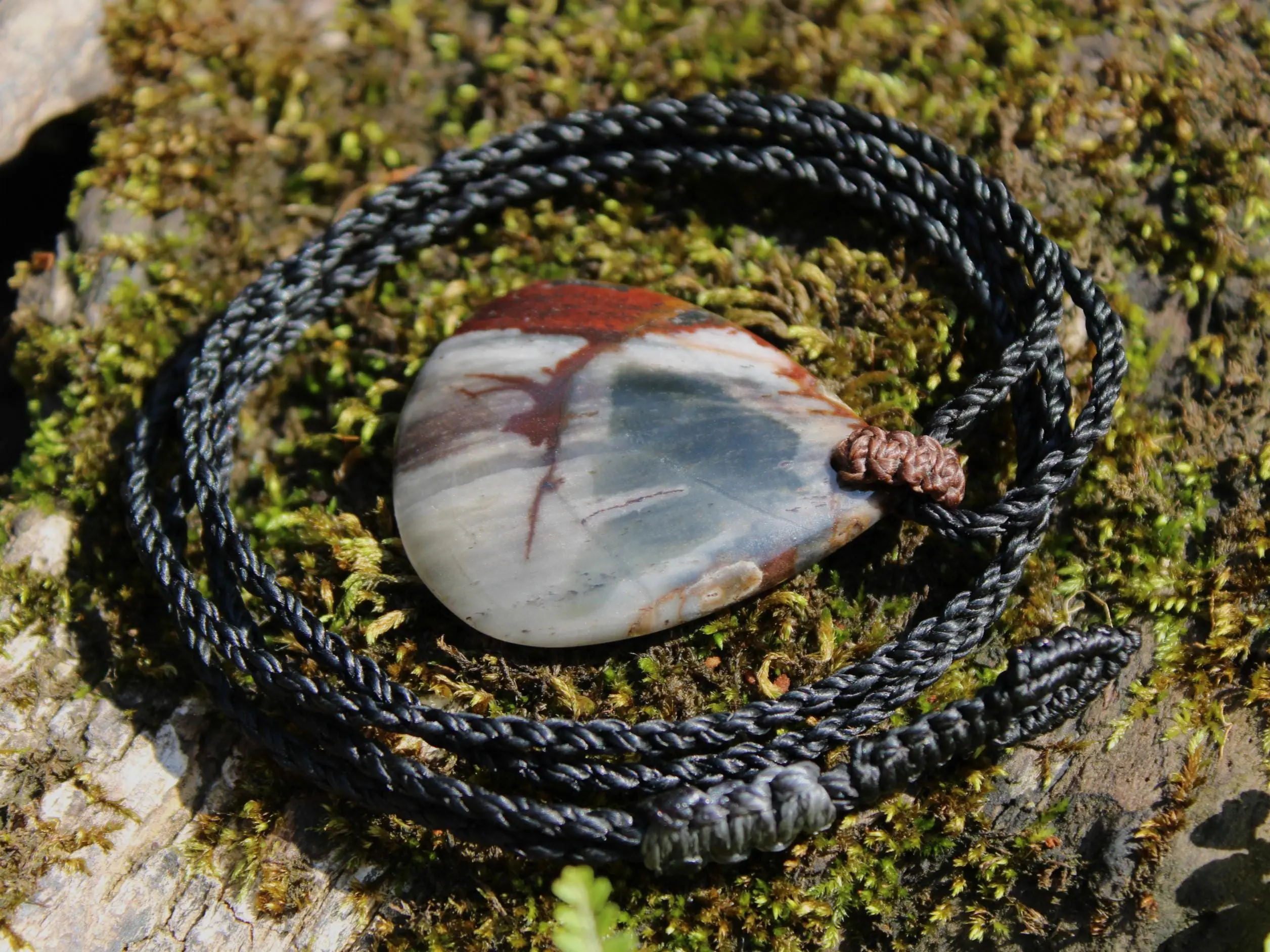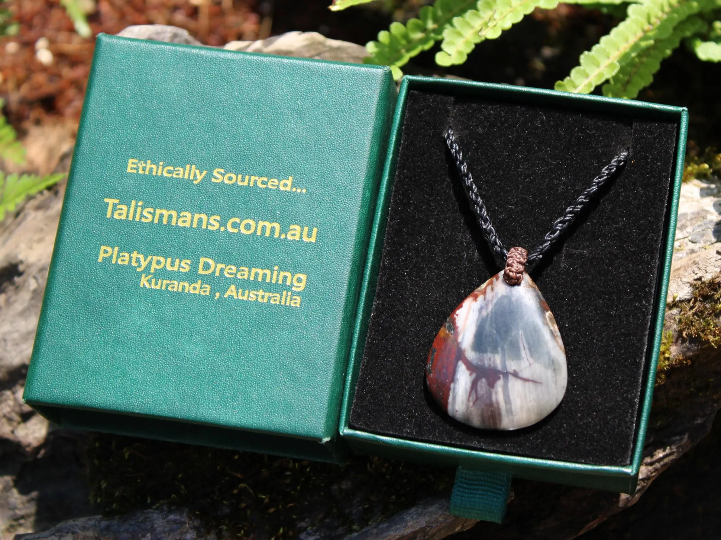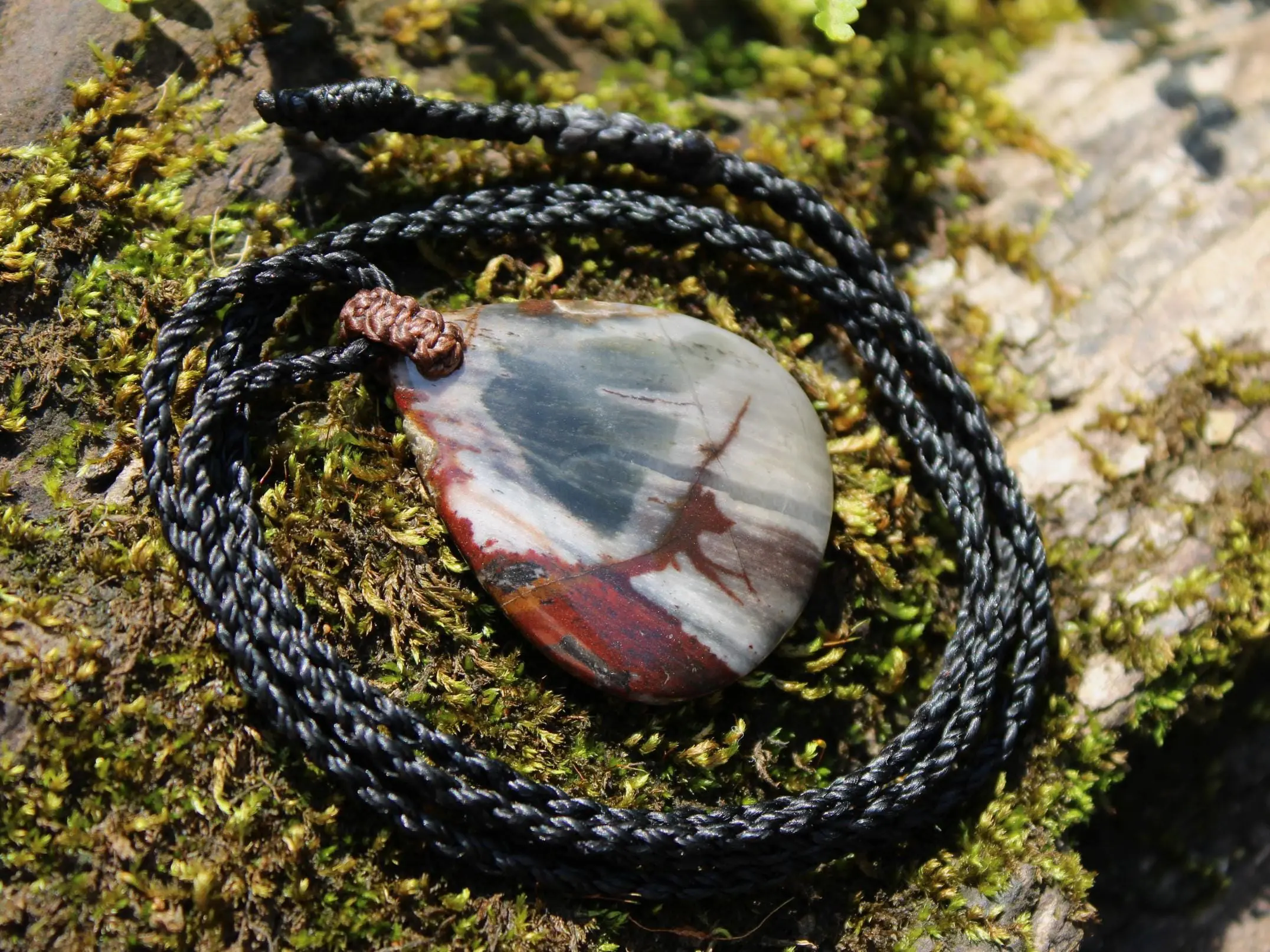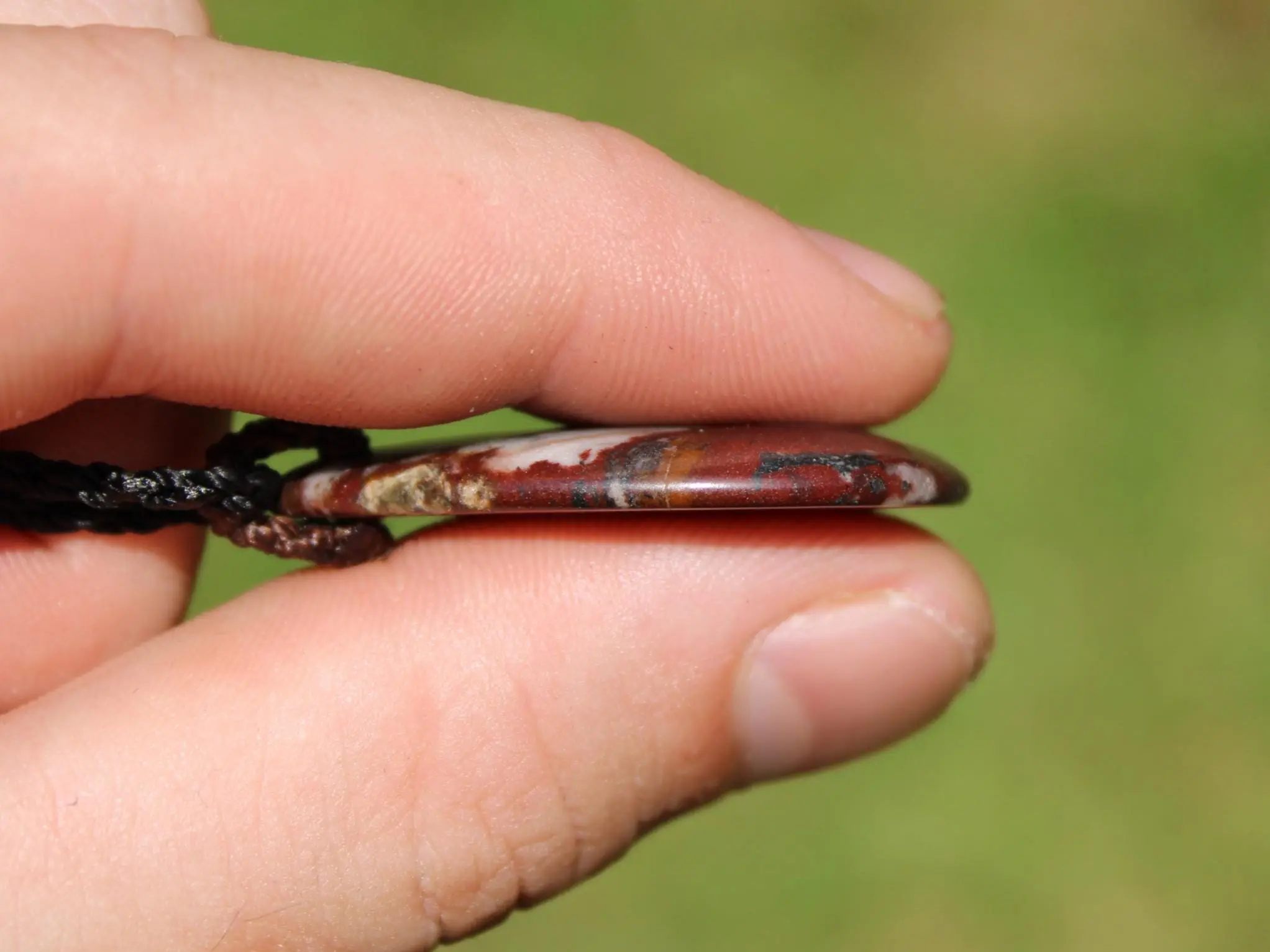 Australian Blood Stone Jasper Pendant, Indigenous Jasper Earthy Necklace,Tropical Cord,Brown Unique Ribbon Stone, Aboriginal Outback Jewelry