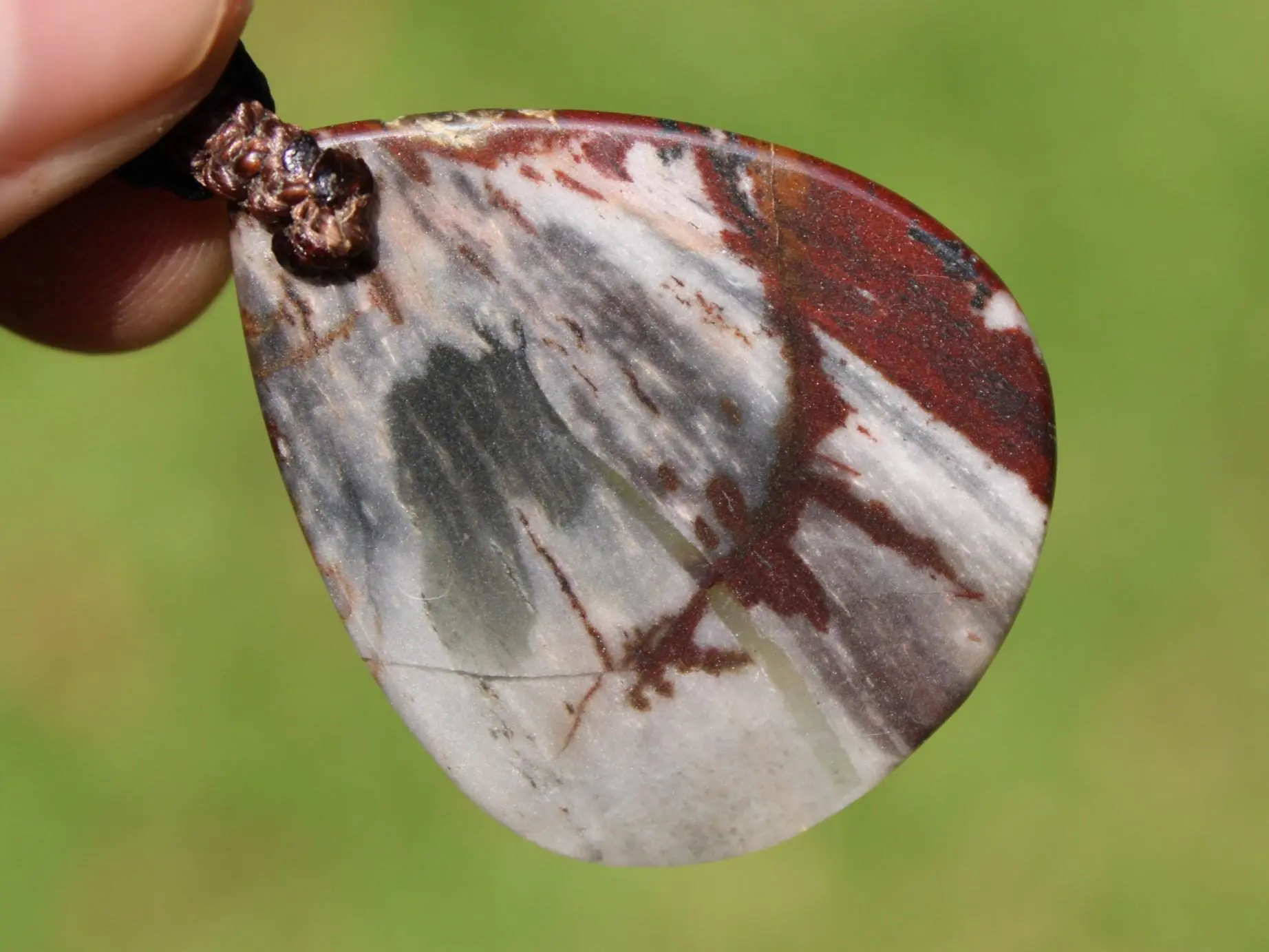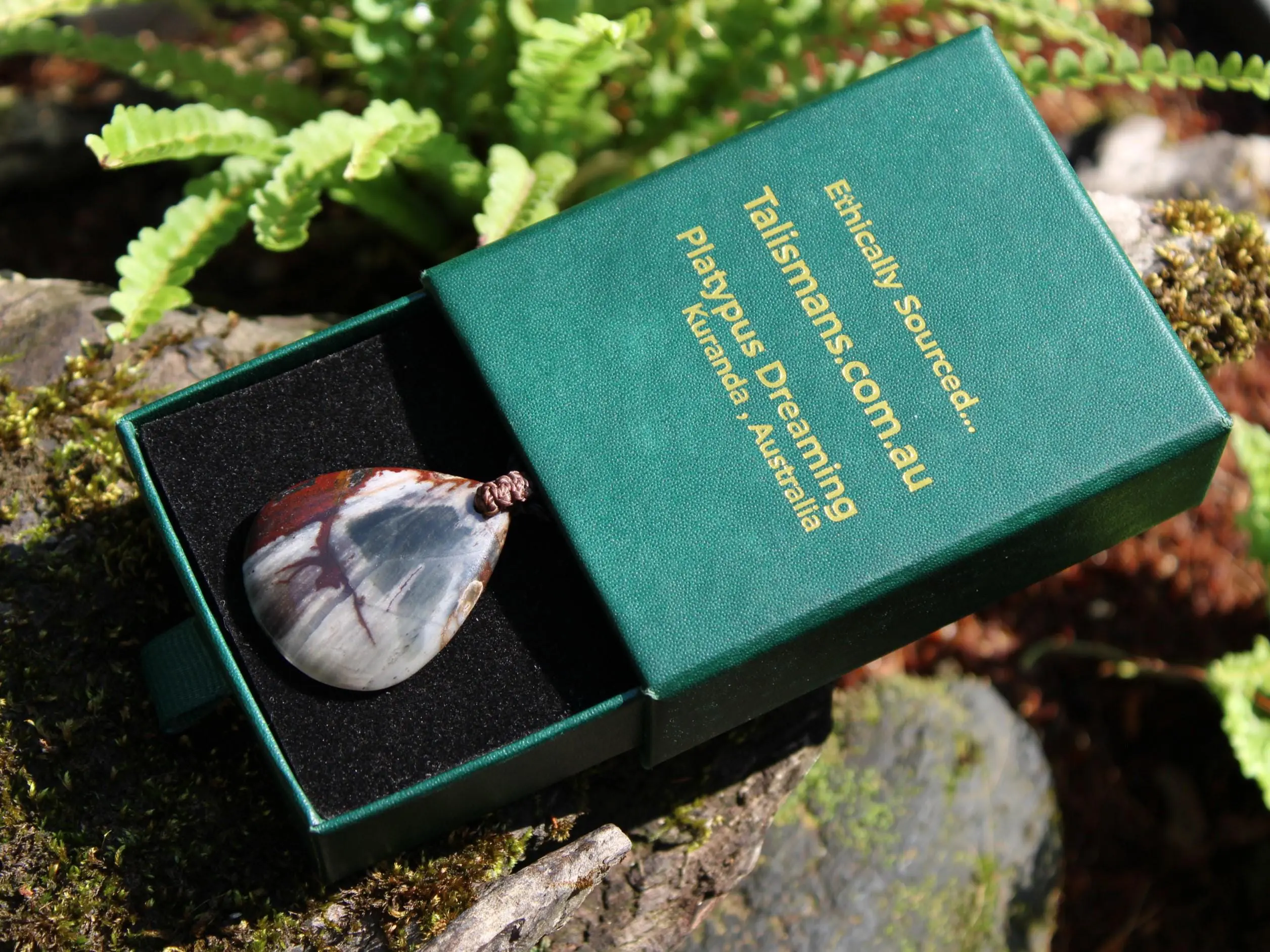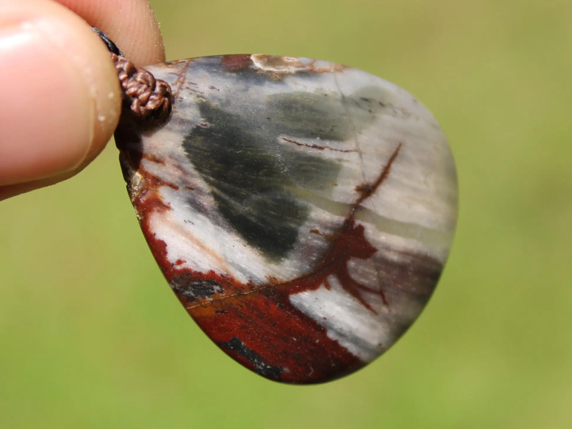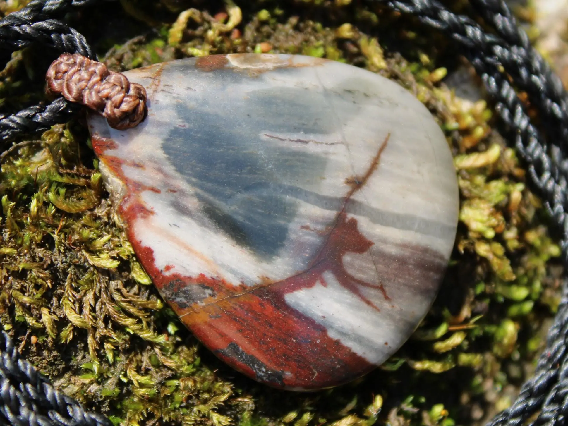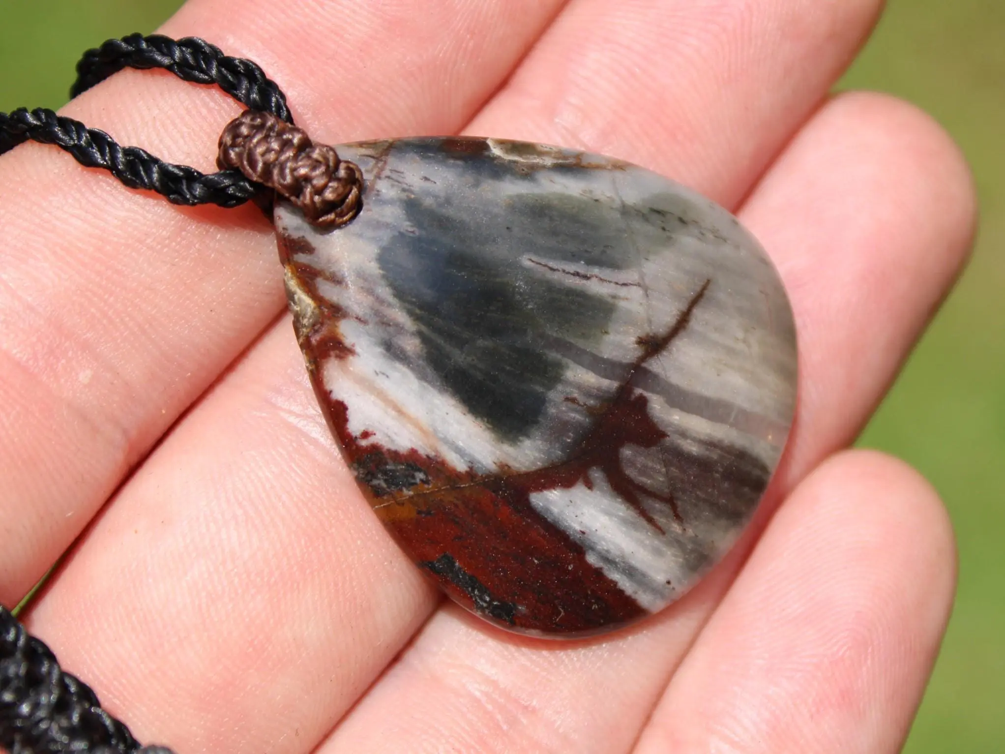 Australian Blood Stone Jasper Pendant, Indigenous Jasper Earthy Necklace,Tropical Cord,Brown Unique Ribbon Stone, Aboriginal Outback Jewelry