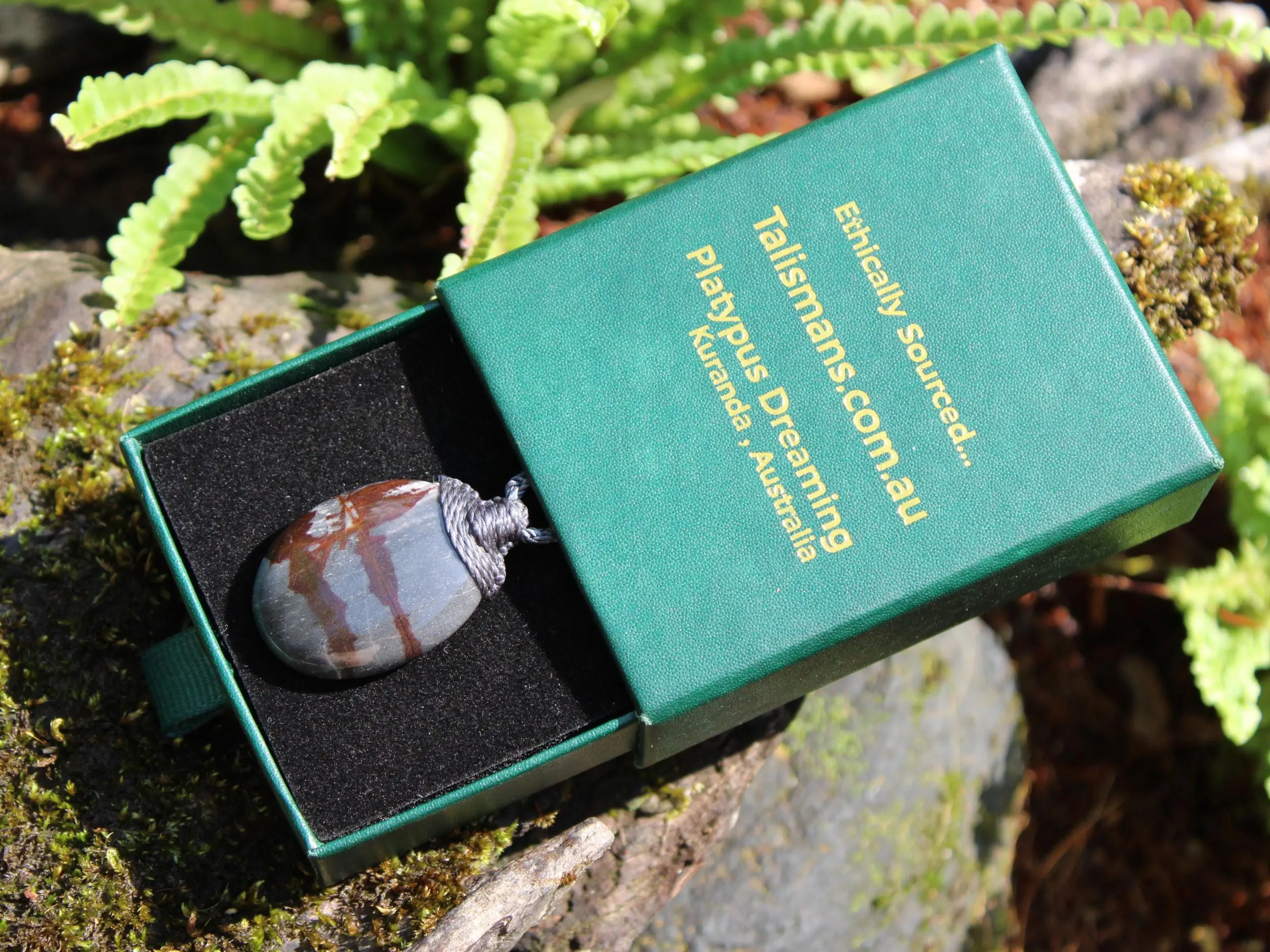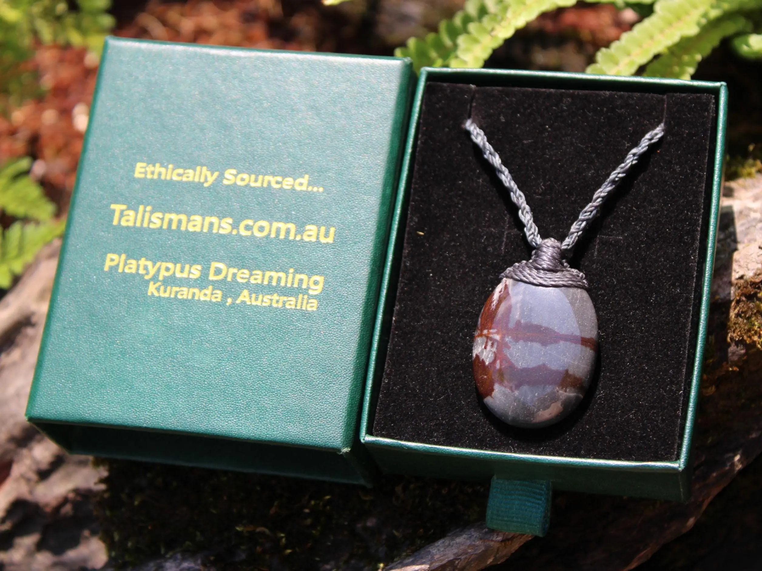 This powerful Australian Outback Jasper crystal talisman has been handcrafted by us here at Platypus Dreaming in the luscious rainforests of Far North Queensland, Australia. This incredible stone is completely natural and has not been altered in any way – those incredible patterns emerge at the lapidary wheel from the raw earth. Outback Jasper is found in the Pilbara region of Western Australia – one of the most isolated and wild regions on Earth.