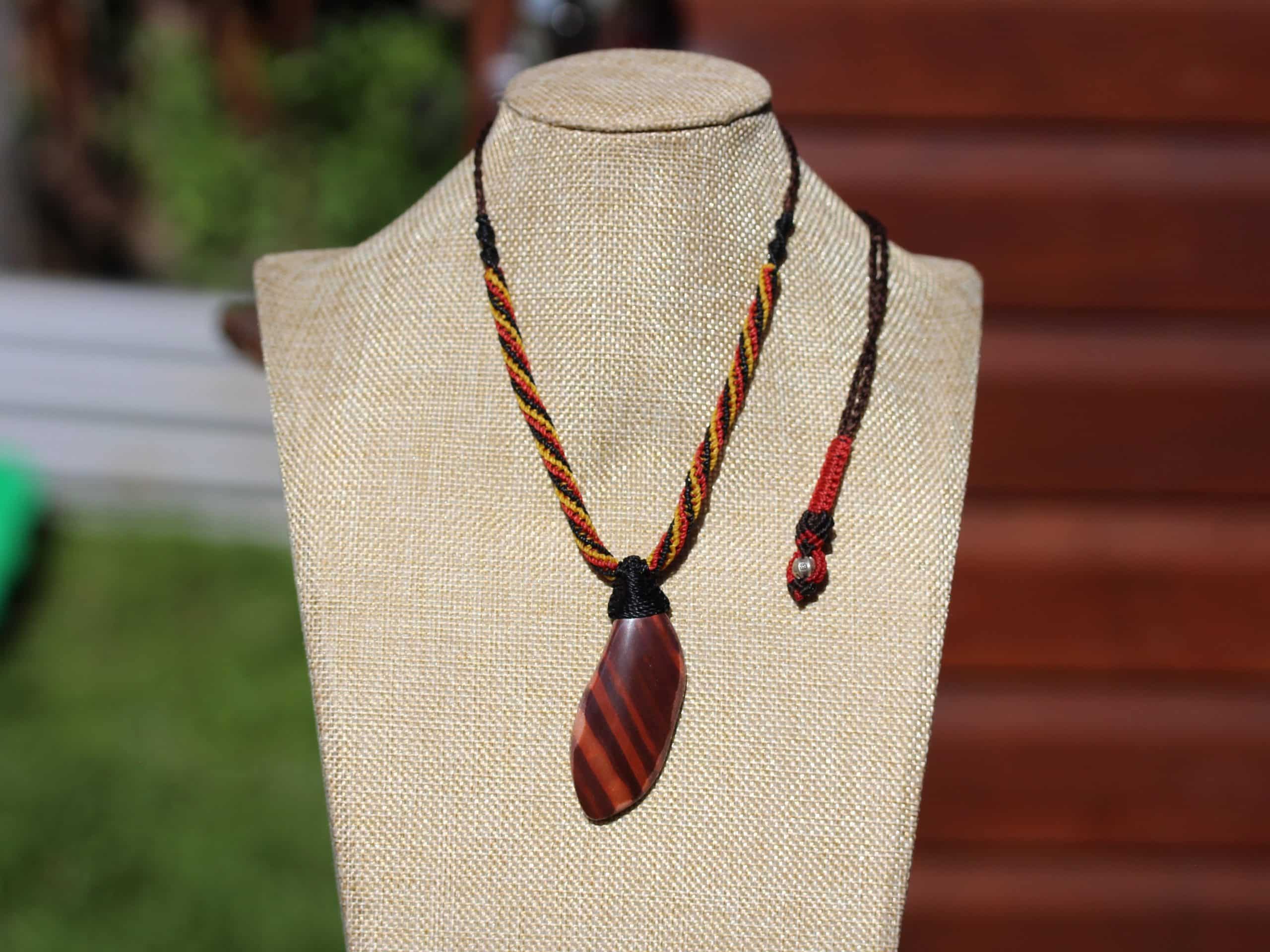 Australian Pilbara Jasper Pendant, Australian made tribal wear macrame cord summer beach jewelry, surfer necklace, indiginious talisman