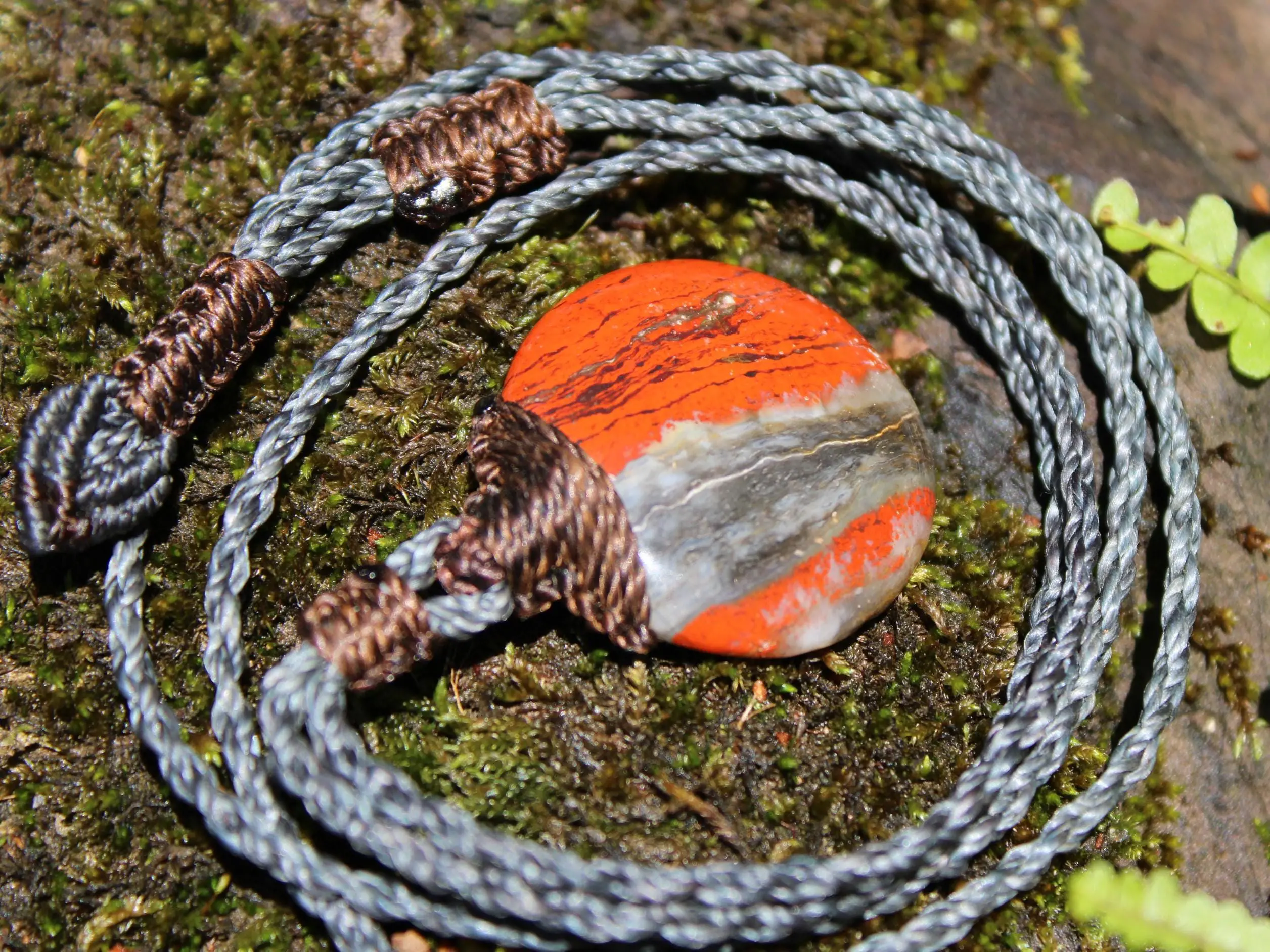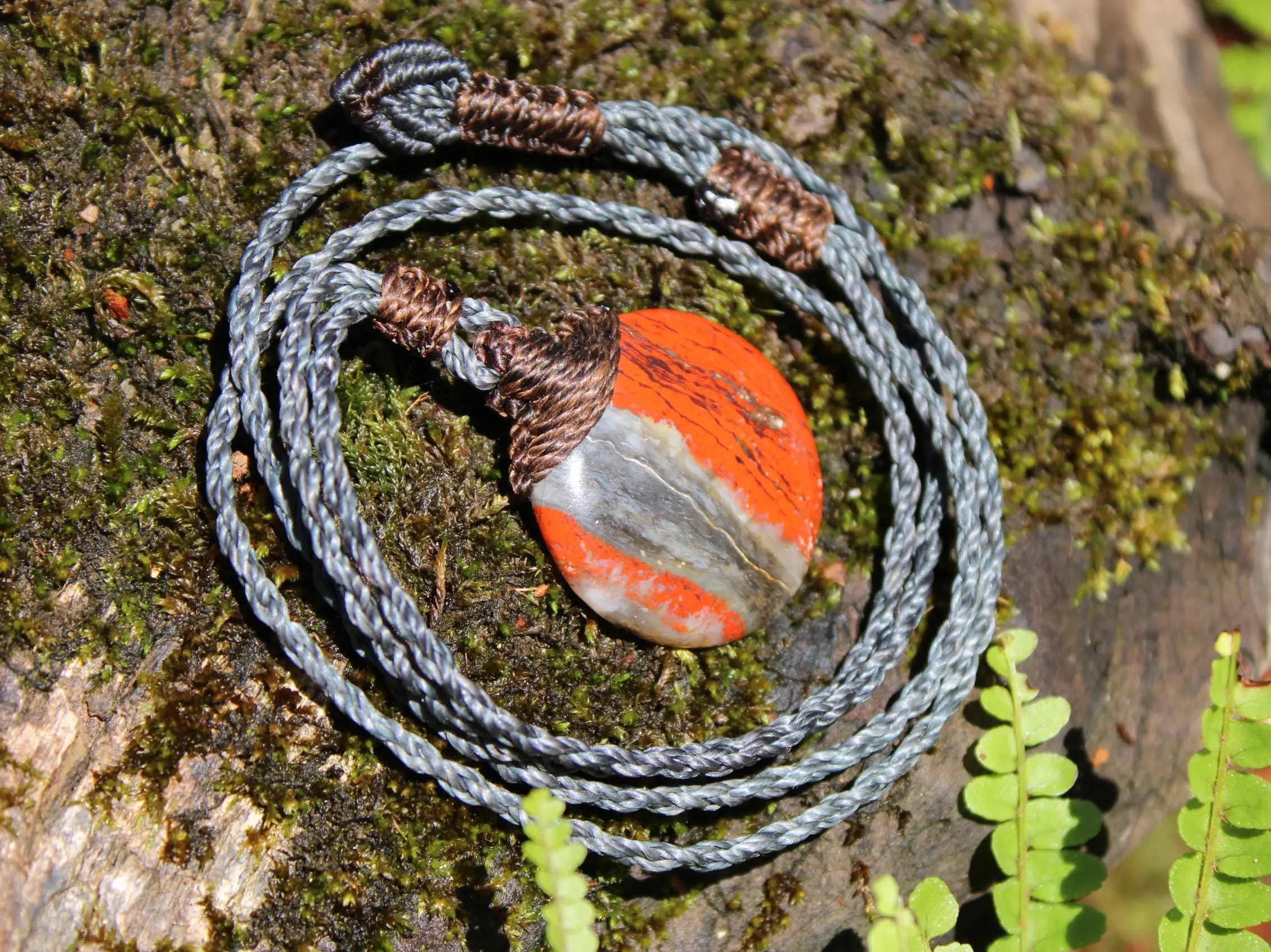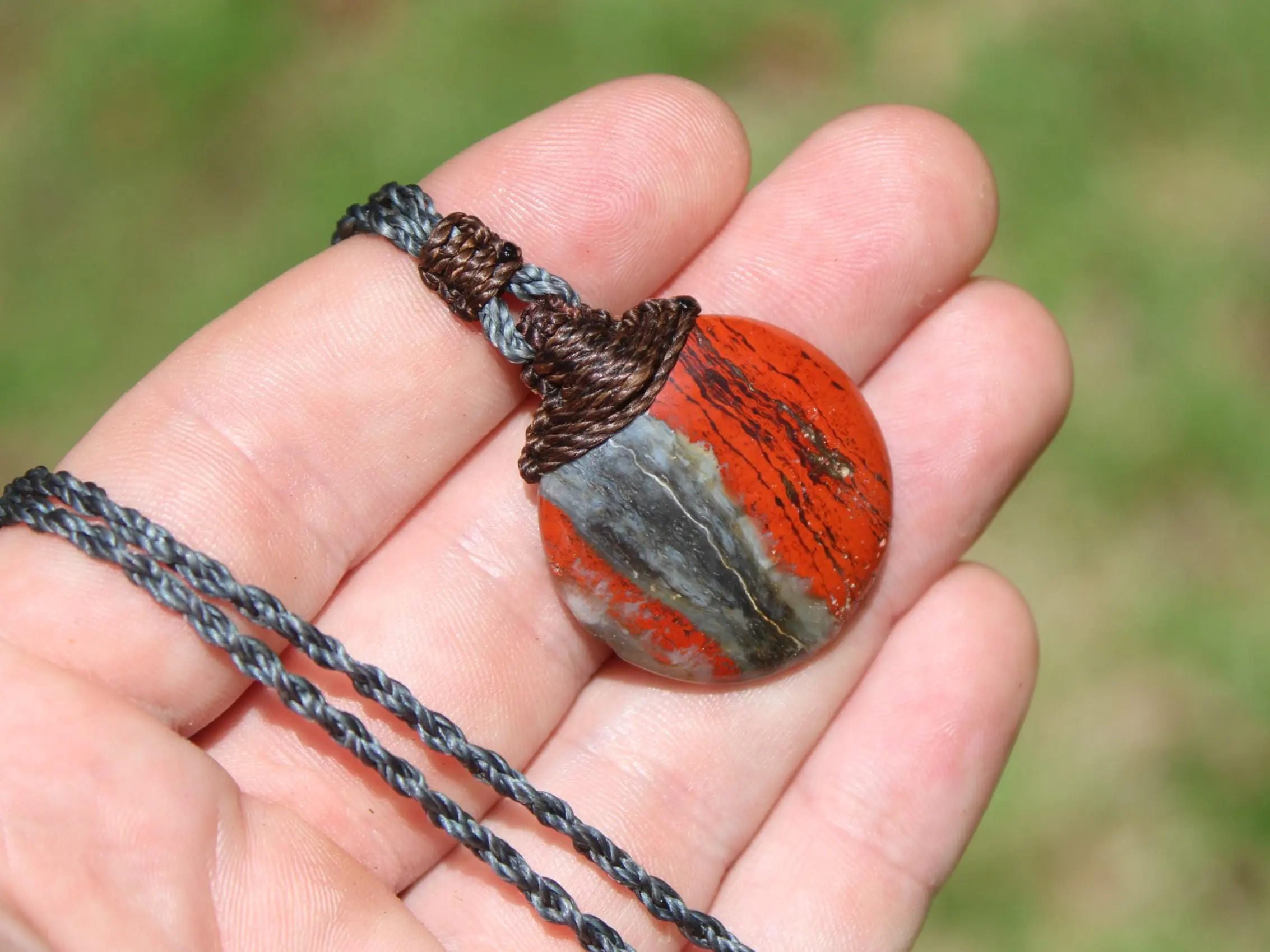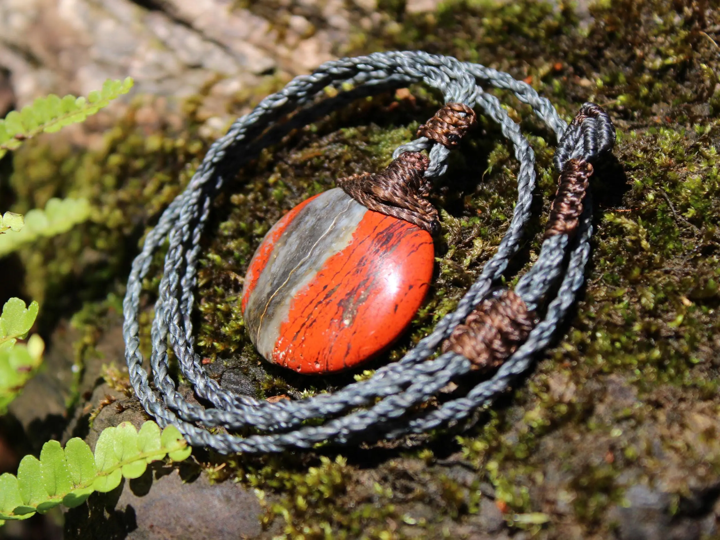 Australian Mookaite , Australian creek and rainforest Jasper, unique tribal necklace talisman, Australian made Macrame Cord, Summer jewelry