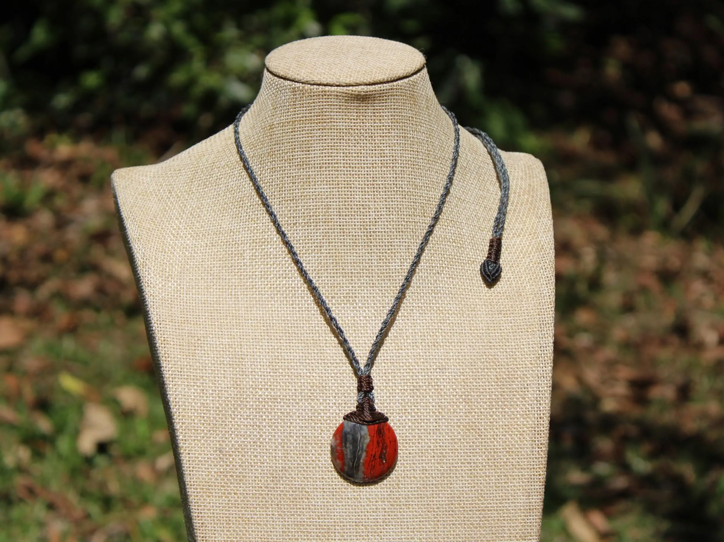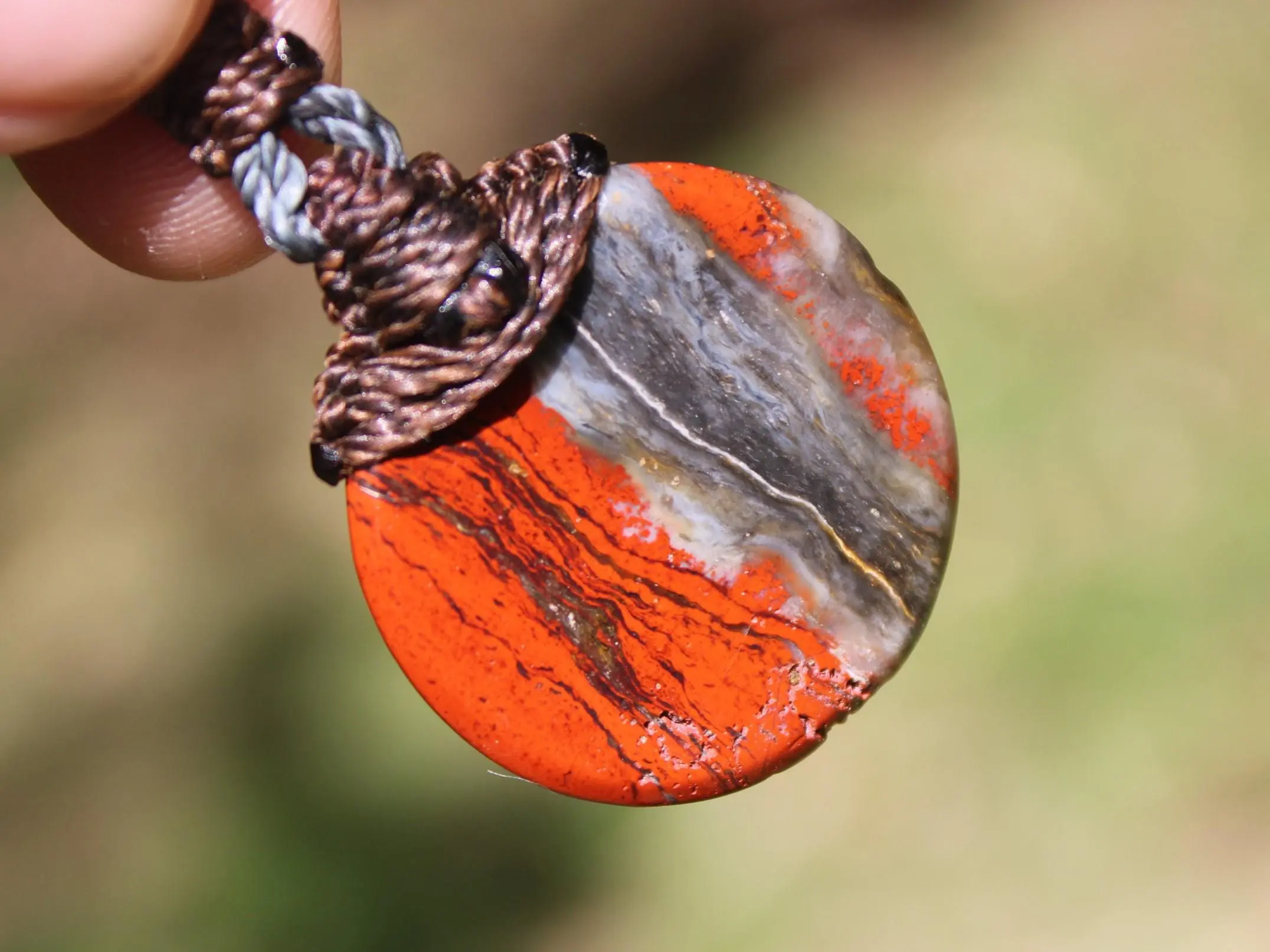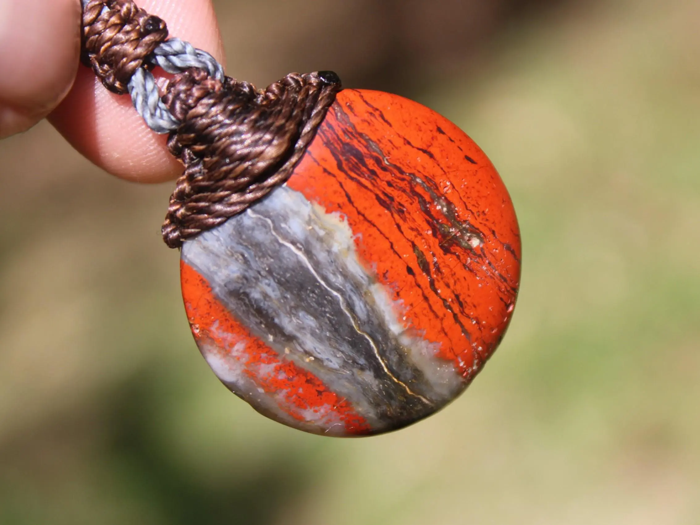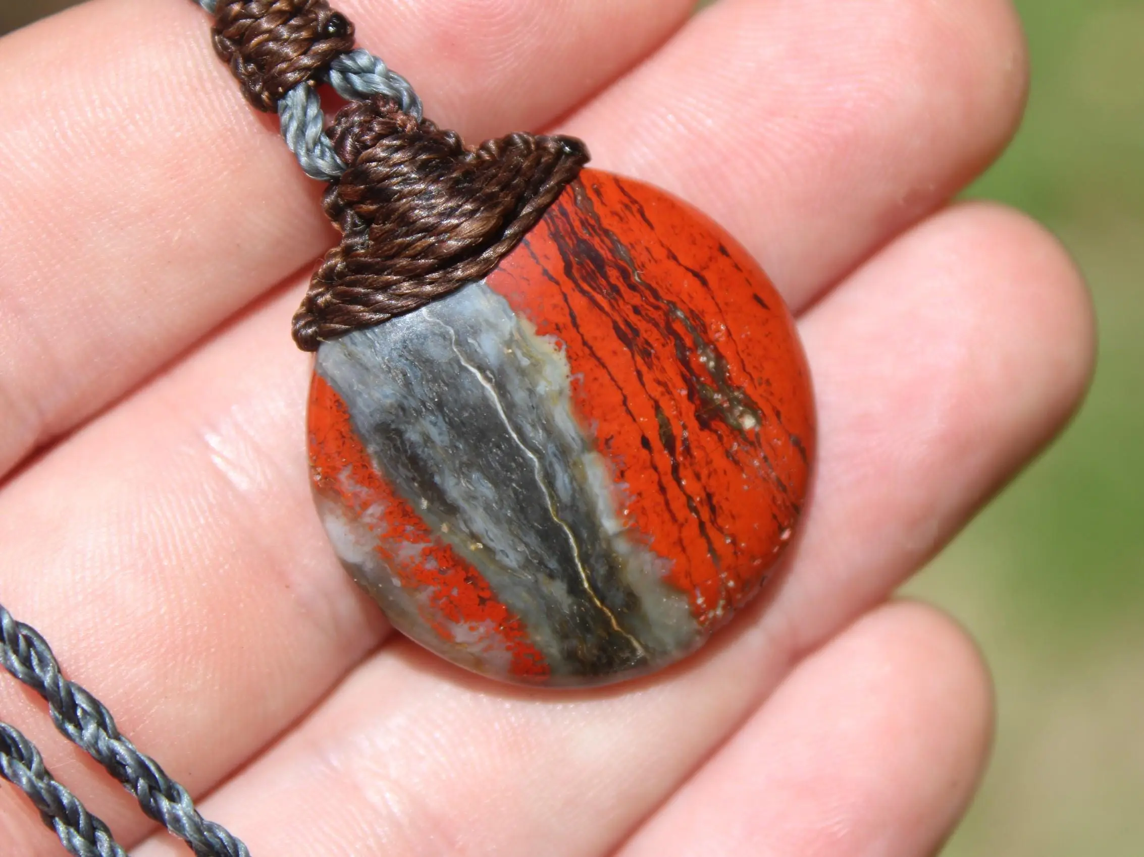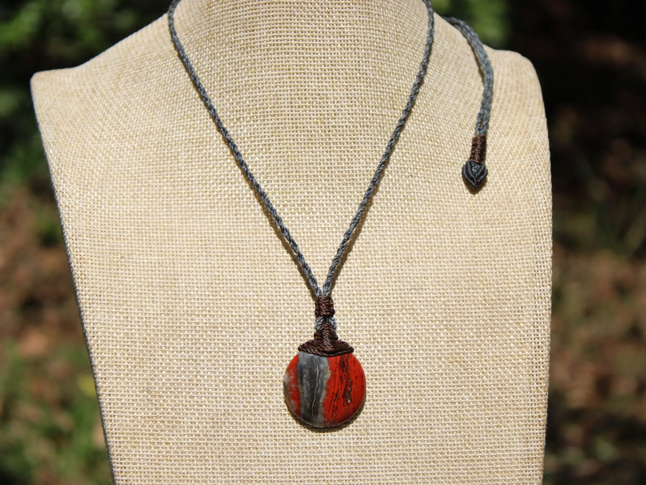 Australian Mookaite , Australian creek and rainforest Jasper, unique tribal necklace talisman, Australian made Macrame Cord, Summer jewelry