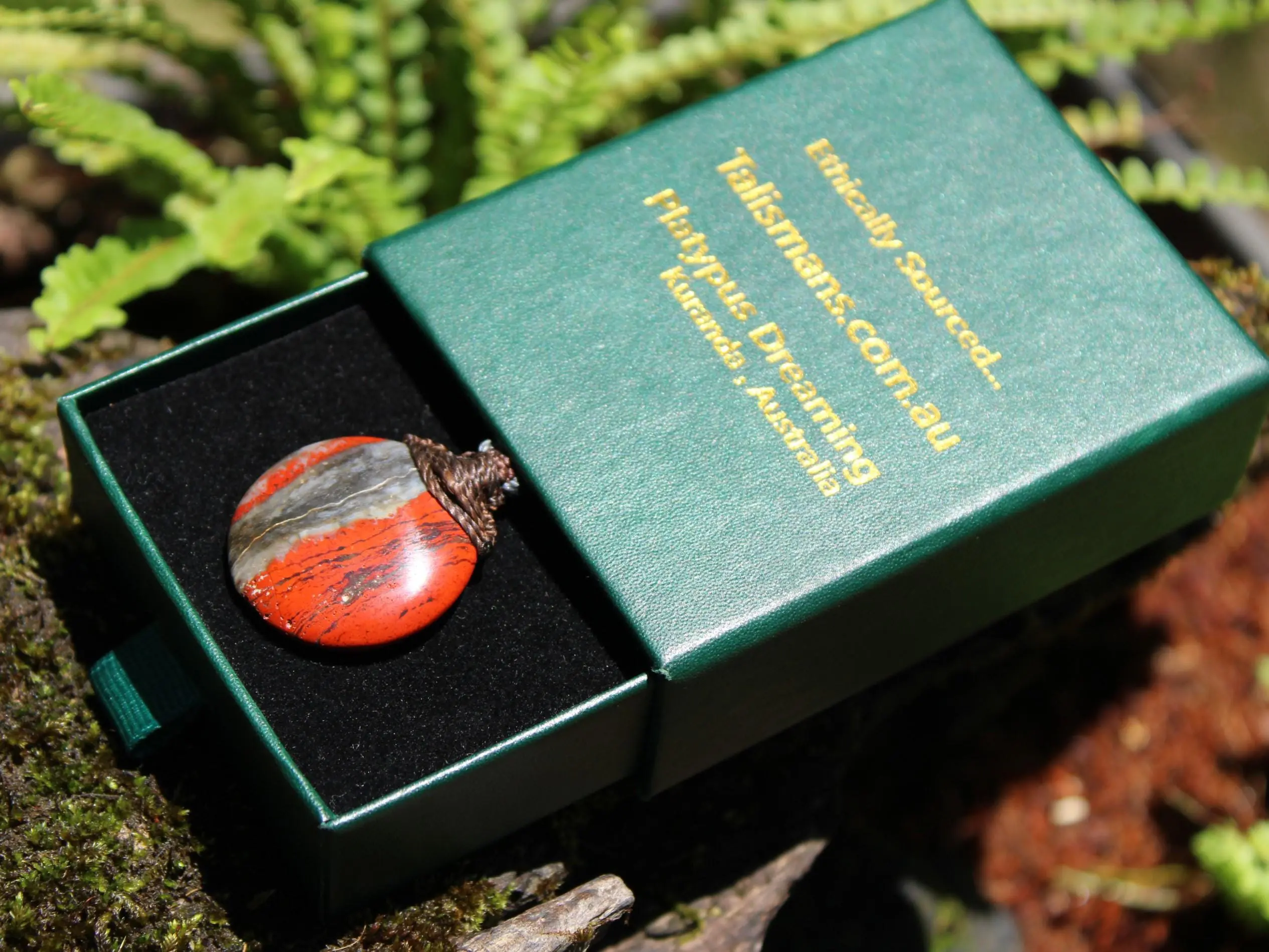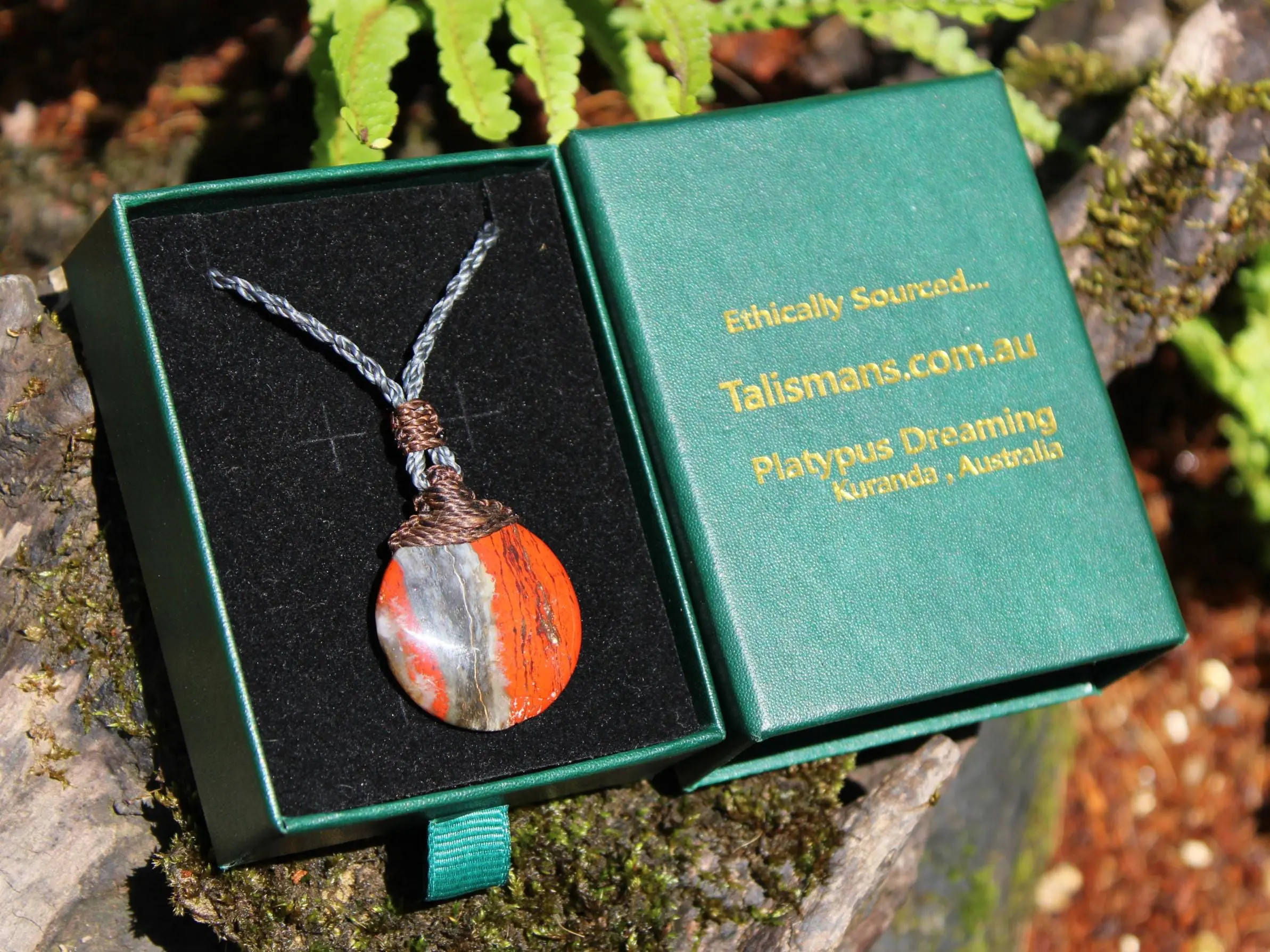 This protective AAA+ quality Snakeskin Jasper talisman has been handcrafted by us here at Platypus Dreaming, deep in the ancient rainforests of Far North Queensland, Australia.