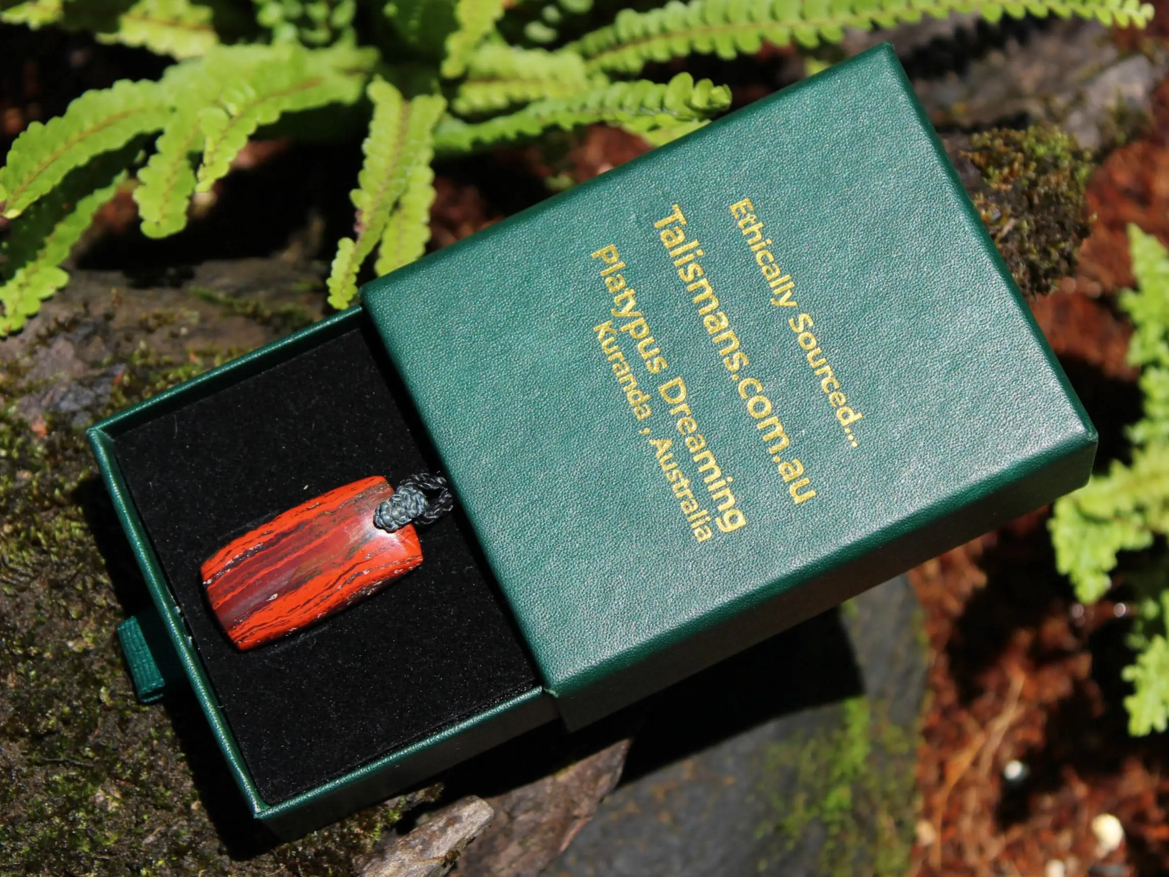 This protective AAA+ quality Snakeskin Jasper talisman has been handcrafted by us here at Platypus Dreaming, deep in the ancient rainforests of Far North Queensland, Australia.