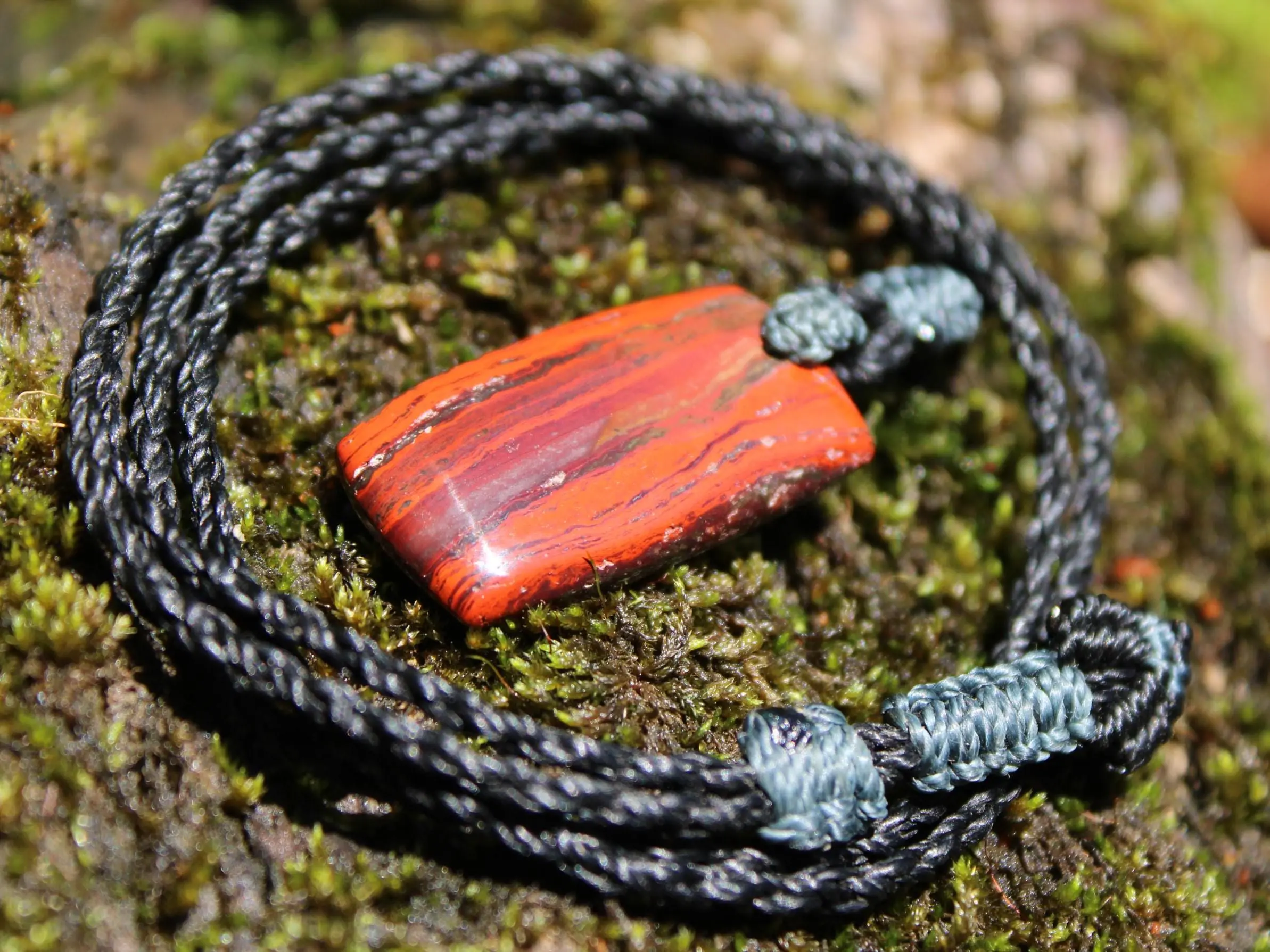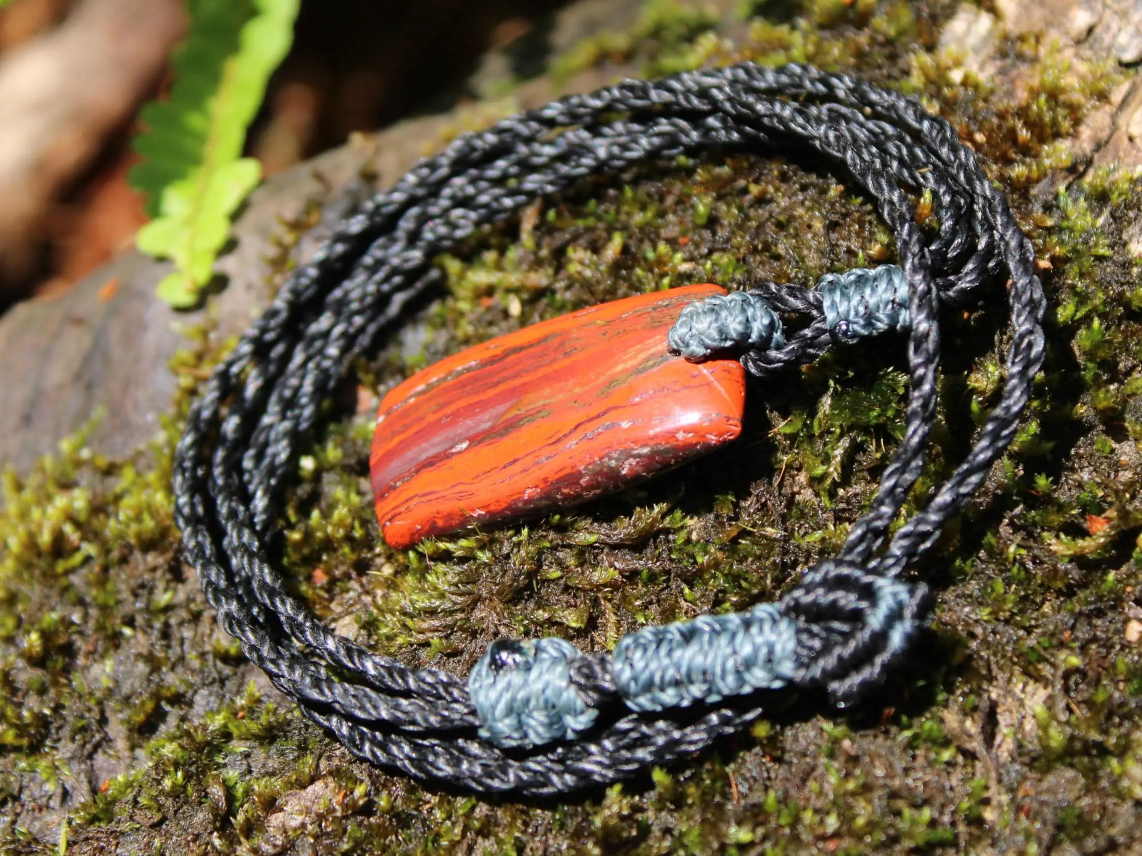 Australian Mookaite , Australian creek and rainforest Jasper, unique tribal necklace talisman, Australian made Macrame Cord, Summer jewelry