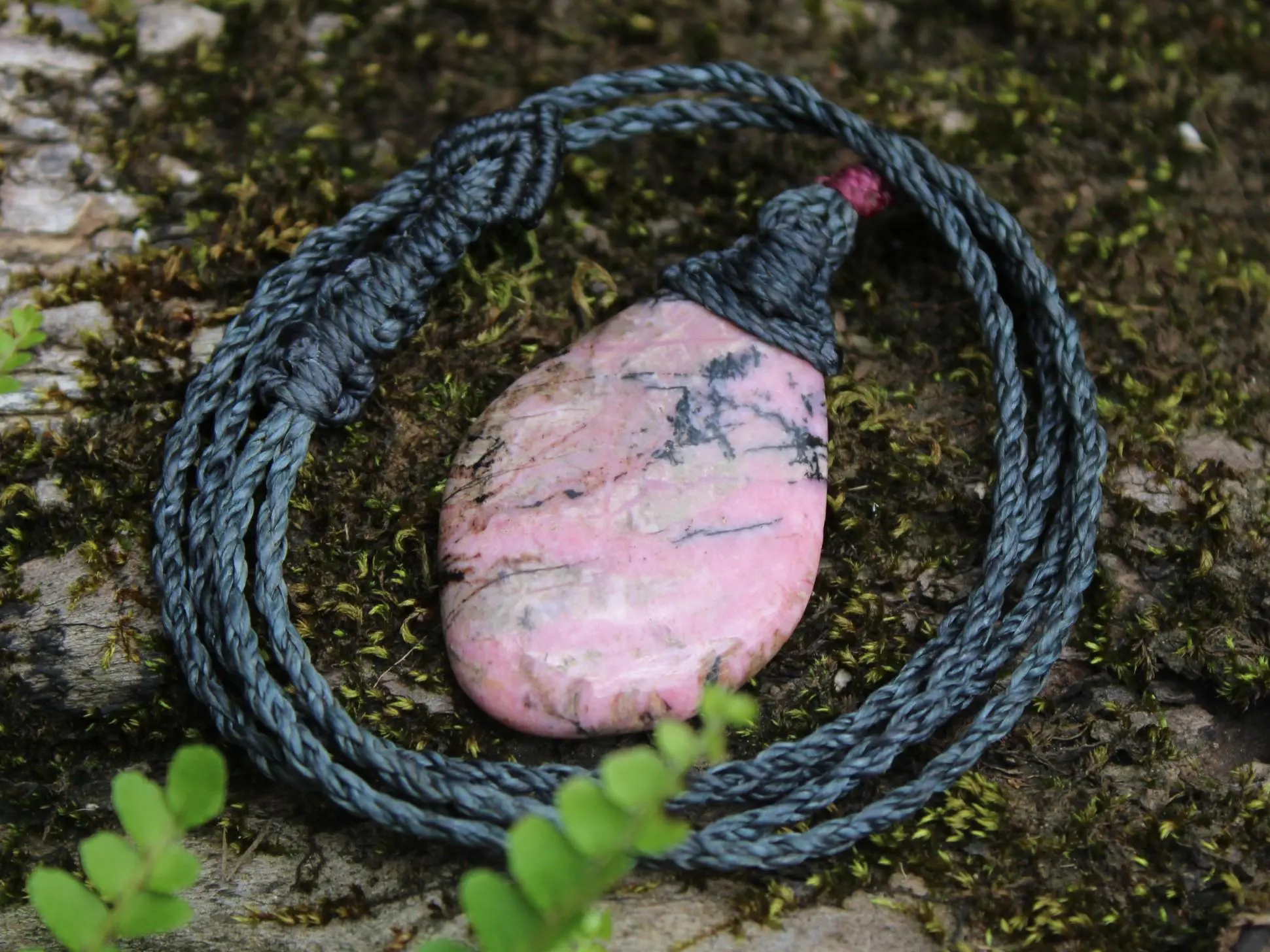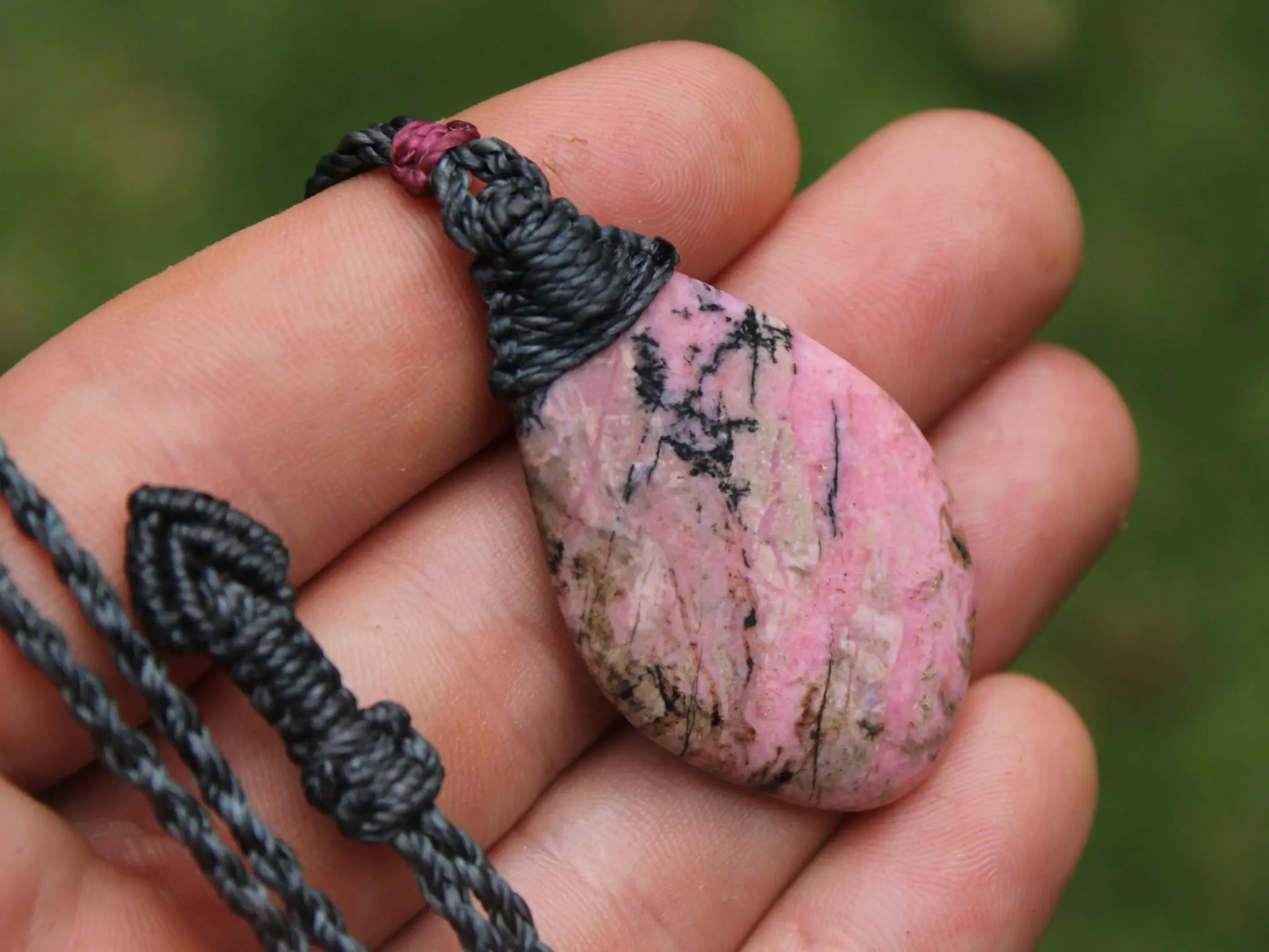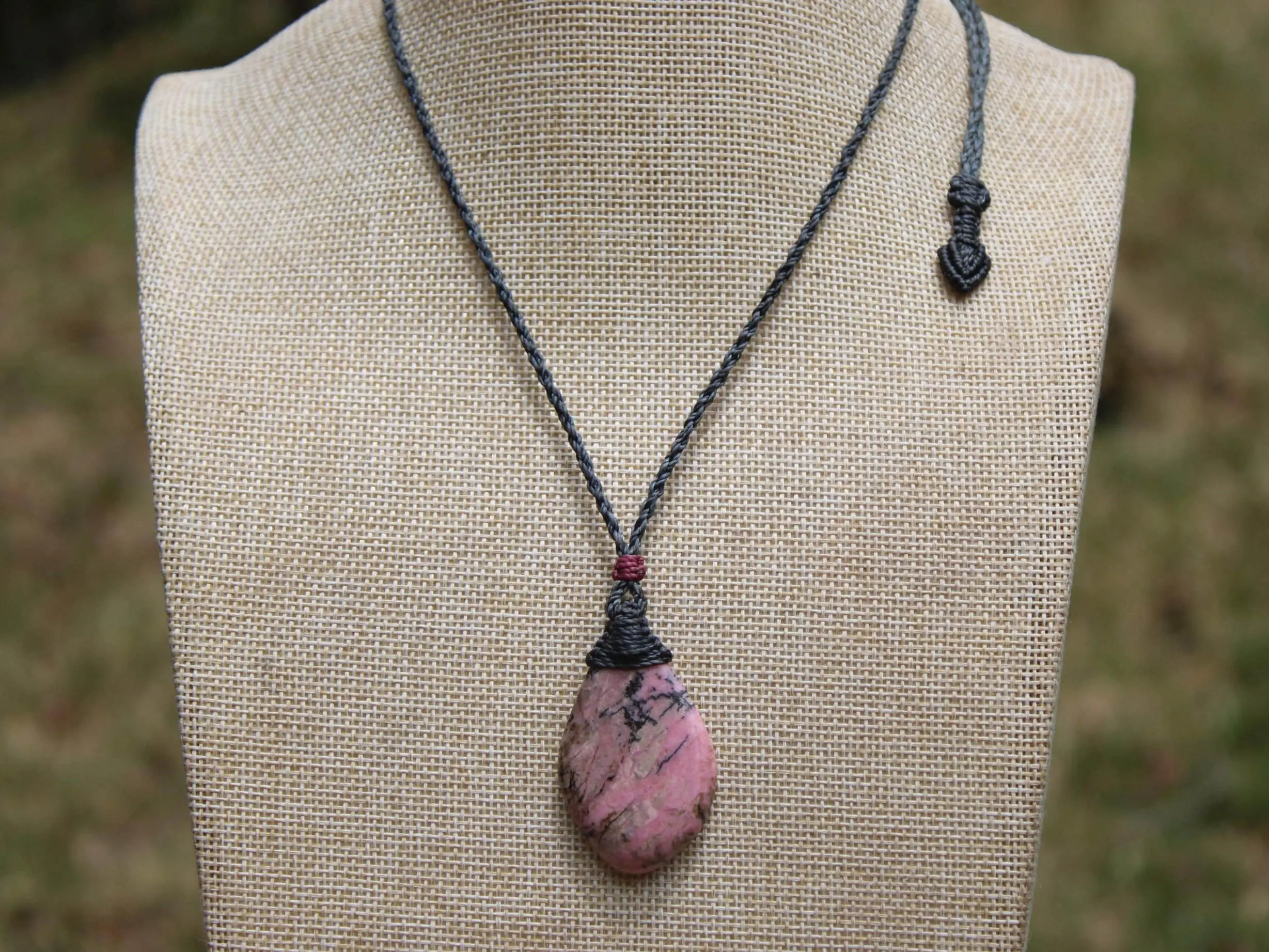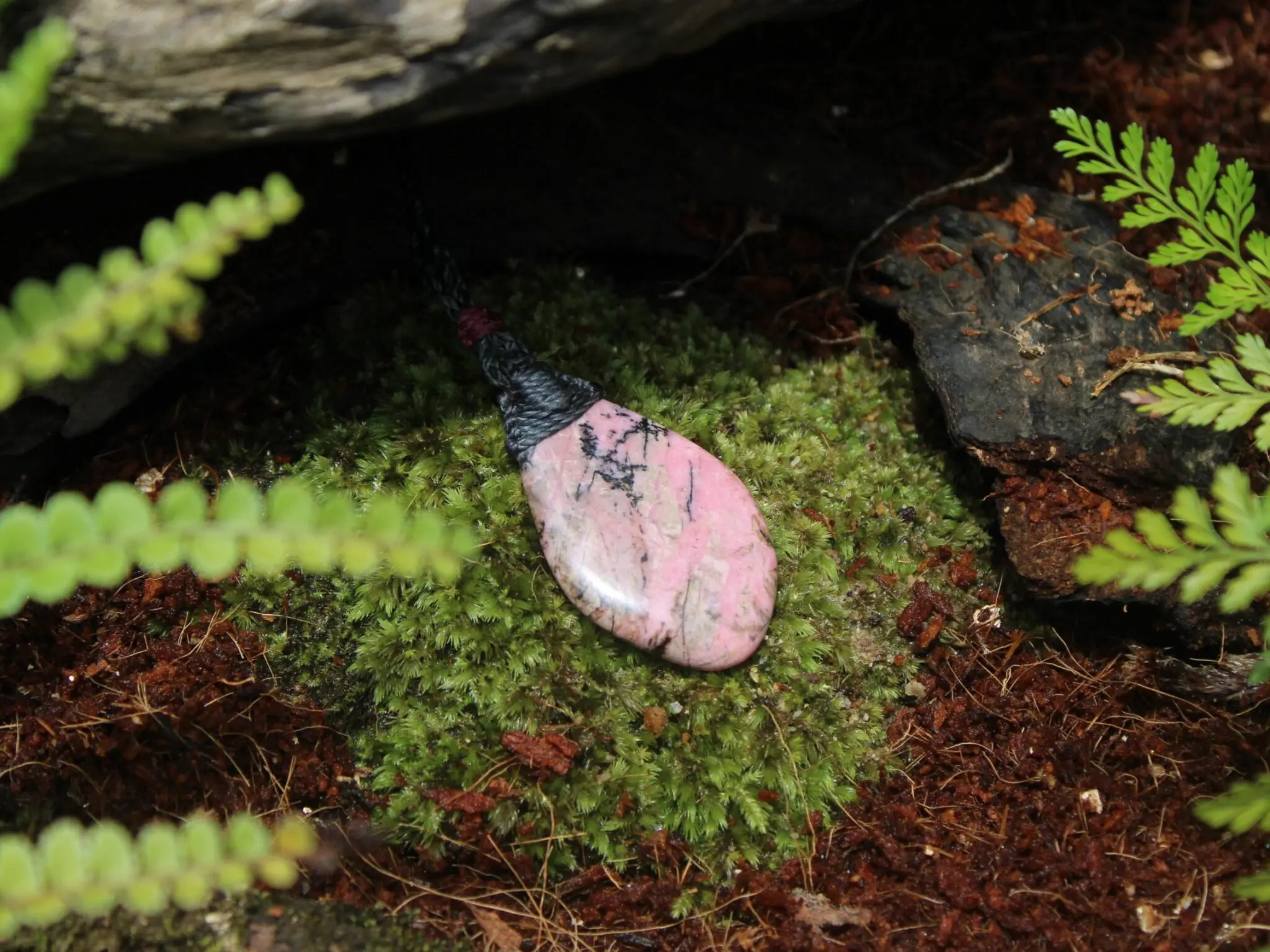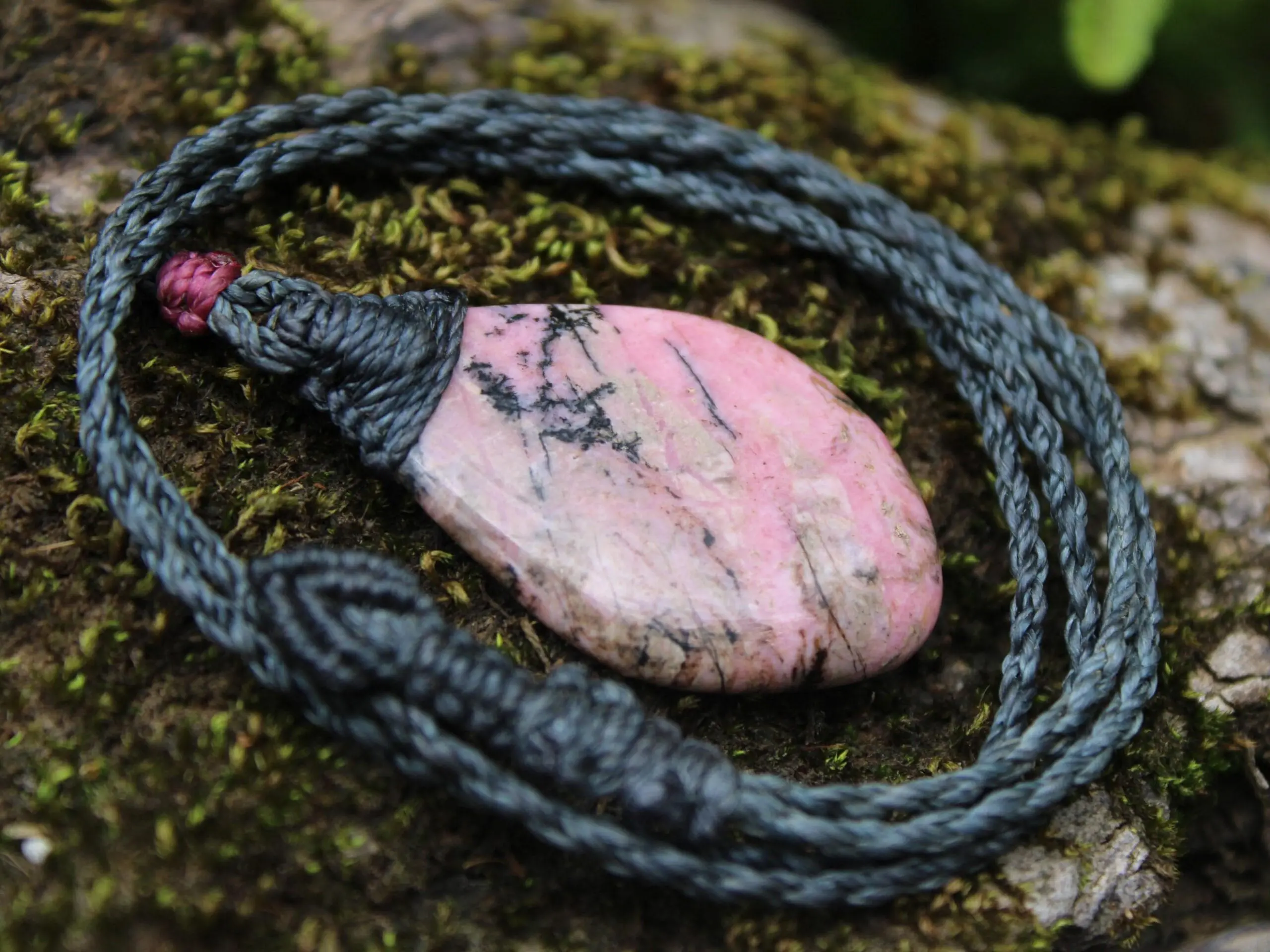 Australian Rhodonite Necklace • Heart Chakra Crystal Talisman • Handmade Vegan Jewelry from Kuranda, QLD