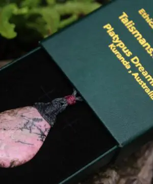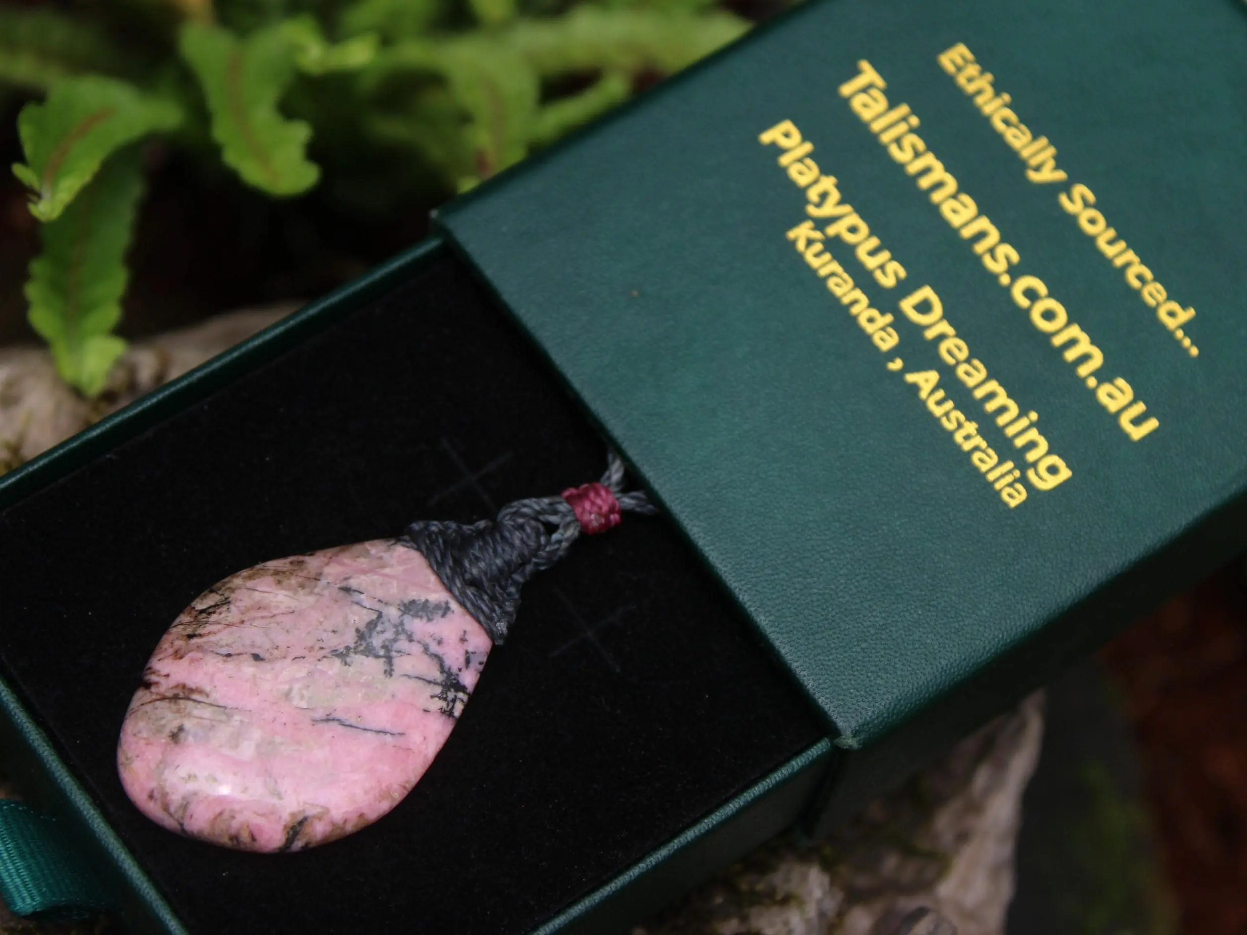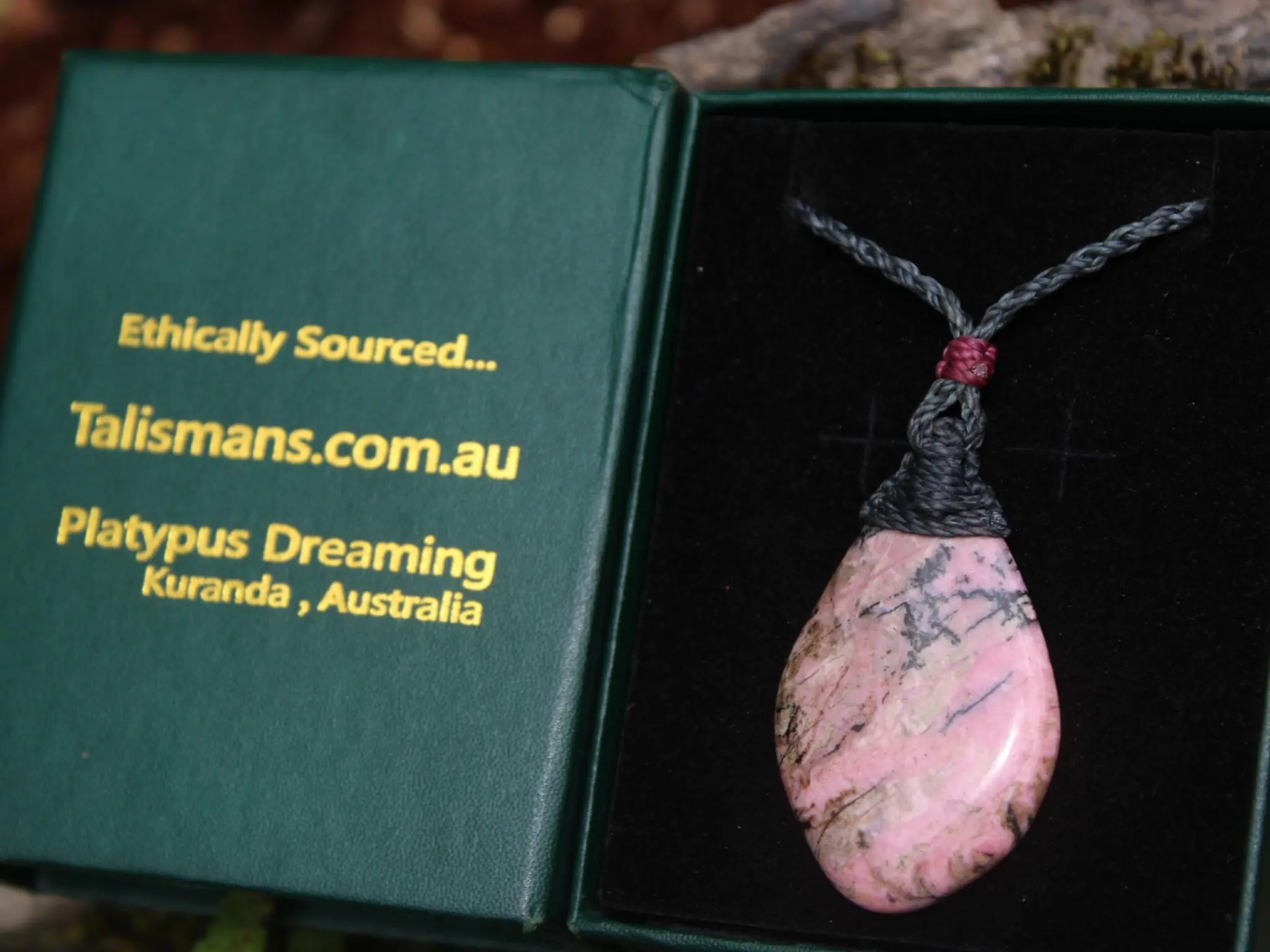 This enchanting Rhodonite crystal talisman has been lovingly handcrafted by us here at Platypus Dreaming, in the lush rainforests of Kuranda, Far North Queensland, Australia.