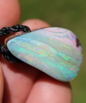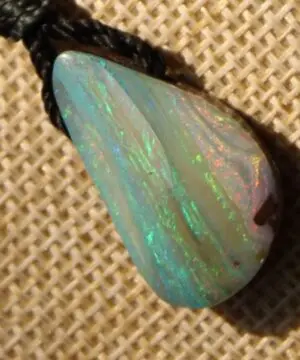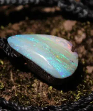 Boulder Opal comes from a particular area in Queensland. They are famous for their deep strong ironstone with stunning patterns and inclusions. It is a type of boulder opal and is found as part of host rock, called Boulder ironstone. The opal is distributed throughout the rock. This is what makes Kaya’s job of cutting the opal such a fine art—the opal is “slivered” throughout the stone and ten seconds too long at the wheel can destroy the colour completely! The finished result is boulder ironstone with the precious opal inclusions cut as one piece. It gives a dazzling appearance similar to what you see when you look at the night sky, except that the ‘stars’ in this case are flecks of glorious and intense opal colour.