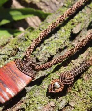 CORAL FOSSIL Necklace, Australian made Elven Macrame Thin Cord Healing Crystal Jewelry, Red coral fossil Pendant, march birthstone