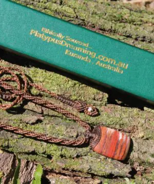 This protective AAA+ quality Australian Snakeskin Jasper crystal talisman has been handcrafted by us here at Platypus Dreaming in the luscious rainforests of Far North Queensland, Australia. It has been made by artisans with good intention and mission to heal Mother Earth. The stone is from Pilbara region, Western Australia – one of the most remote locations on Earth. This talisman features a 1000 pure silver tribal bead that has been hand-cut and chiseled using traditional techniques.
