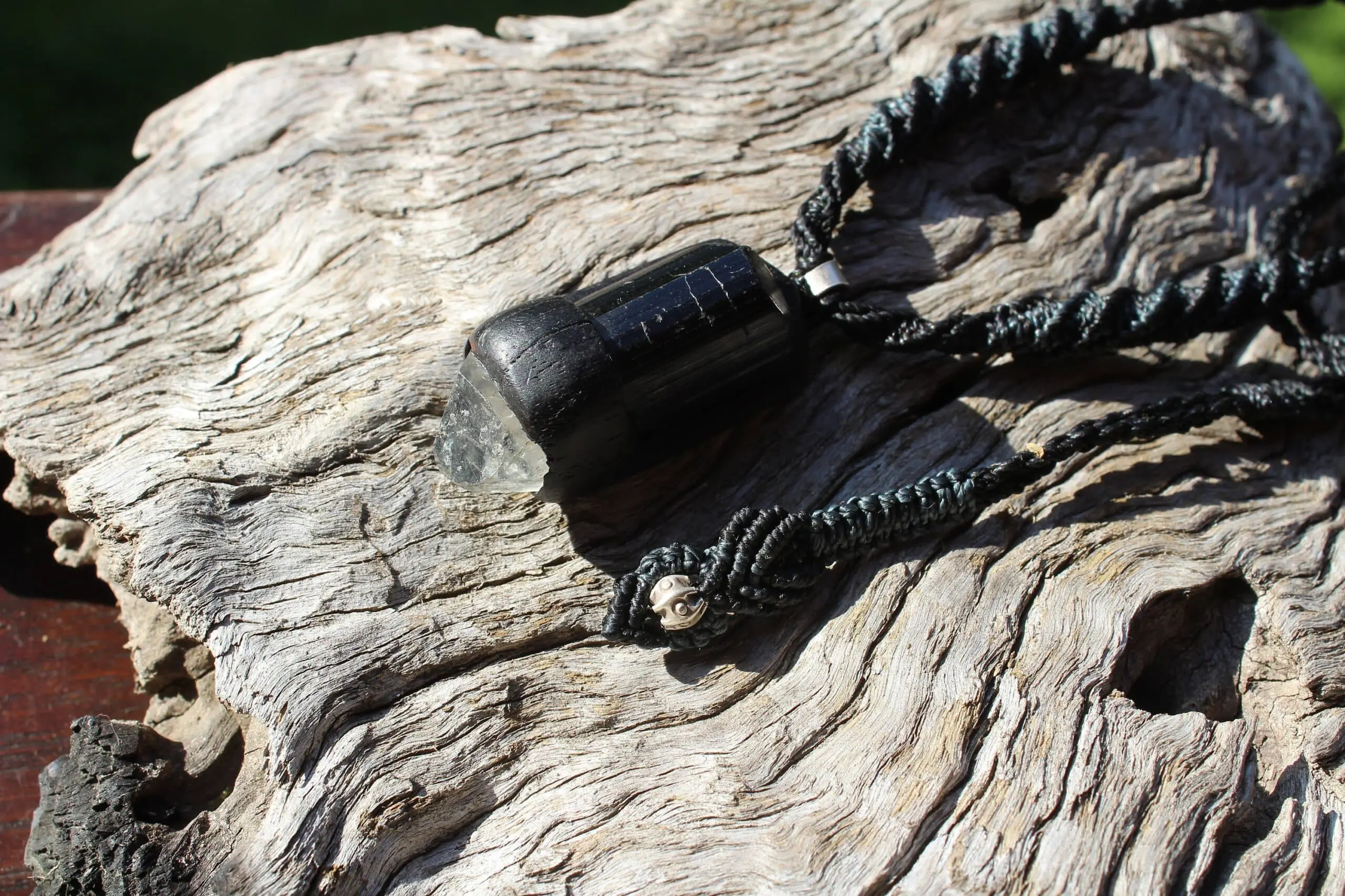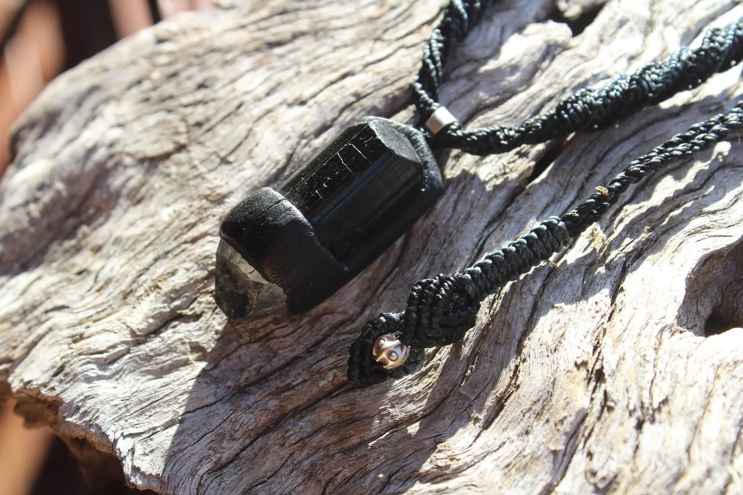 Australian Red Cesar Wood, Black Tourmaline with Pyrite! with 1000 Hand Made Tribal Pure silver ending.. AUSTRALIA.HAND CRAFTED Shibari UNISEX NECKLACE🌱ONE OF A KIND🌱 FREE STANDARD SHIPPING.