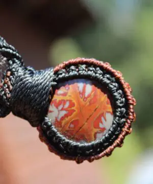 This powerful Noreena Jasper crystal talisman has been handcrafted by us here at Platypus Dreaming in the luscious rainforests of Far North Queensland, Australia. It took approx. 8 hours to create this intricate piece! This noreena jasper is some of the highest quality we have been able to source, and comes from the Pilbara region of Western Australia, in one of the most isolated places on Earth. This jewel boulder tends to occur in raw pieces that show the most magnificent geometric patterns. Features a 1000 pure silver tribal bead that has been hand-cut and chiseled using traditional techniques.
