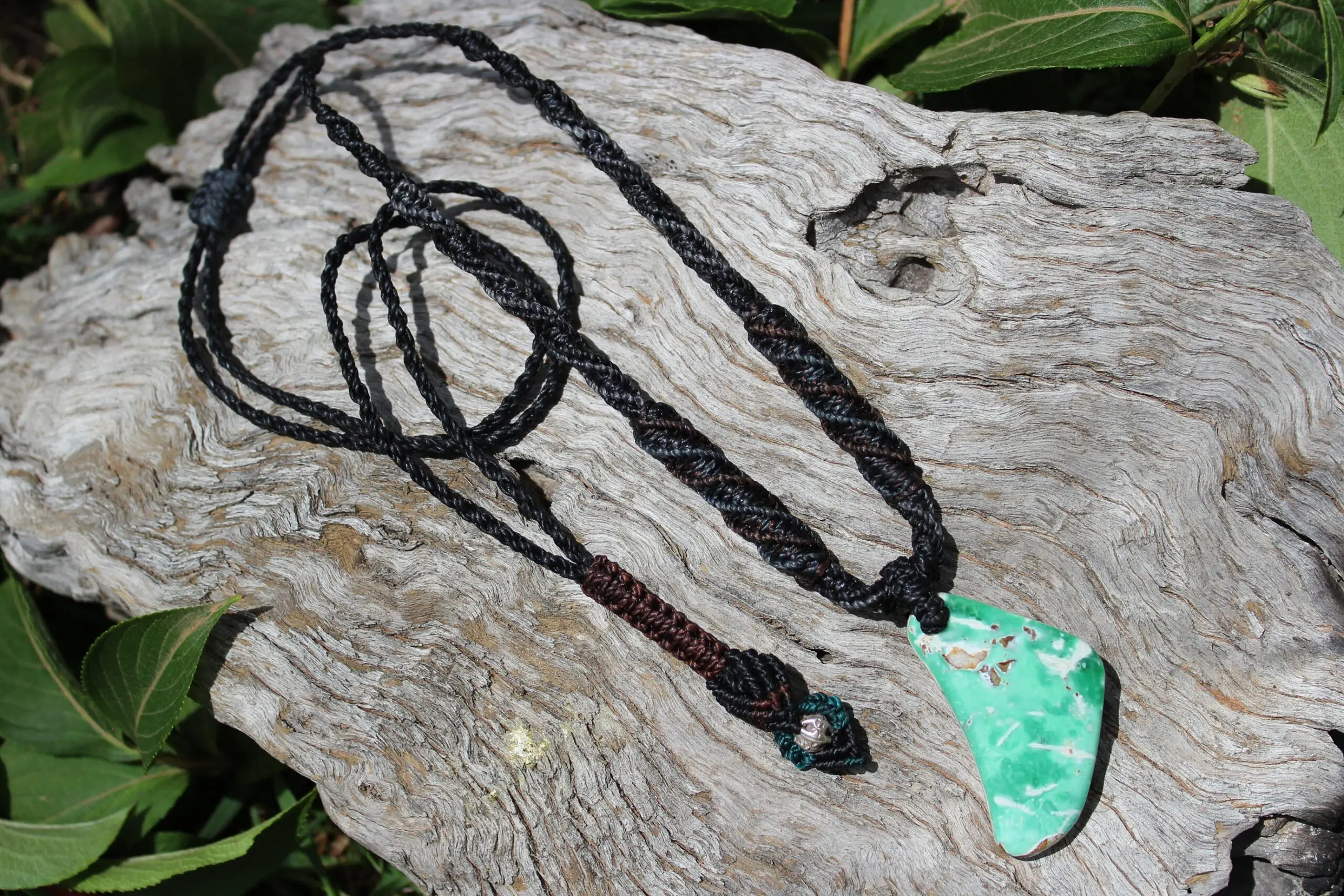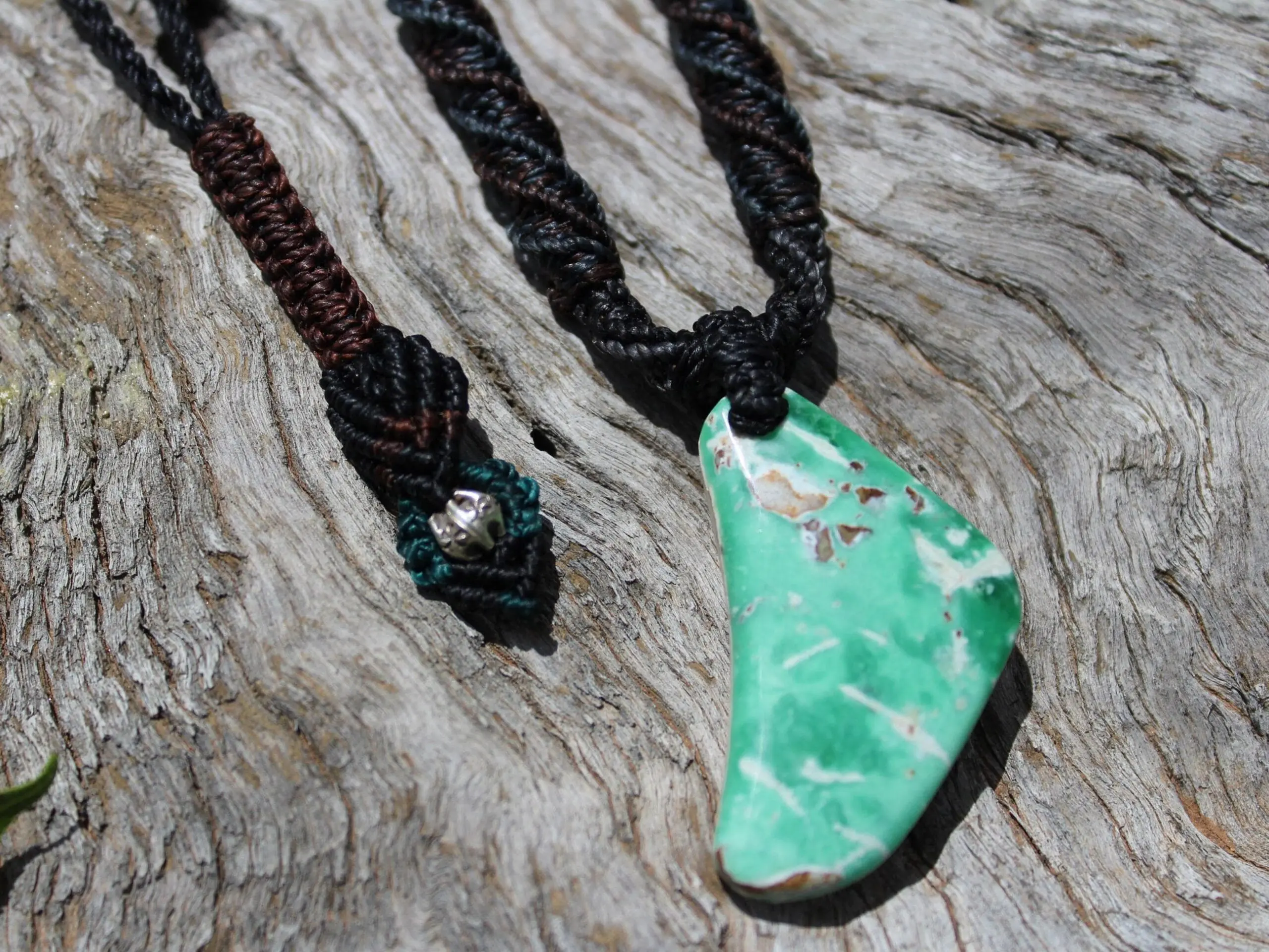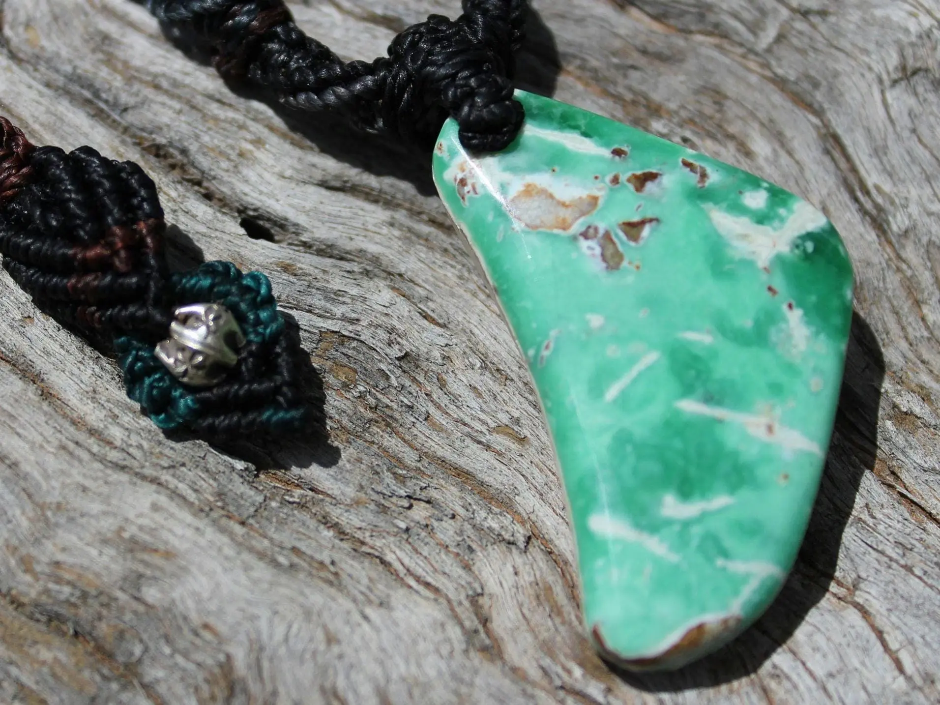 AUSTRALIAN Copper CHRYSOCOLLA Pendant, Natural Malachite Gem Silica Necklace, Australian made Macrame cord, green stone Gemstone Pendant
