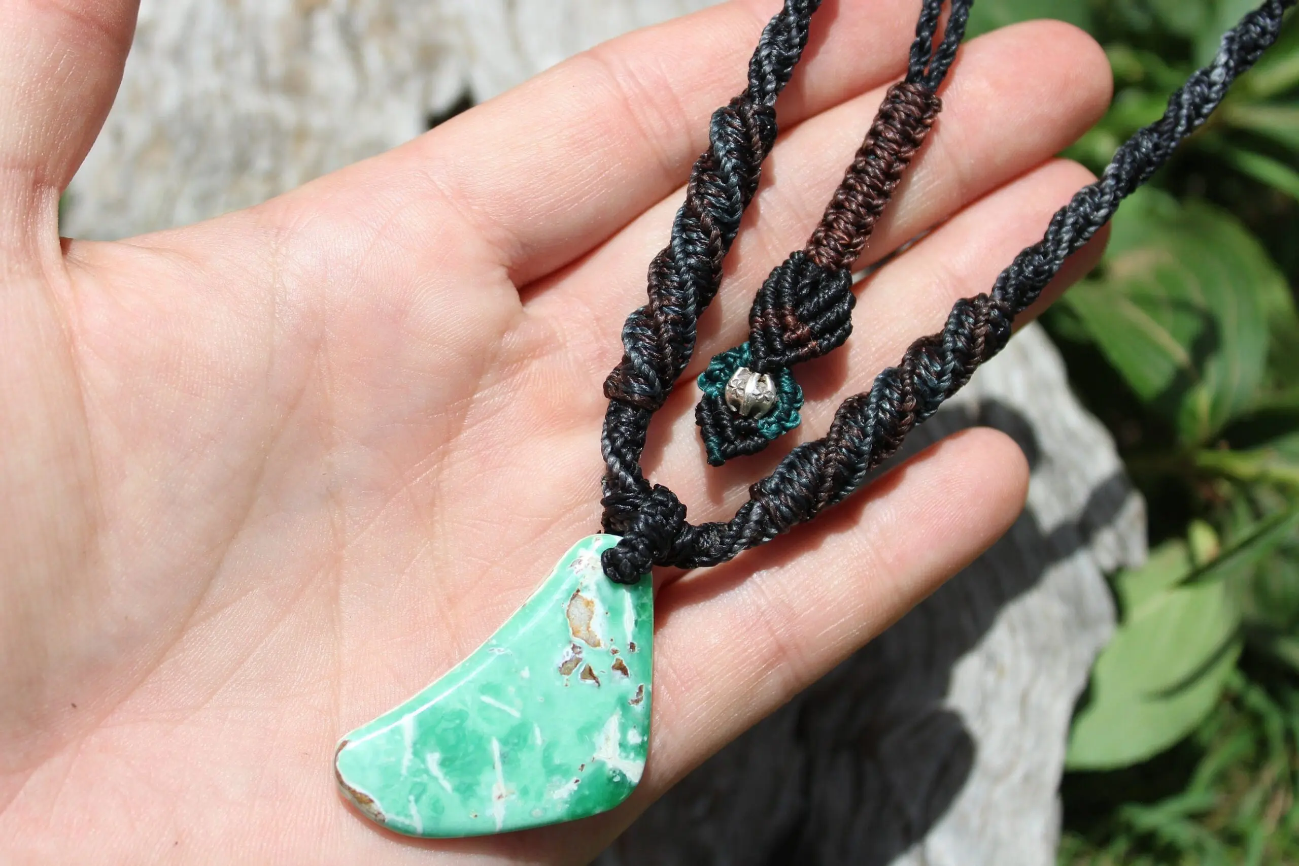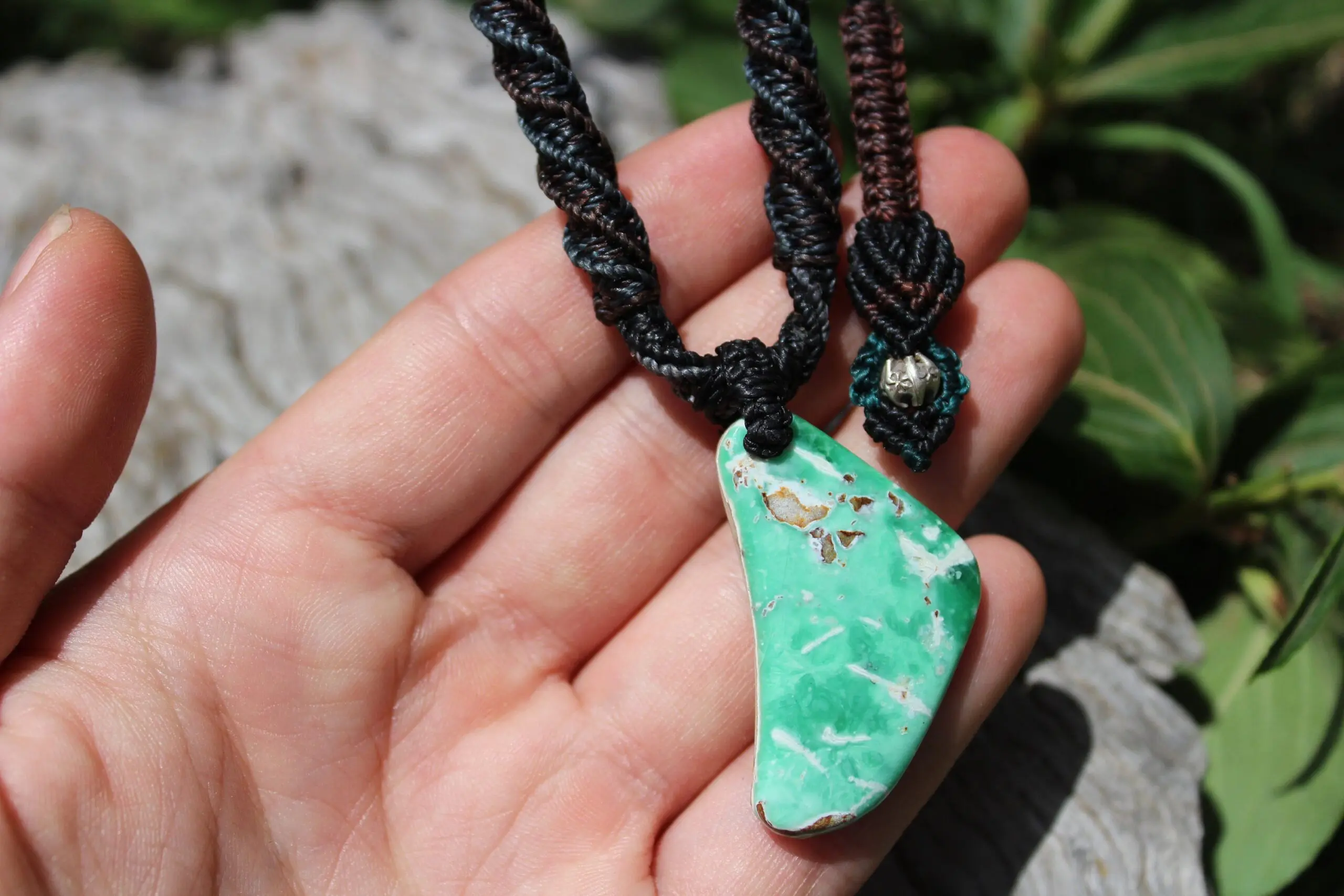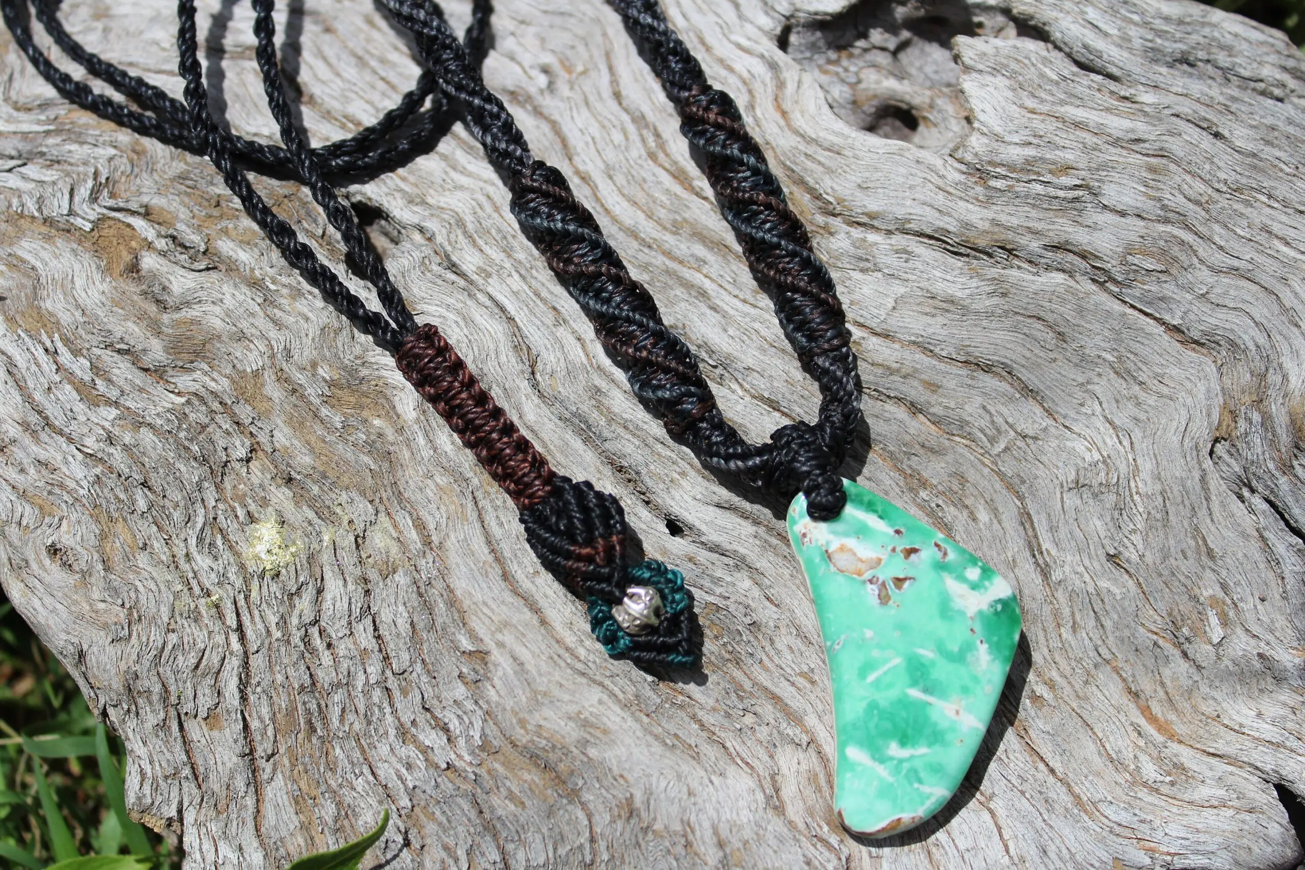 AUSTRALIAN Copper CHRYSOCOLLA Pendant, Natural Malachite Gem Silica Necklace, Australian made Macrame cord, green stone Gemstone Pendant