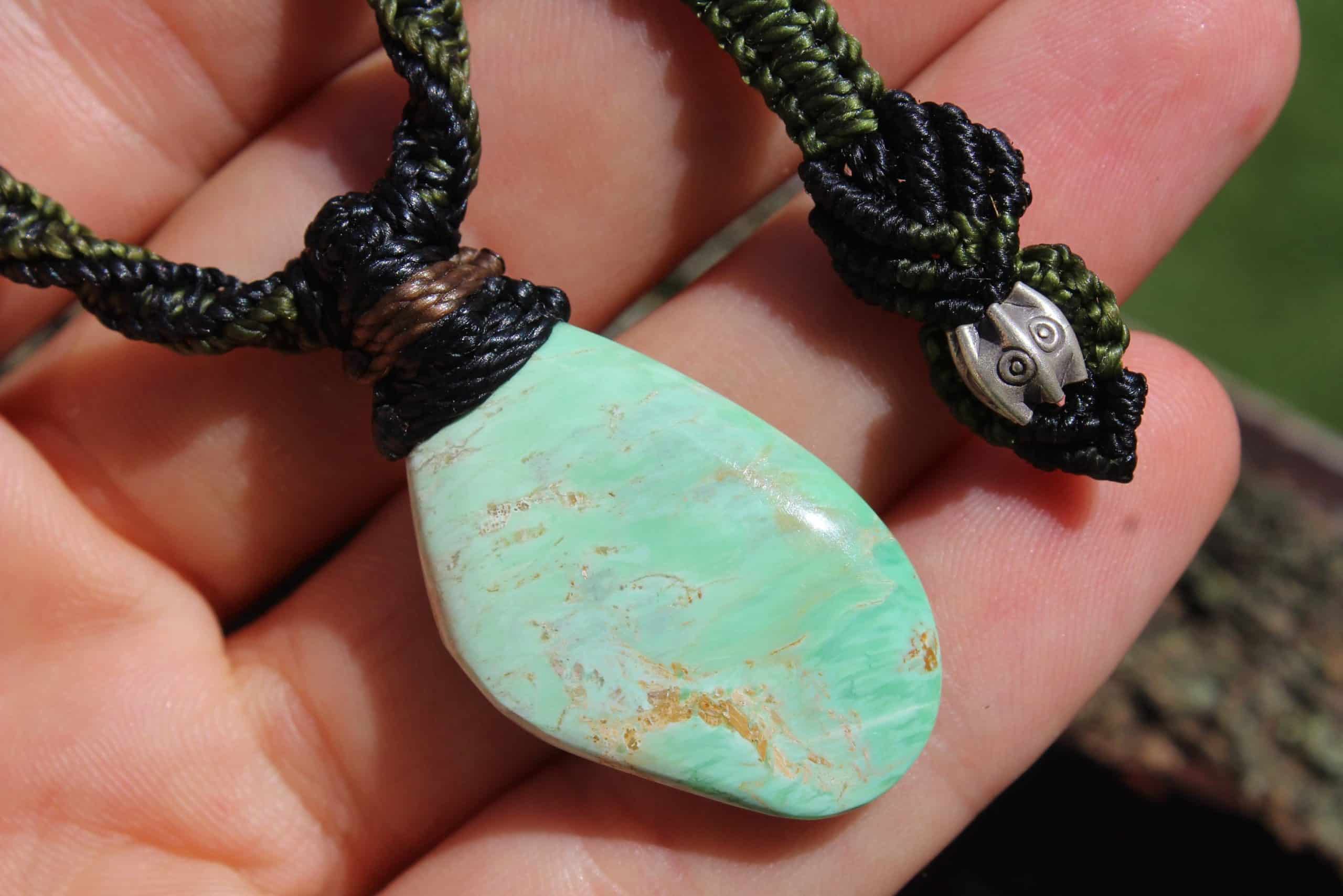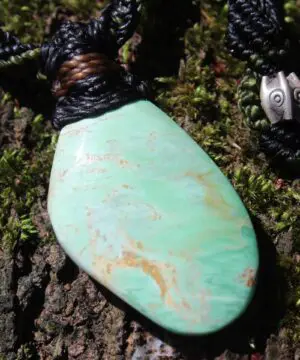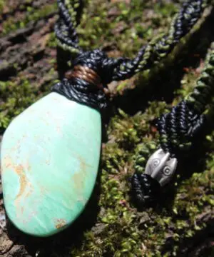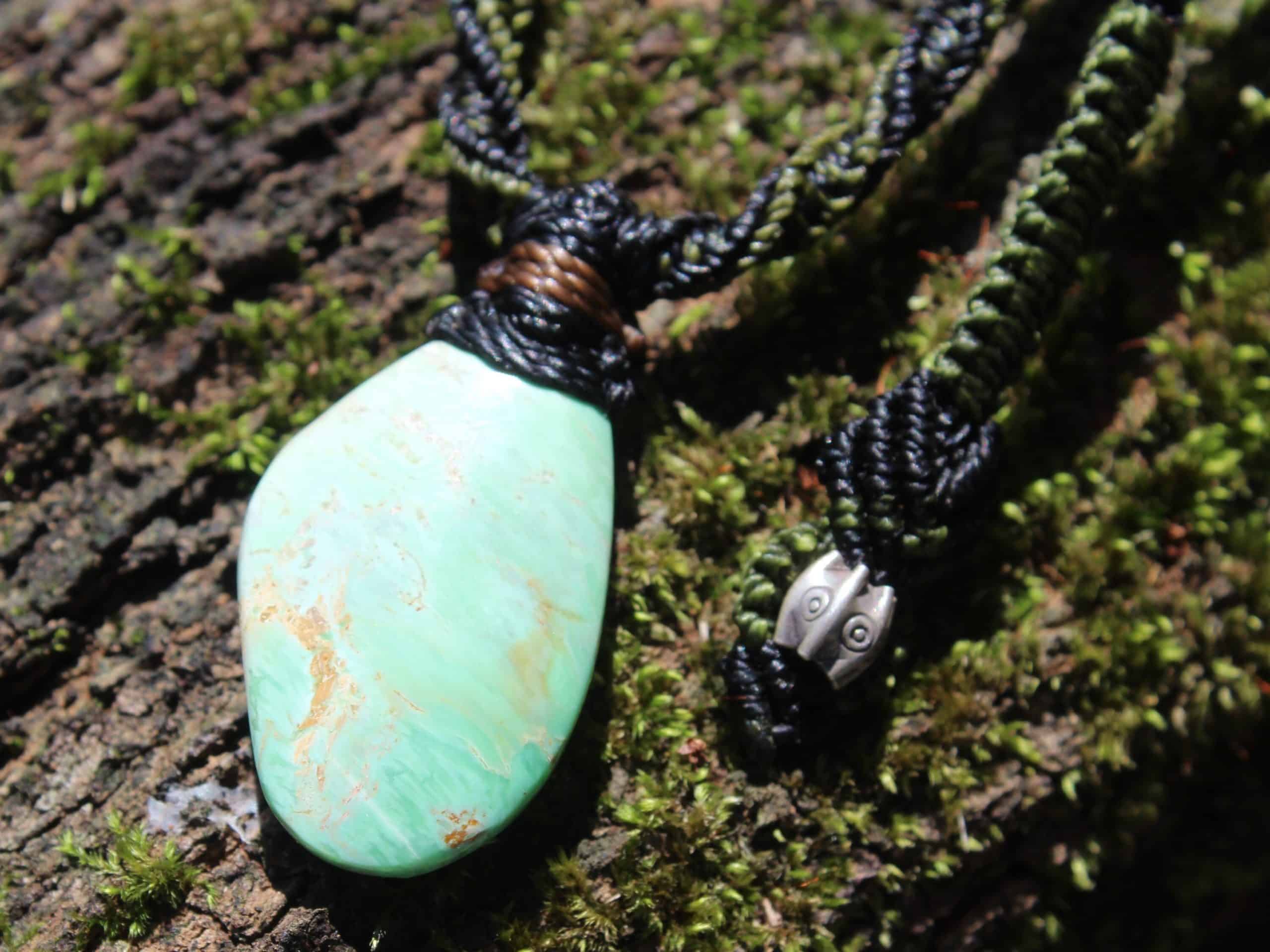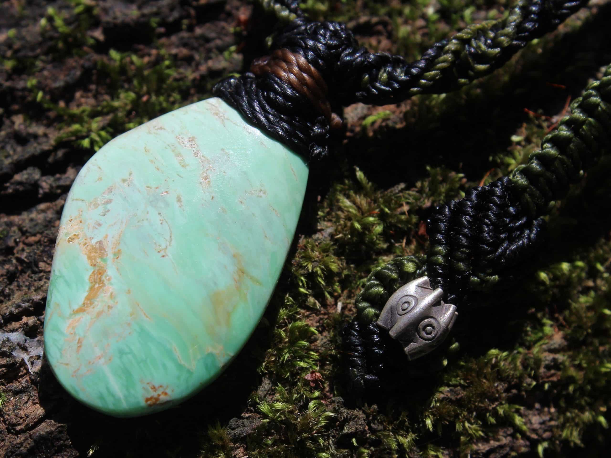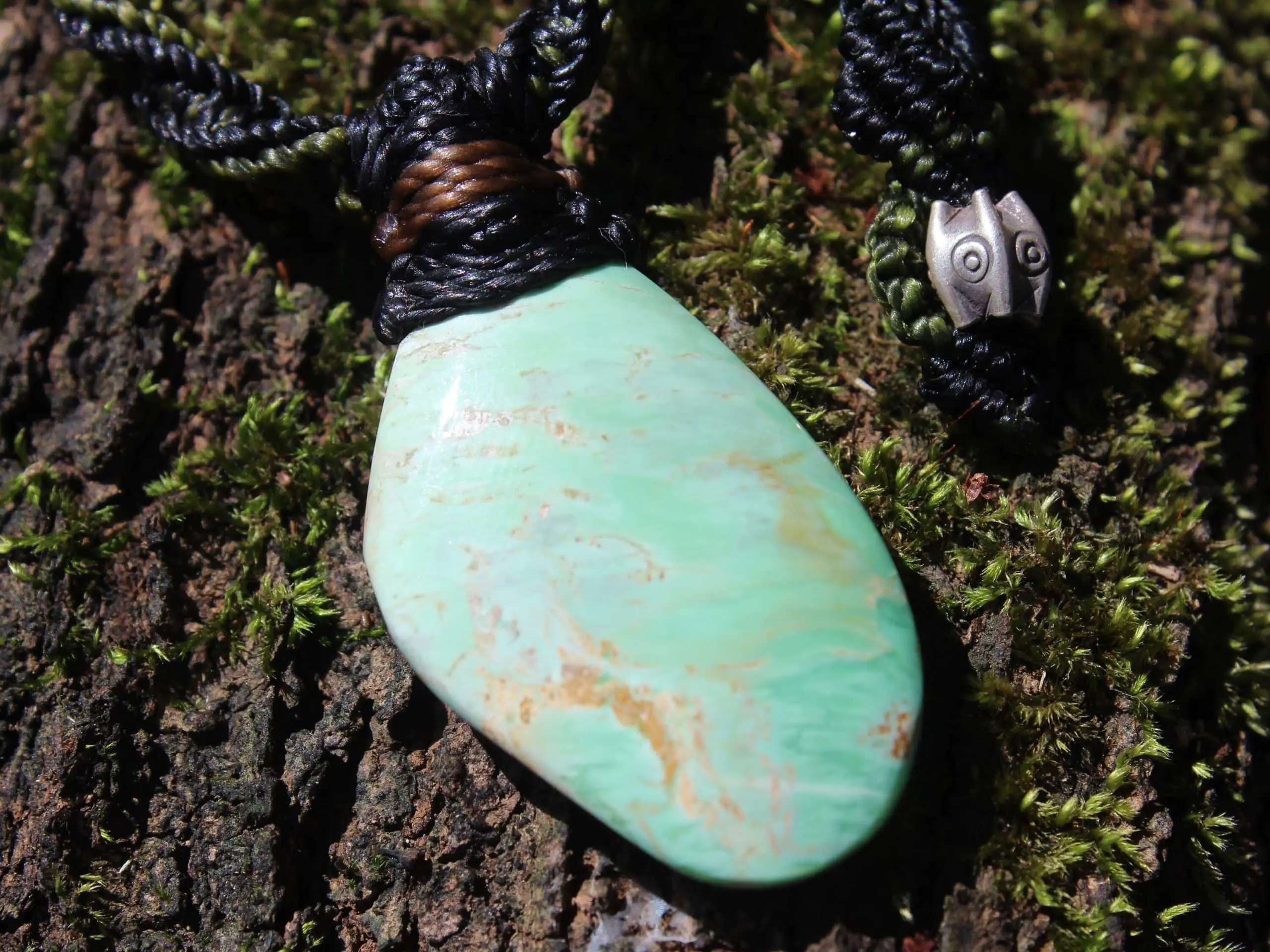 This one-of-a-kind crystal pendant necklace is made from Australian Variscite which comes from Western Australia, Australia. It is a very rare example of Australian variscite and is some of the highest quality we have ever seen. It is a designer cabochon created from scratch here in Australia.
