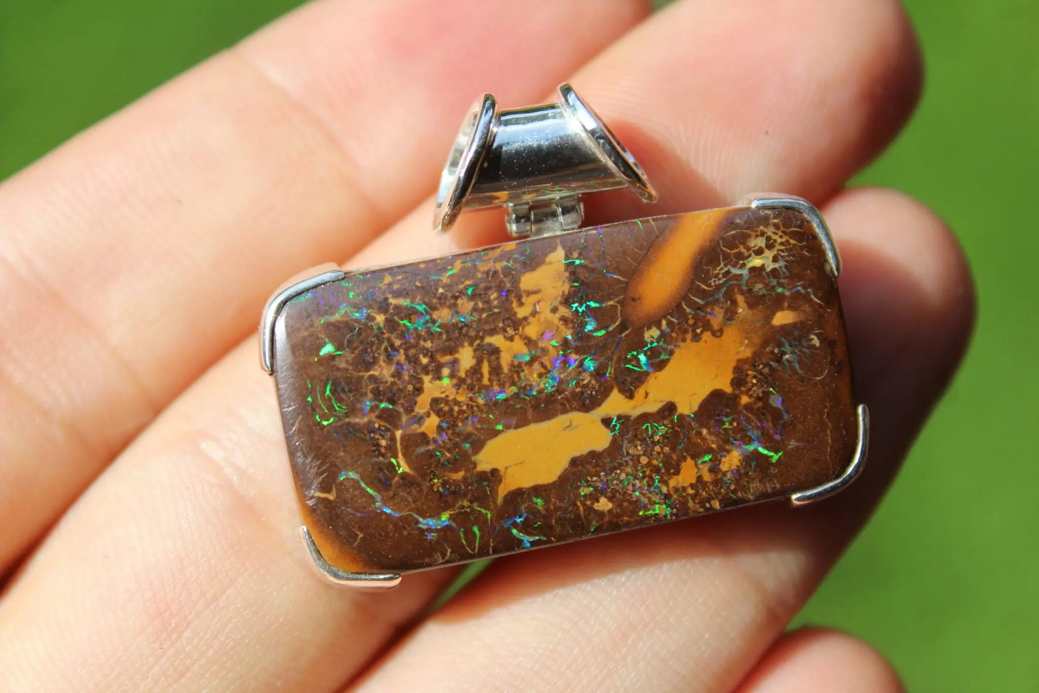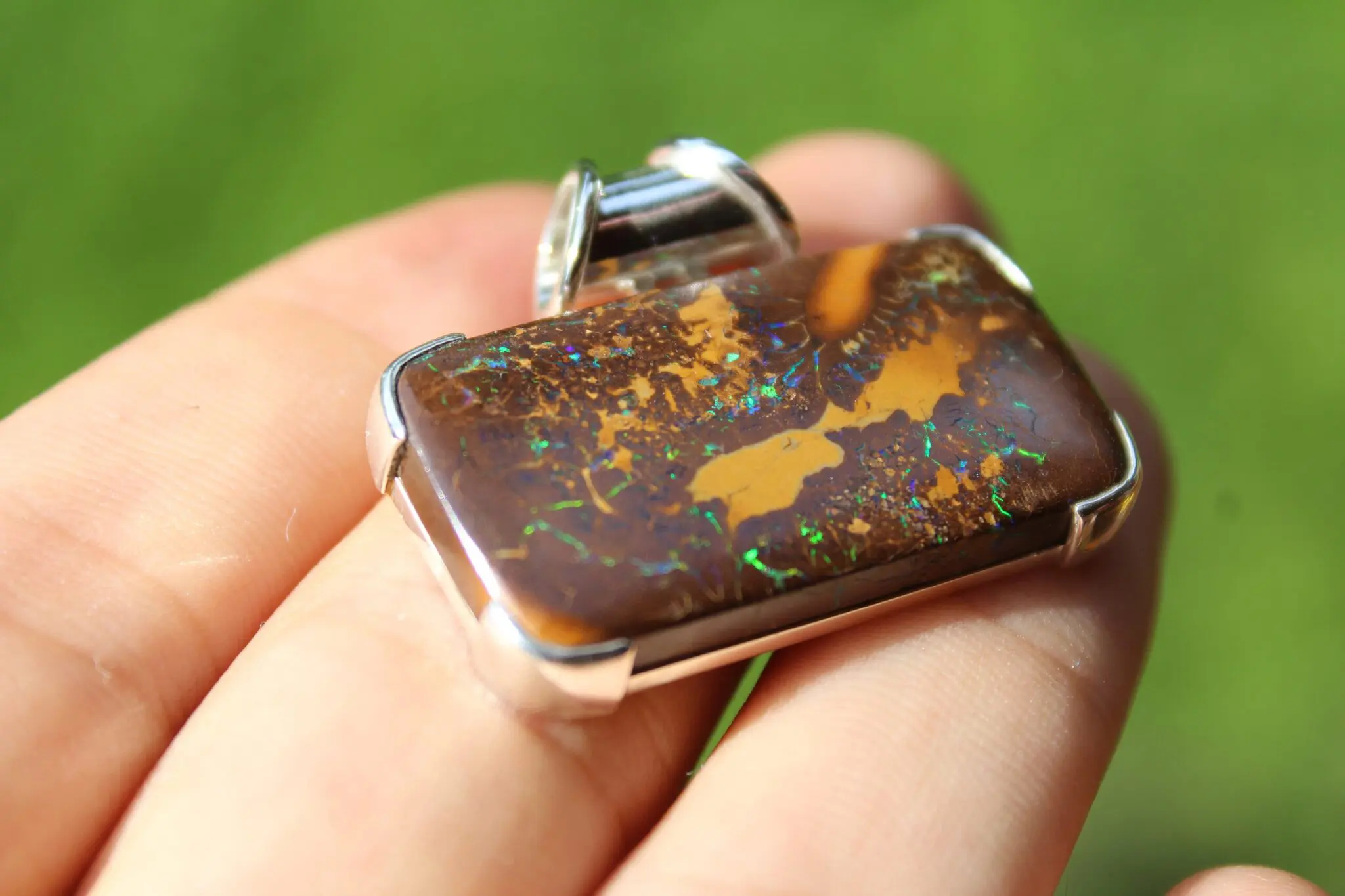 PLEASE NOTE: There is no way to capture opals colour and the intensity varies with different lighting. Matrix Opal flashes many different colours at different angles. Pictures cannot show the real beauty of this stone. If you would like to see the opal flashes in more detail video of this item please contact us & we can arrange to take one & upload it to our Instagram page (Instagram.com/platypusdreaming) for you to view. The listed pictures were taken outside at different times of the day to show the changing colours depending on the sunlight.